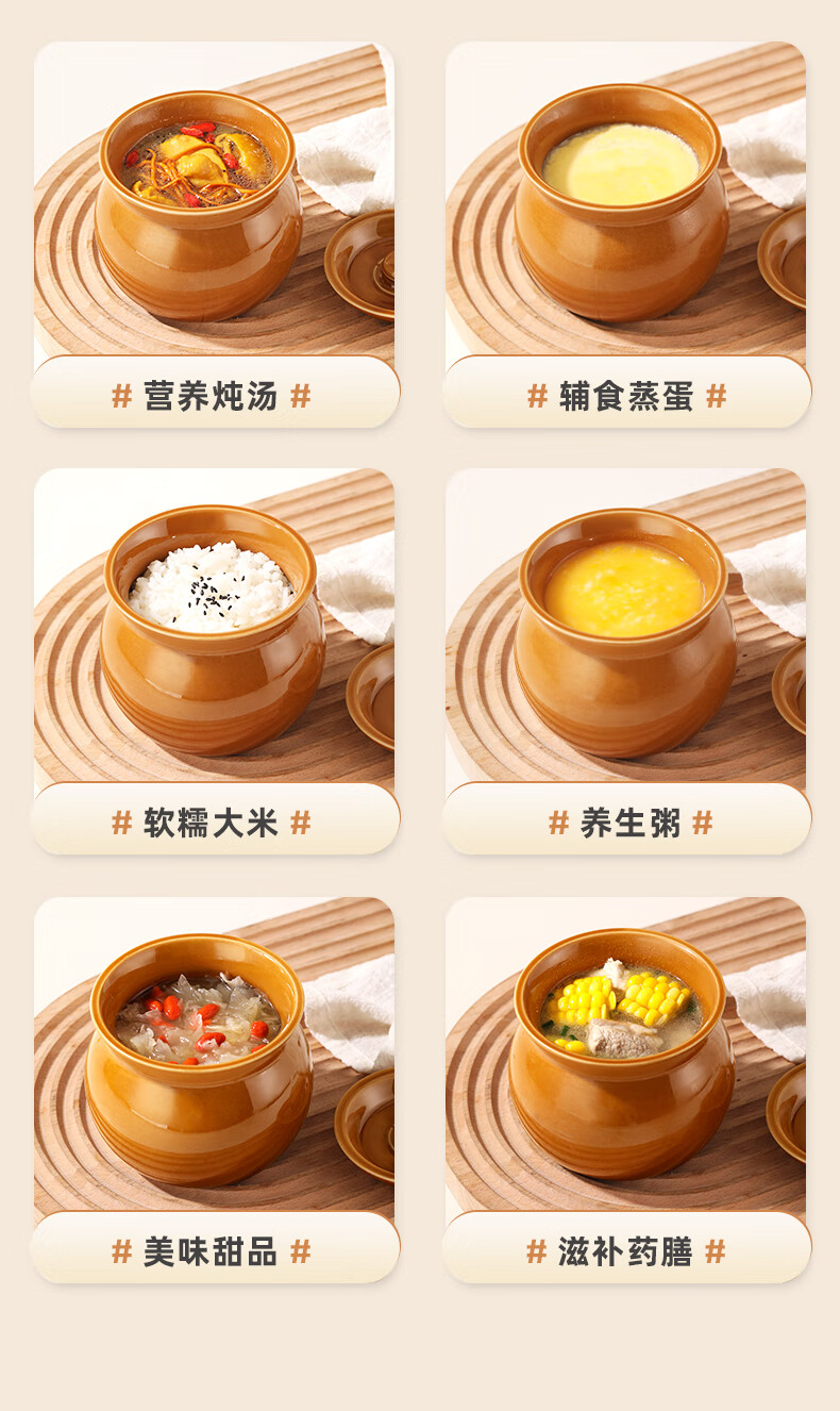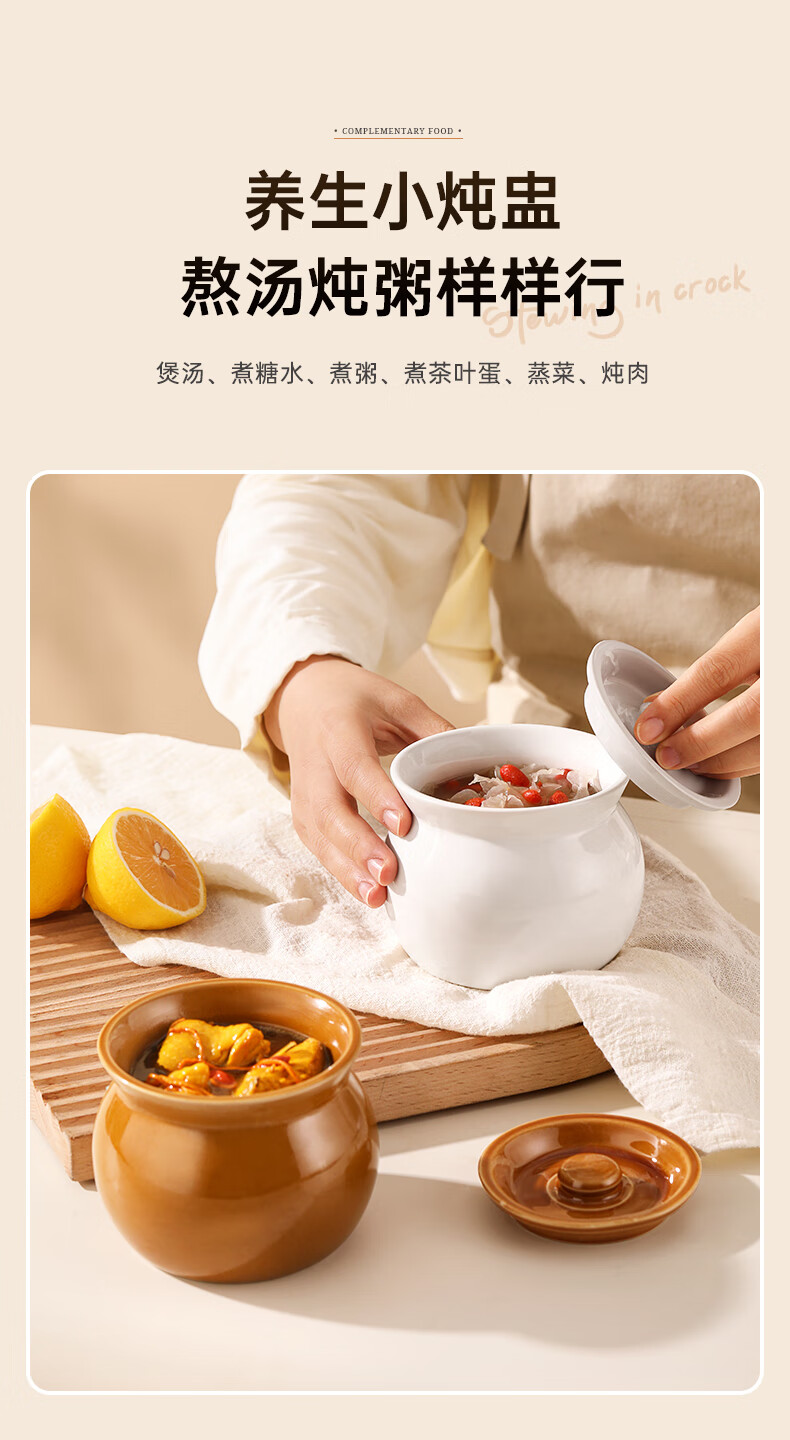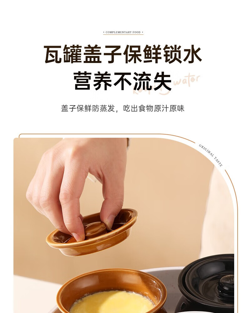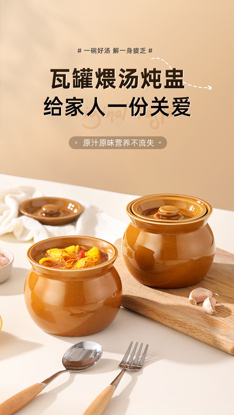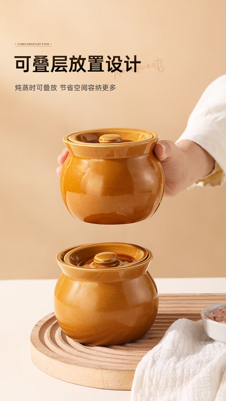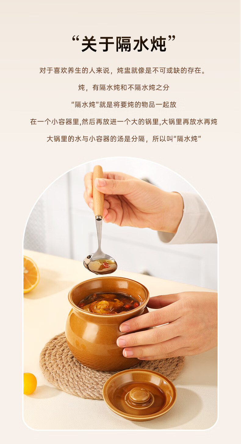 Stew pot for stewing household steamed egg custard over water, small crock pot steaming pot, ceramic one-server with lid, soup and egg custard, thickened version, crock pot stew pot (brown), single pack 500ml