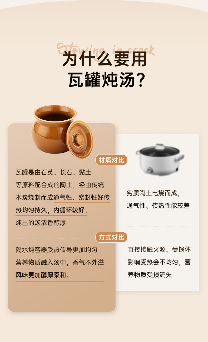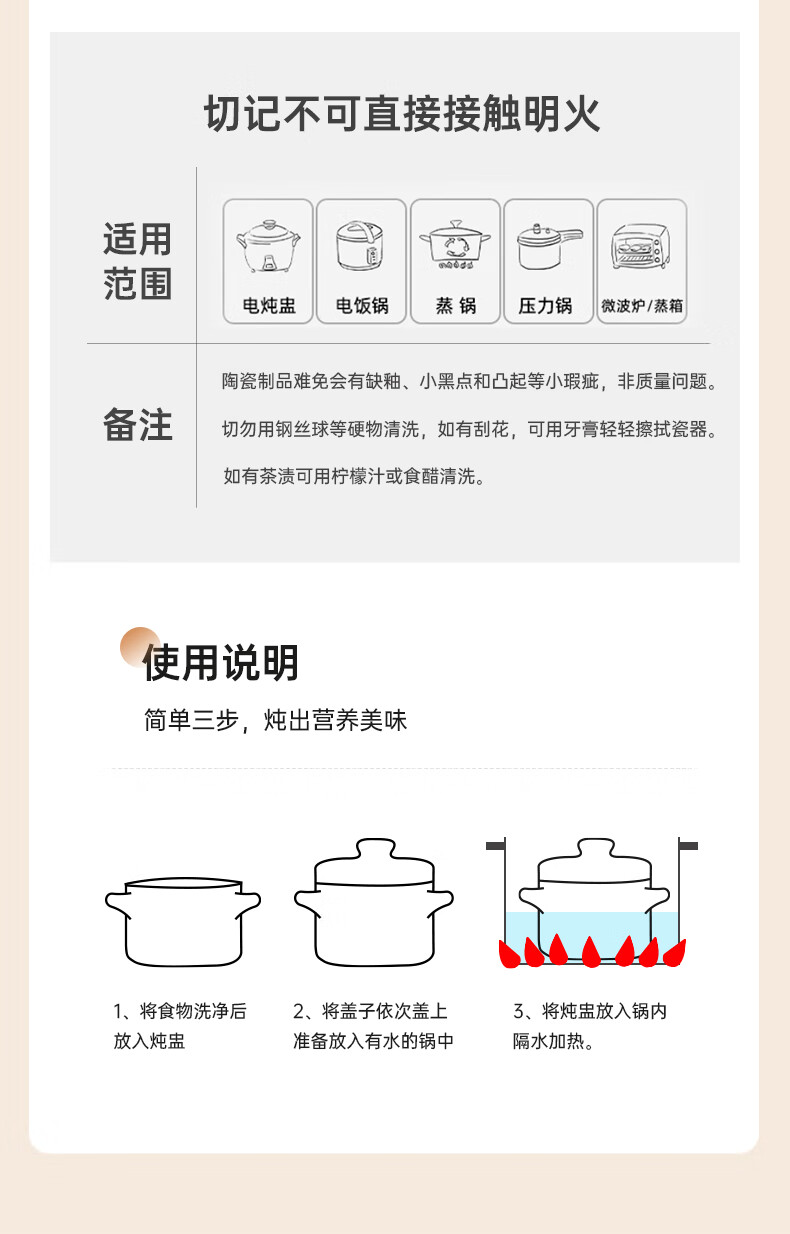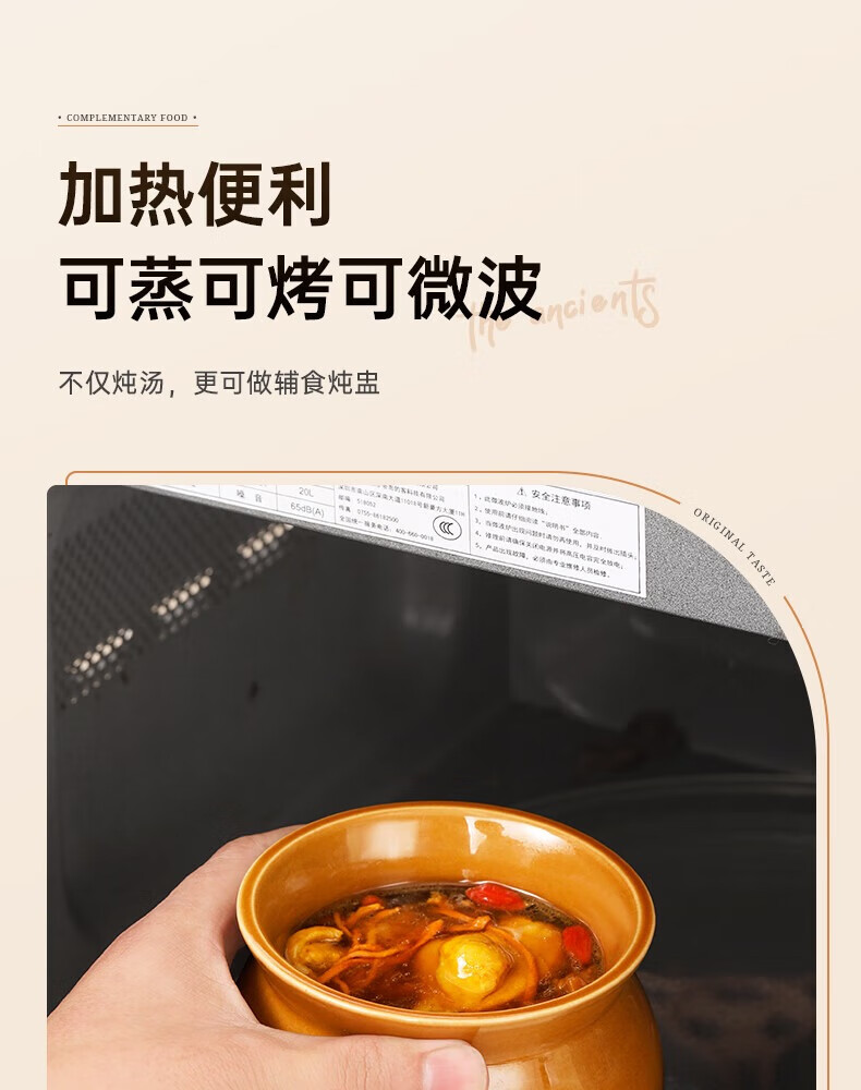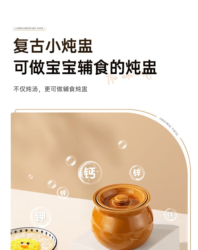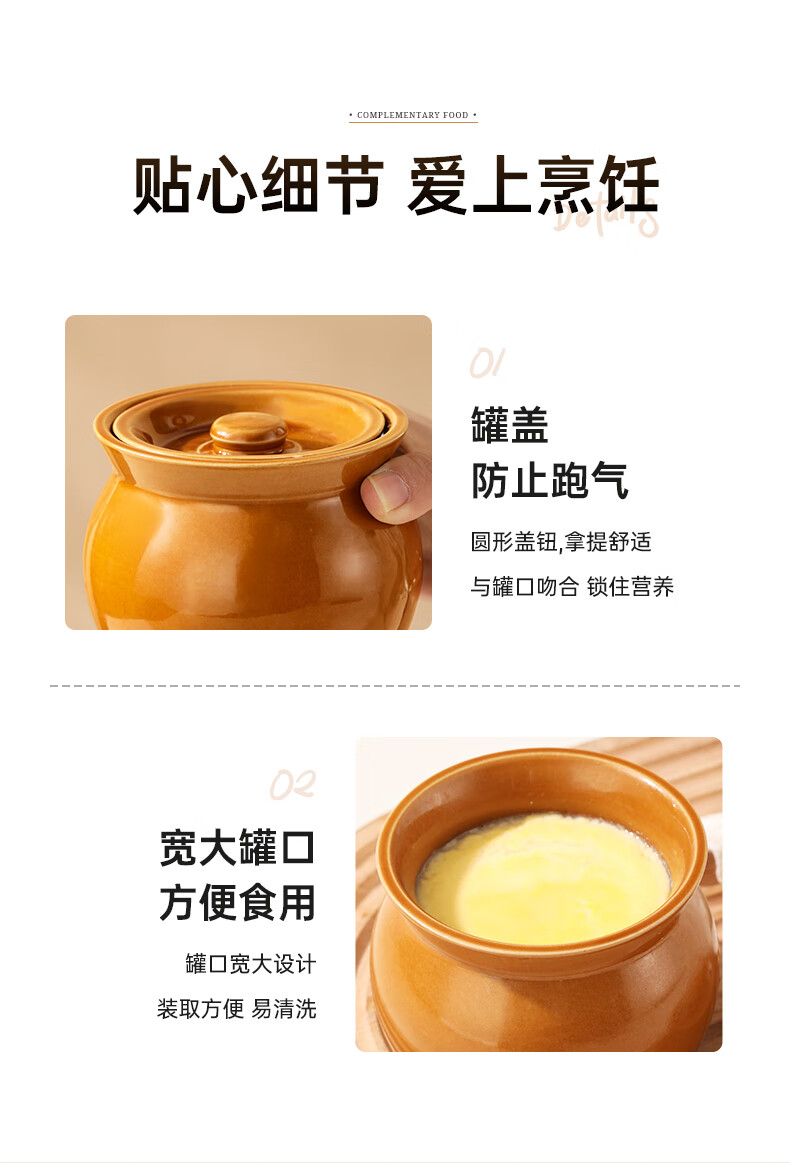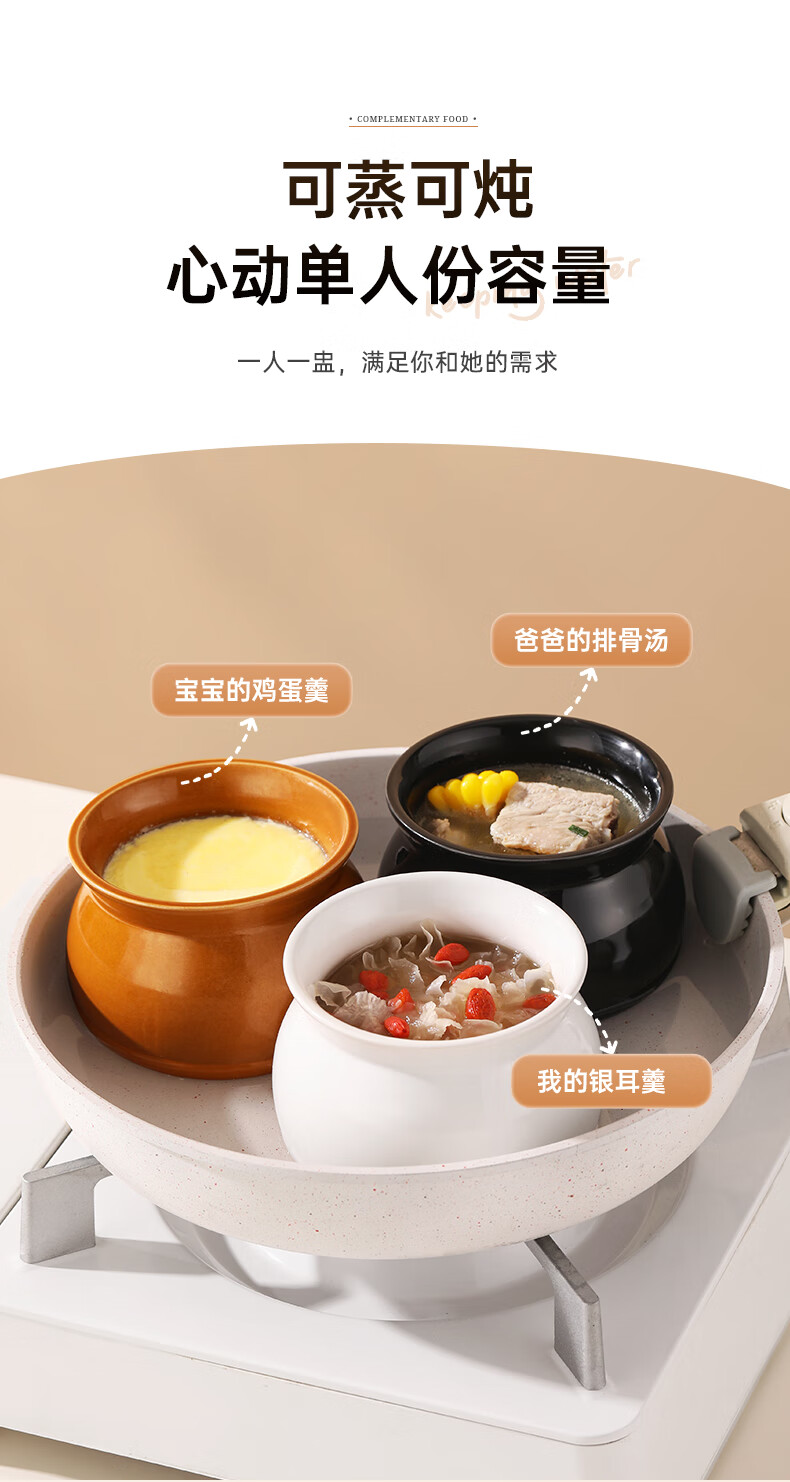 Stew pot for stewing household steamed egg custard over water, small crock pot steaming pot, ceramic one-server with lid, soup and egg custard, thickened version, crock pot stew pot (brown), single pack 500ml