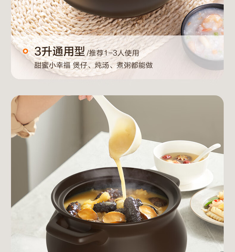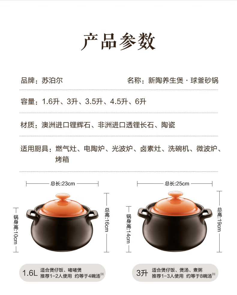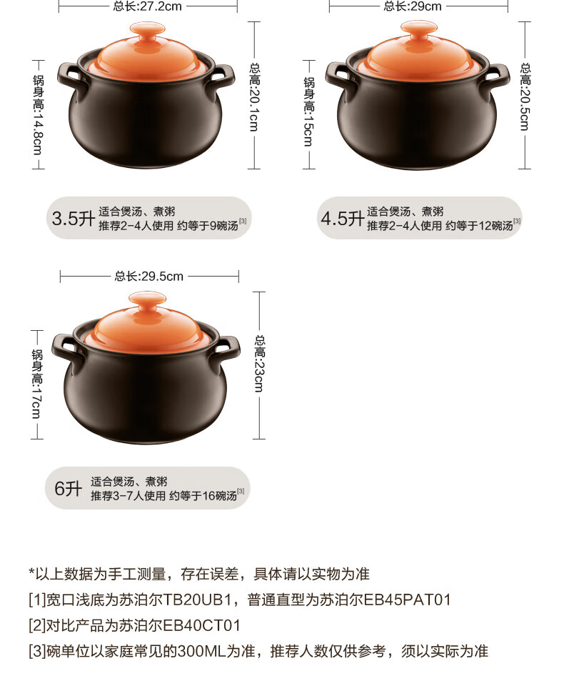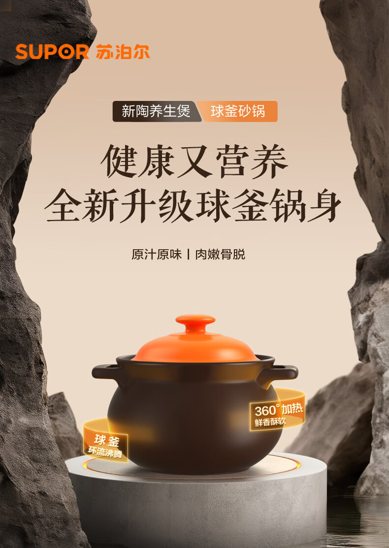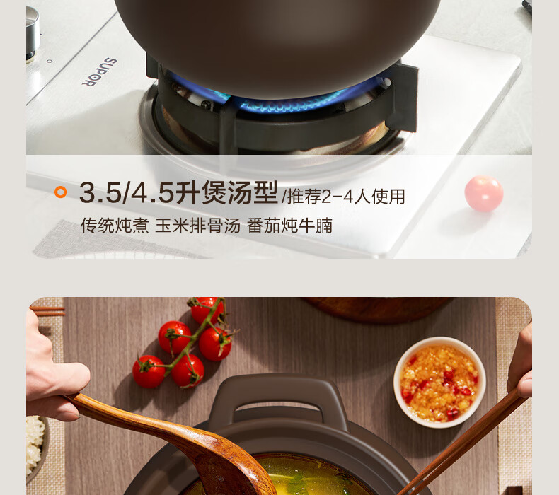 SUPOR casserole soup pot ceramic soup pot casserole pot for home use, high temperature resistance and not easy to crack, earthenware pot for gas stoves, most choices (can stew diced chicken) 4.5L
