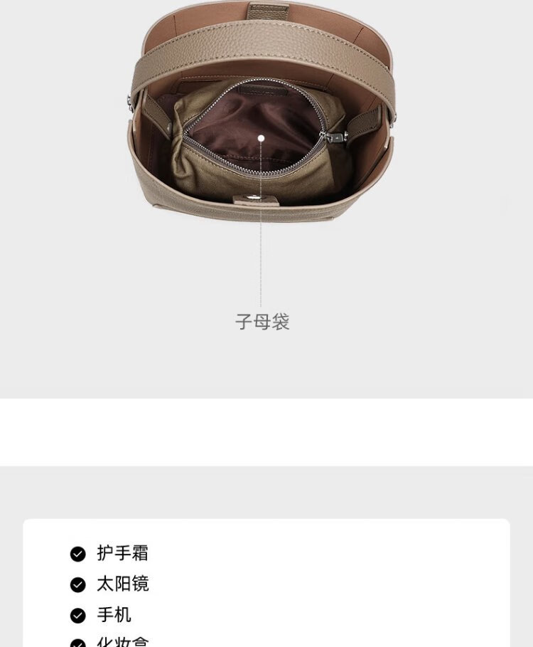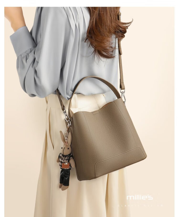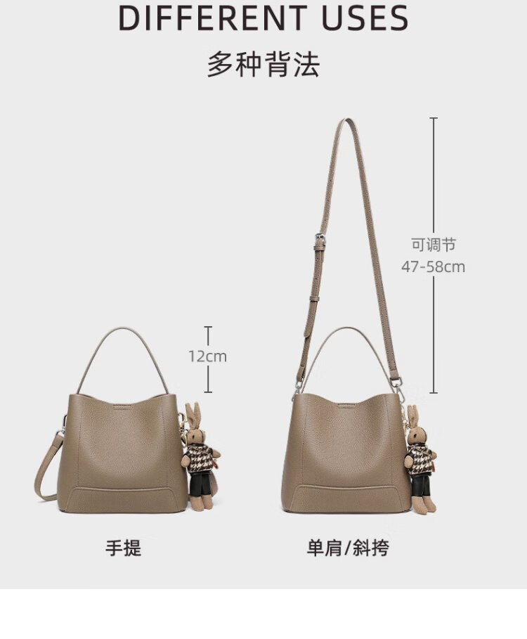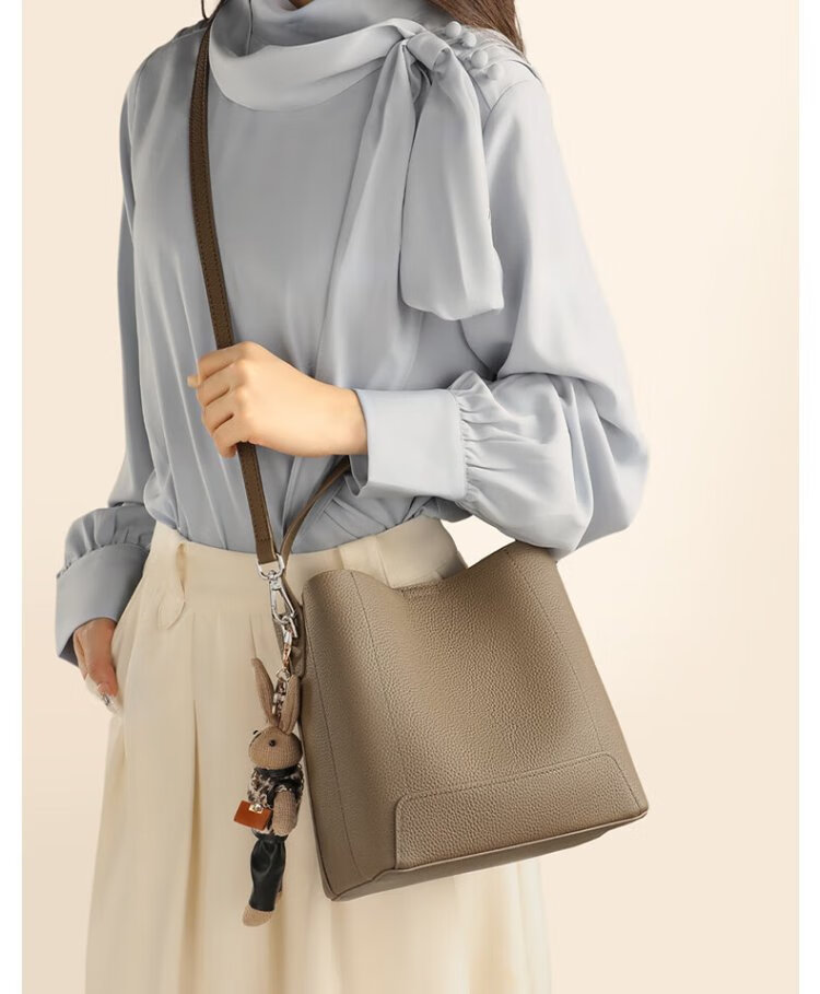 Miaoli cowhide bag women's bag casual bucket bag brand portable crossbody bag birthday gift high-end gift for girlfriend and wife