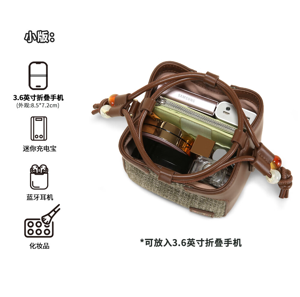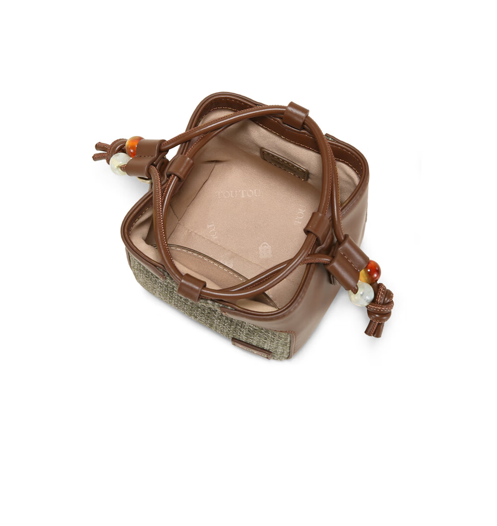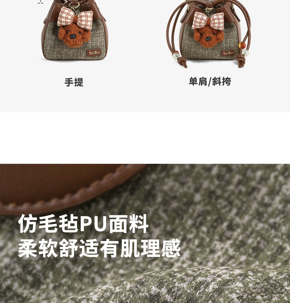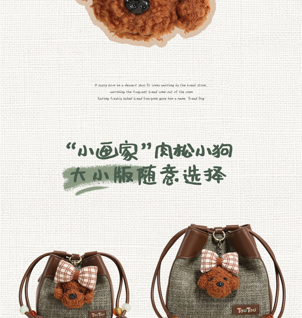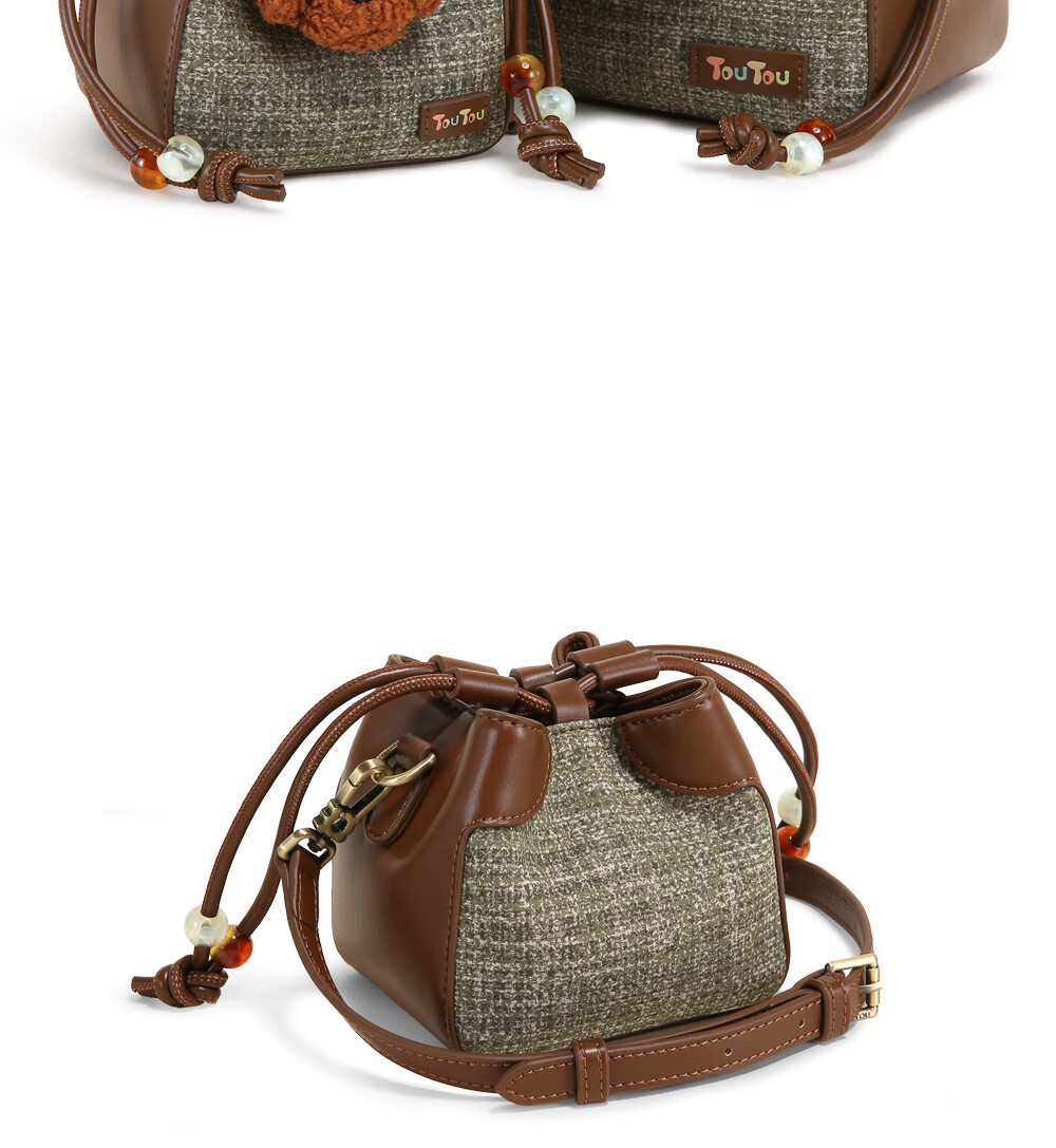 Toutou2025 new bag woolen bucket bag-standard plaid butterfly puppy pendant bucket bag chocolate brown (small version)