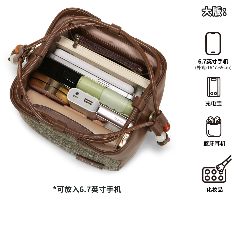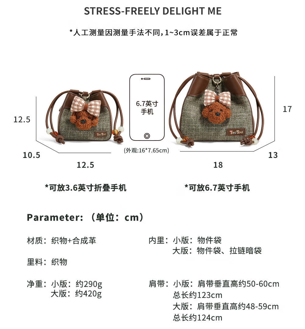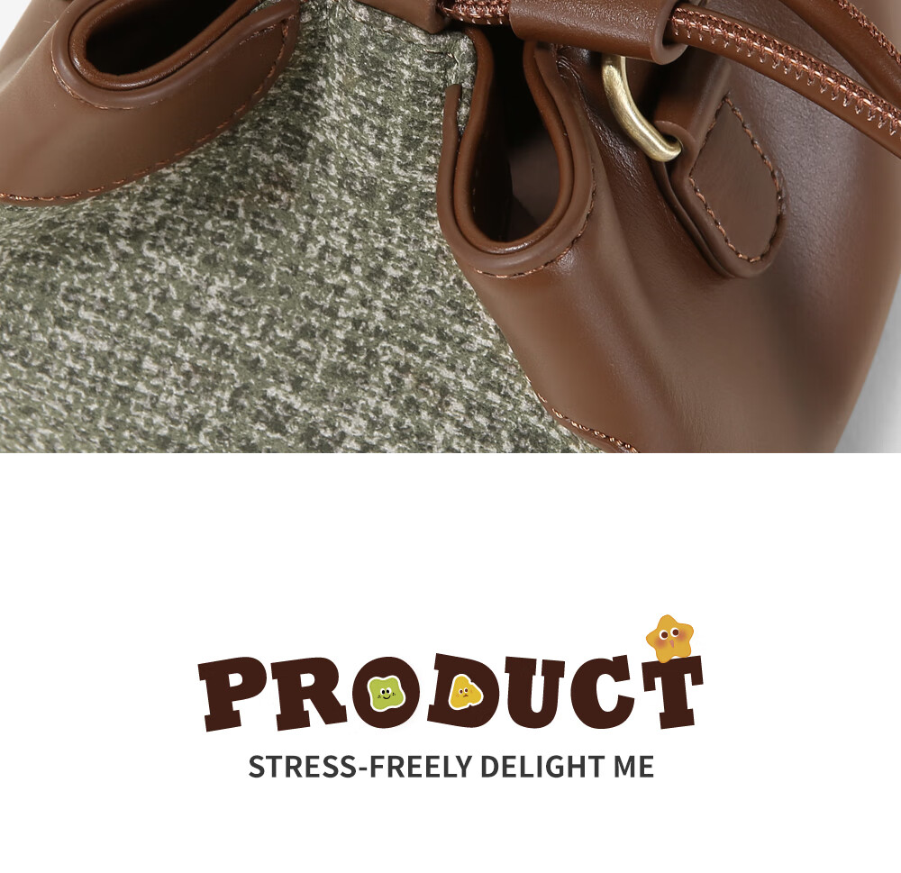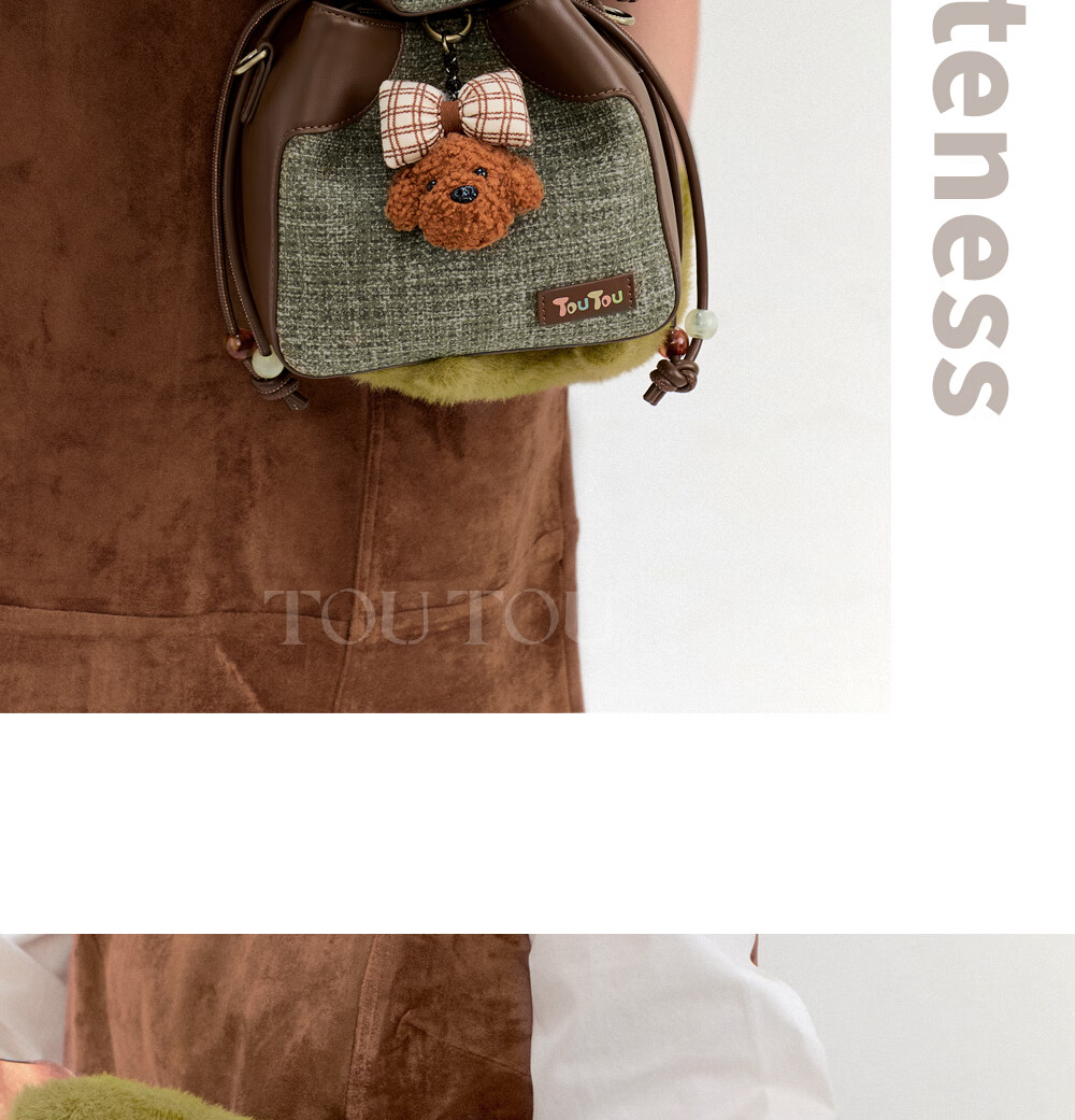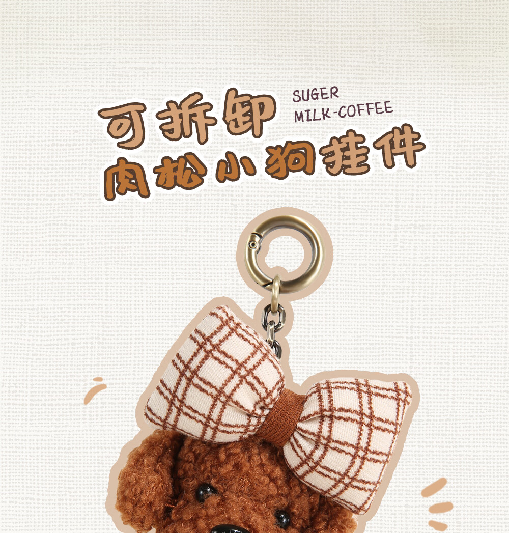Toutou2025 new bag woolen bucket bag-standard plaid butterfly puppy pendant bucket bag chocolate brown (small version)