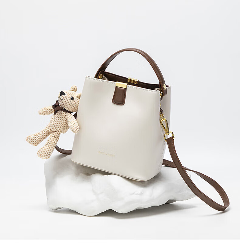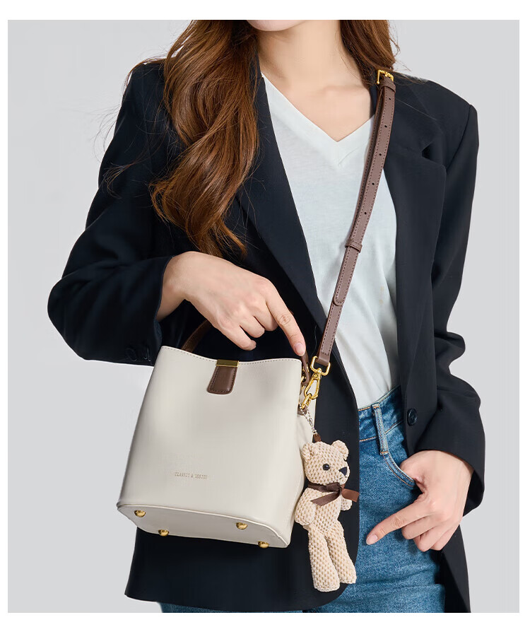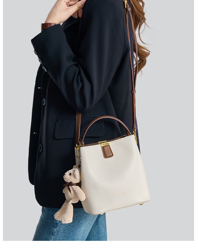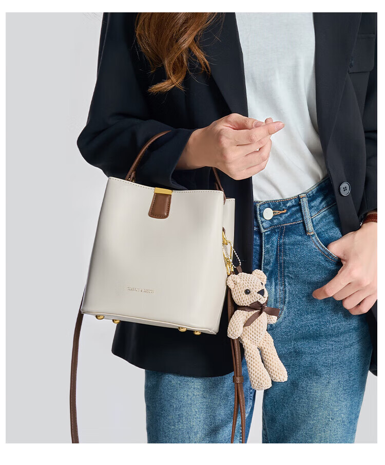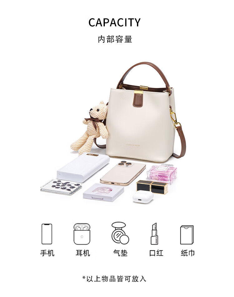 Marie Claire Light Luxury Brand Bag Women's Bag Women's Bucket Bag 2025 Single Shoulder Crossbody Bag as Birthday Gift for Girlfriend and Wife Off-White Brand Gift Box