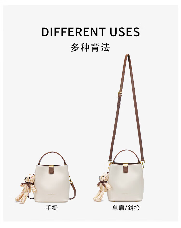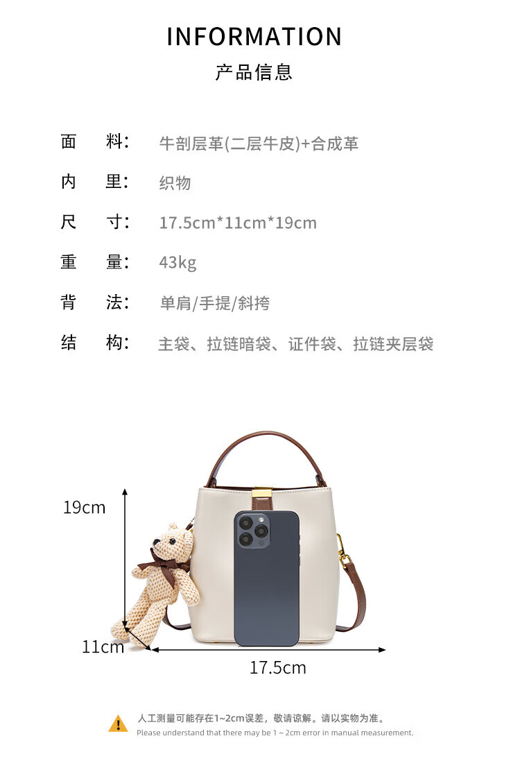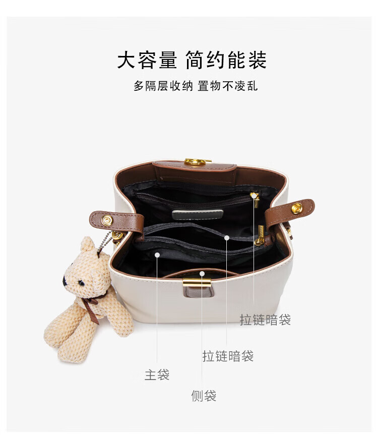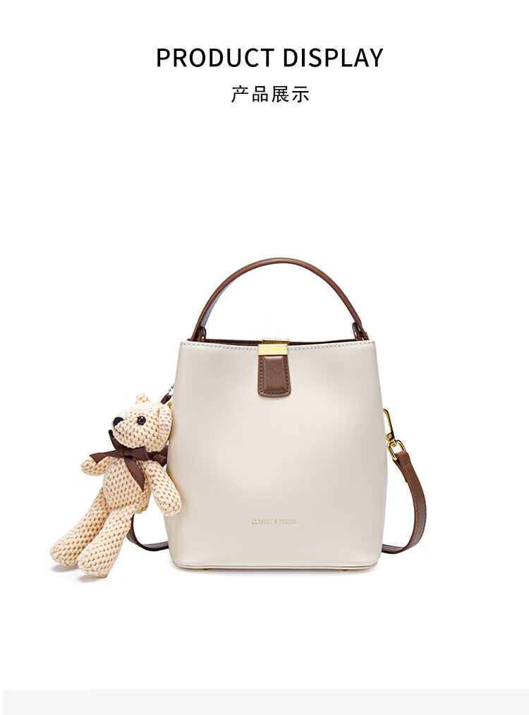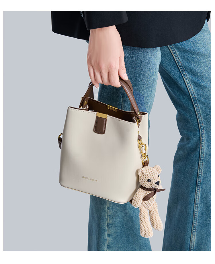 Marie Claire Light Luxury Brand Bag Women's Bag Women's Bucket Bag 2025 Single Shoulder Crossbody Bag as Birthday Gift for Girlfriend and Wife Off-White Brand Gift Box