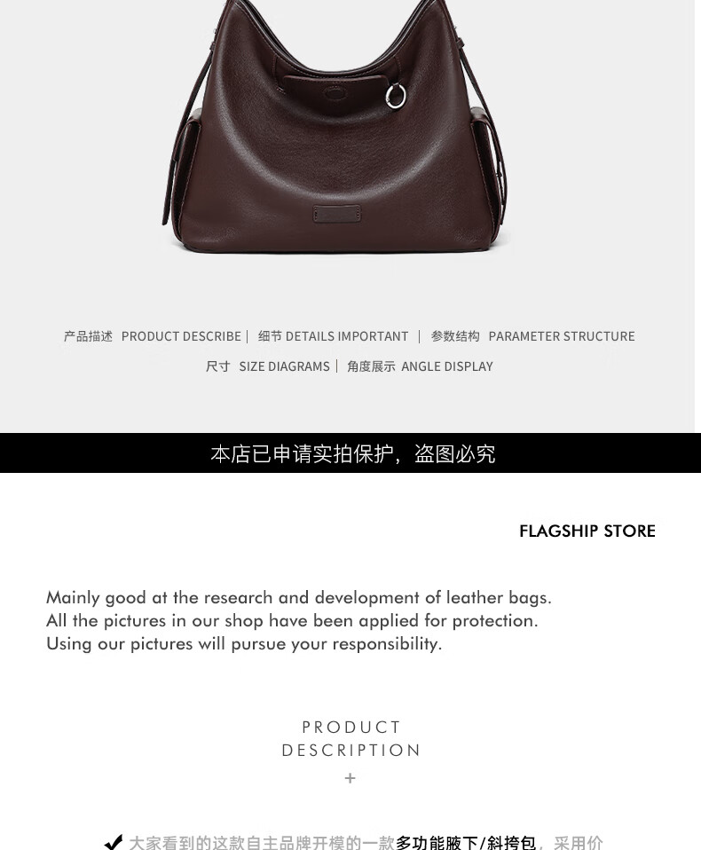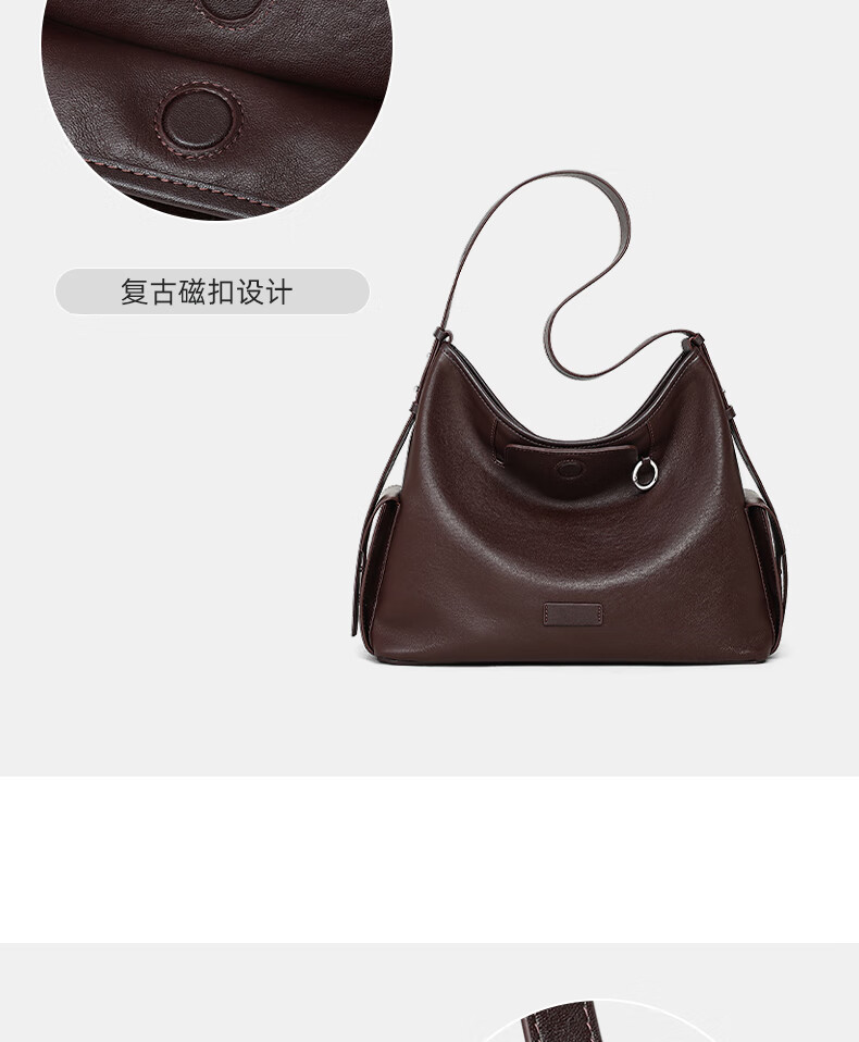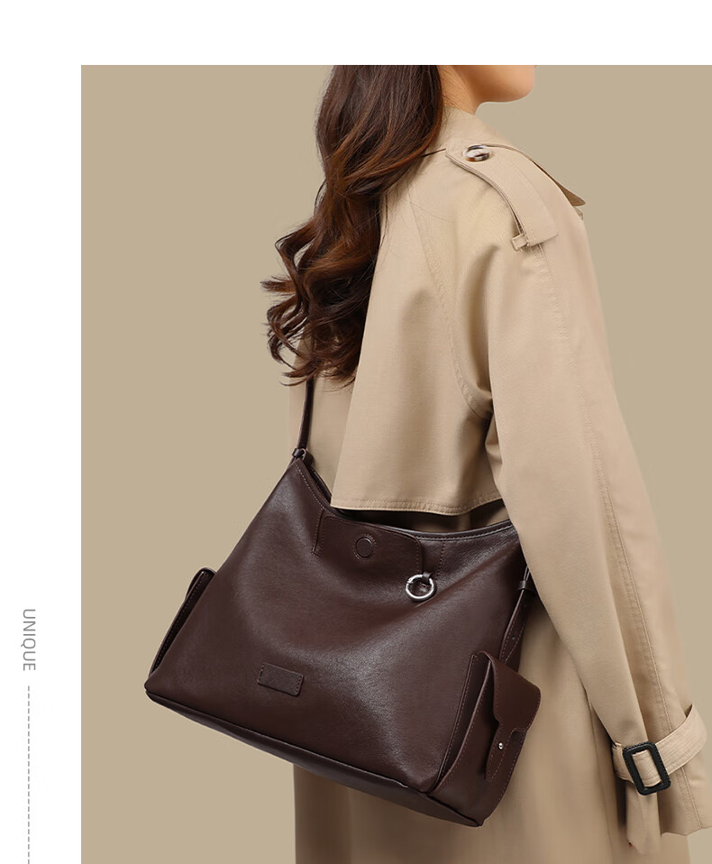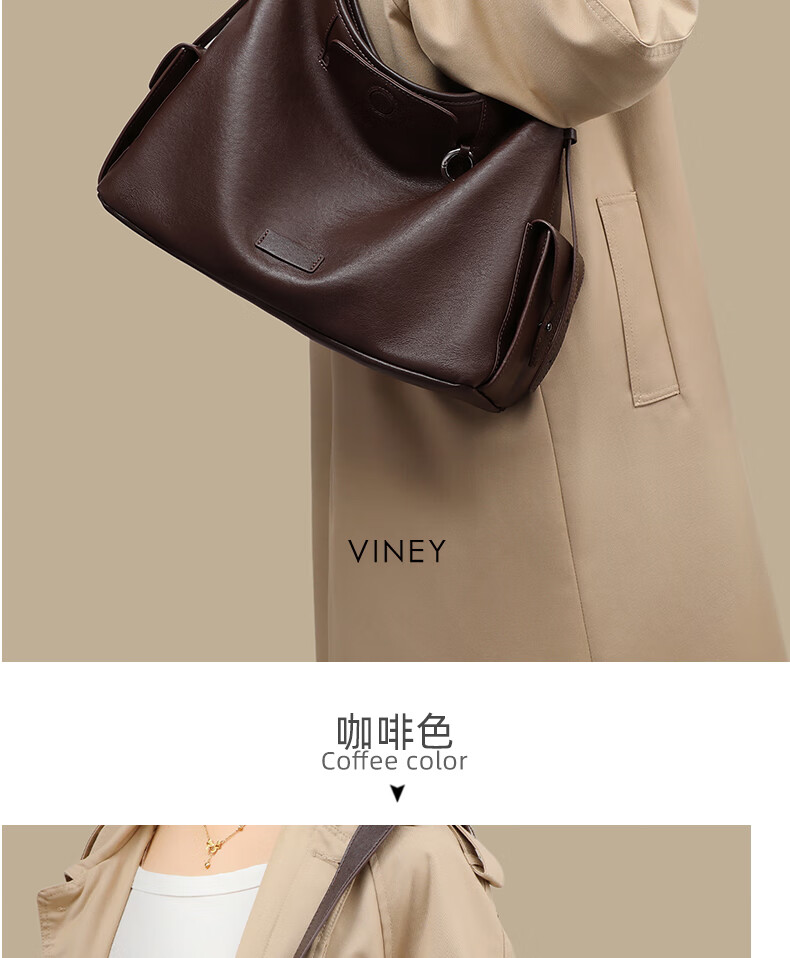 Viney cowhide tote bag women's bag large capacity crossbody bag shoulder birthday gift for girlfriend and wife brown high-end practical brand armpit bag fashionable light luxury versatile commuting casual bucket bag