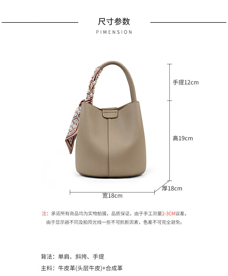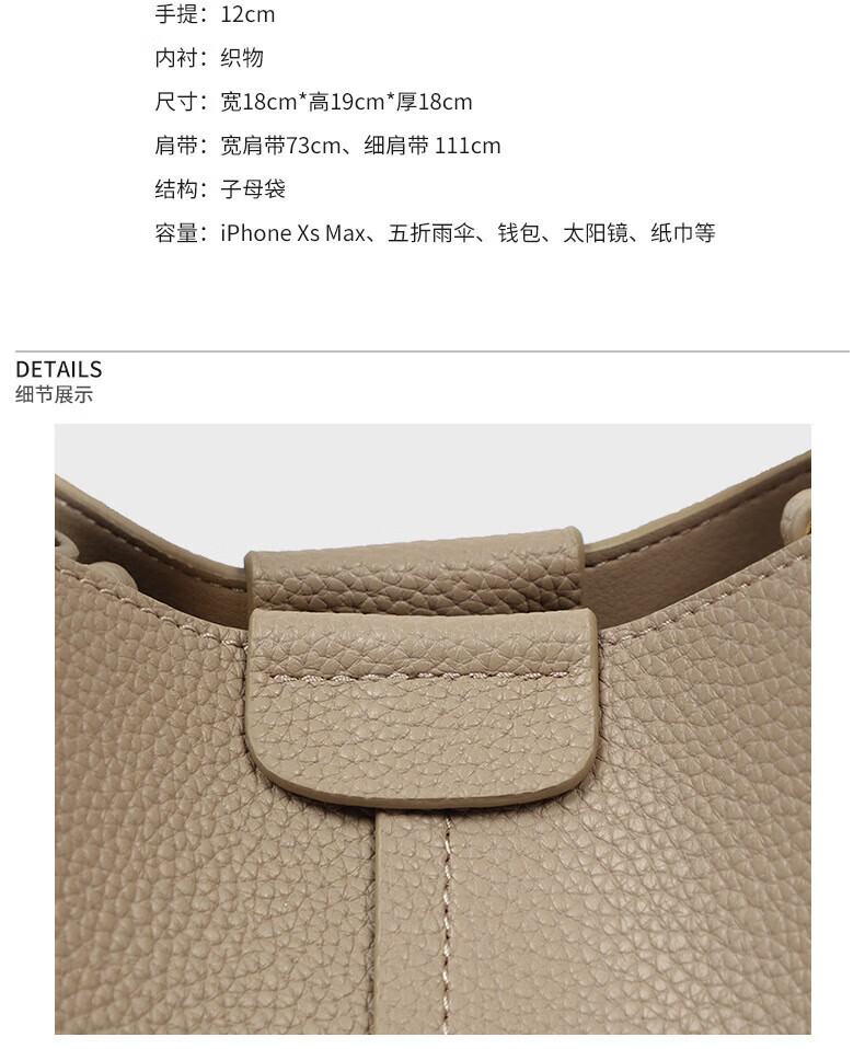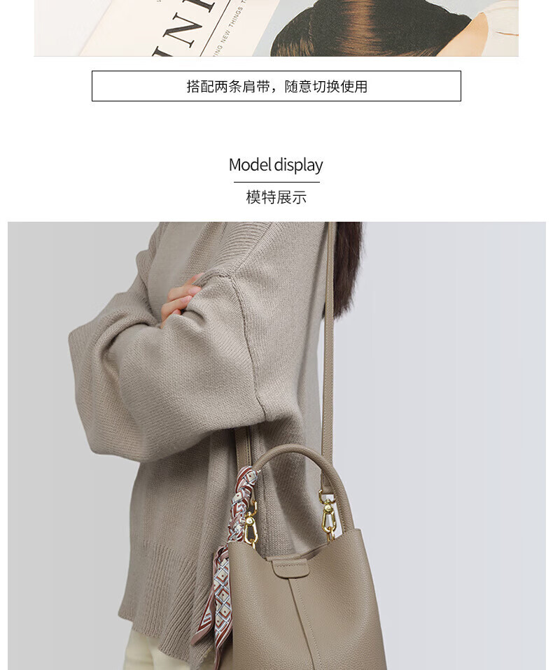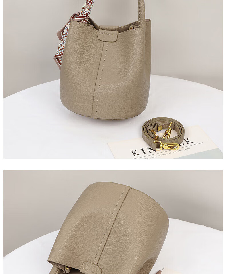 Marie Claire Light Luxury Women's Bag New Women's Bucket Bag Shoulder Crossbody Bag Birthday Anniversary Gift for Wife and Girlfriend Elephant Gray Ready Stock