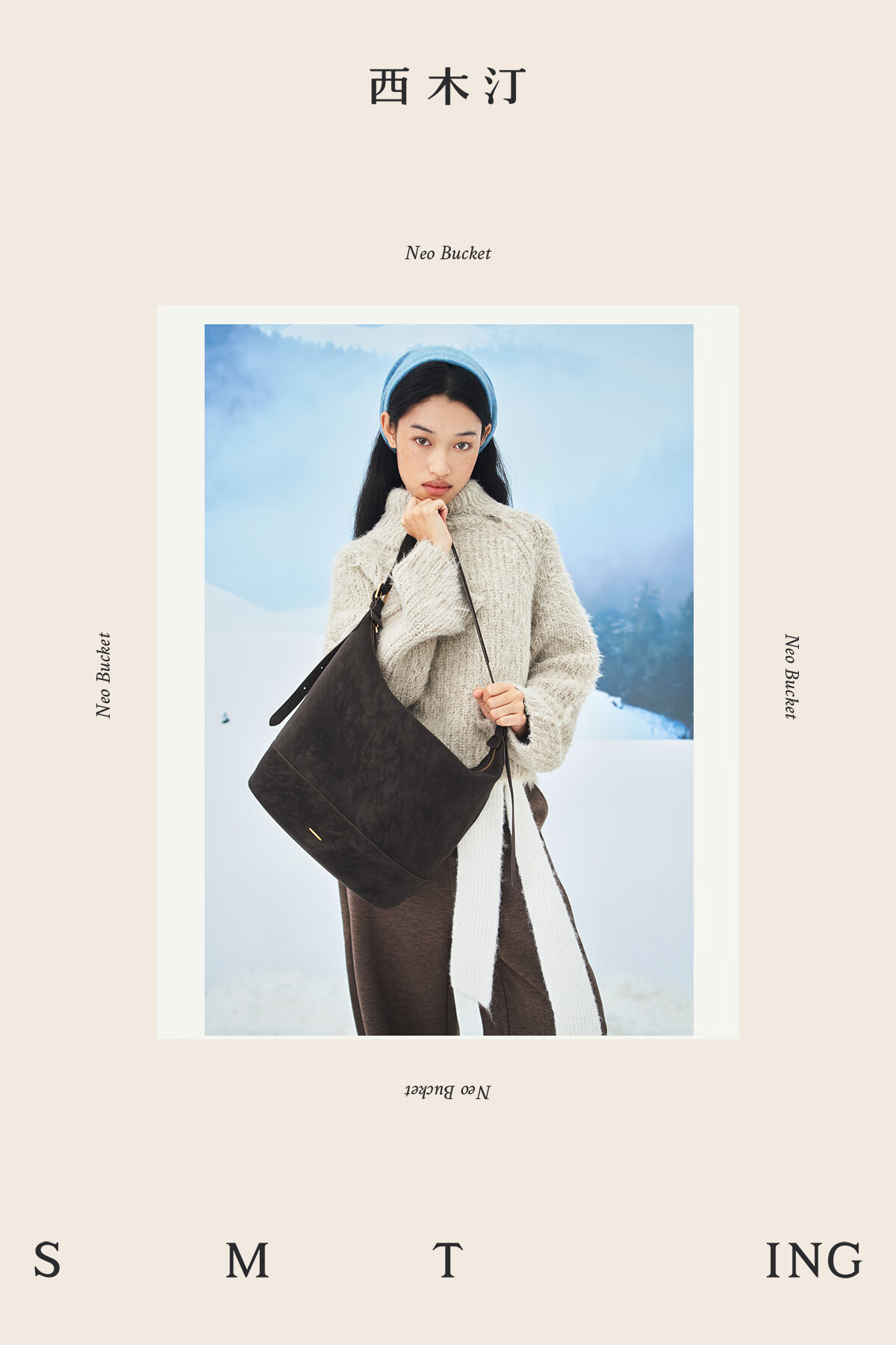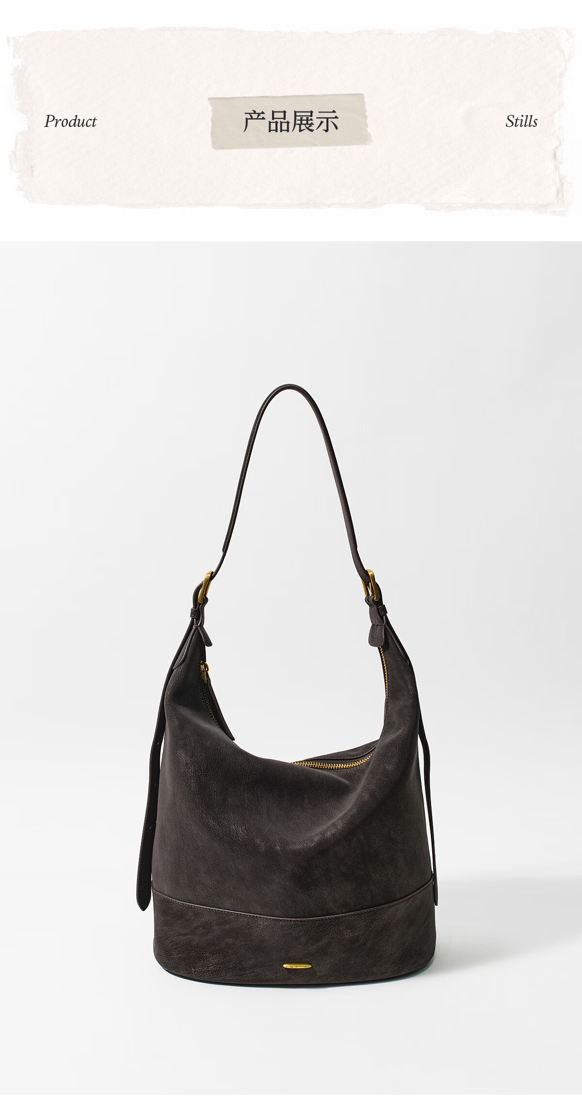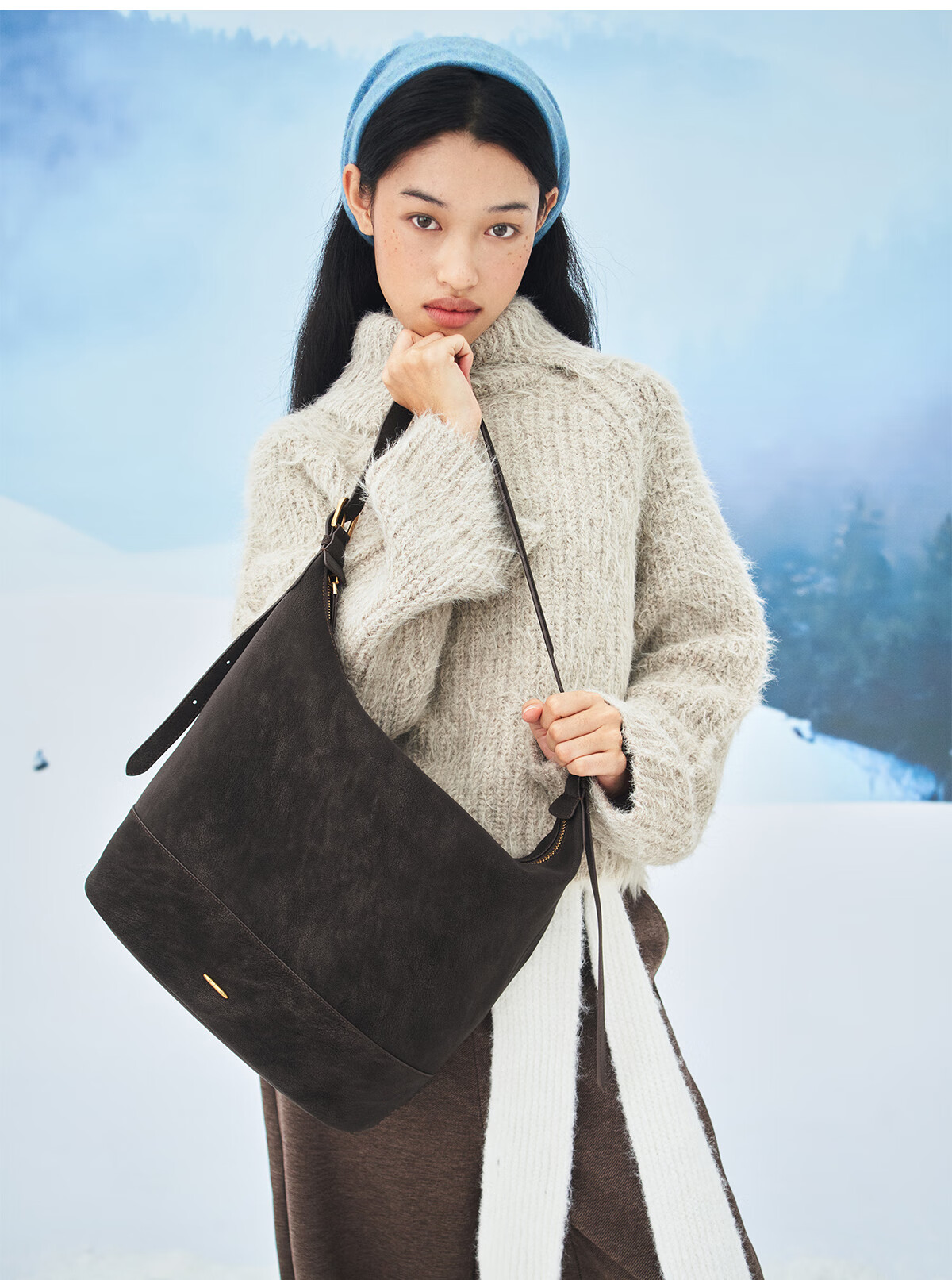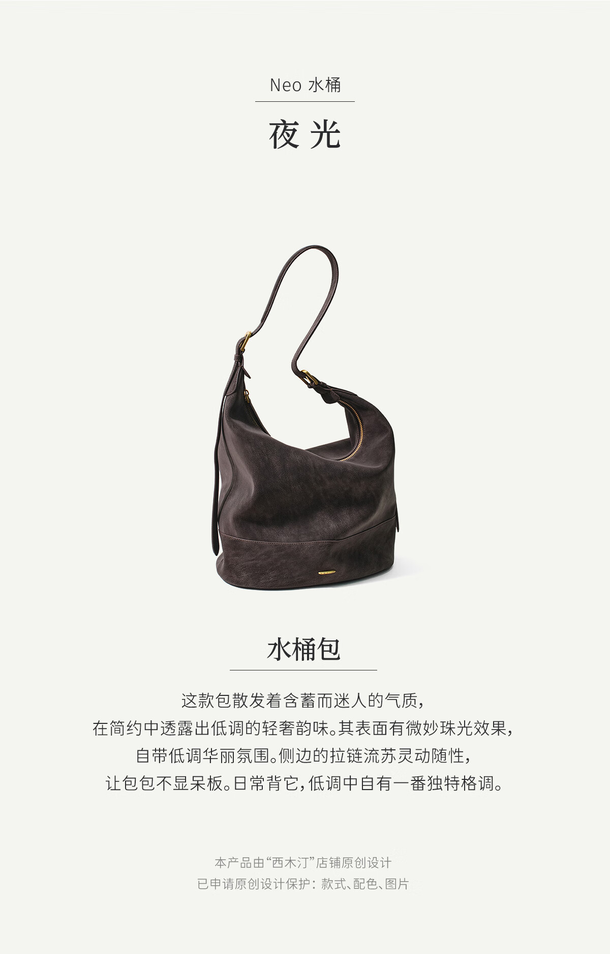 Ximuting luminous bucket bag texture women's bag 2025 new shoulder bag small commuting crossbody bag women's bag light luxury ebony color