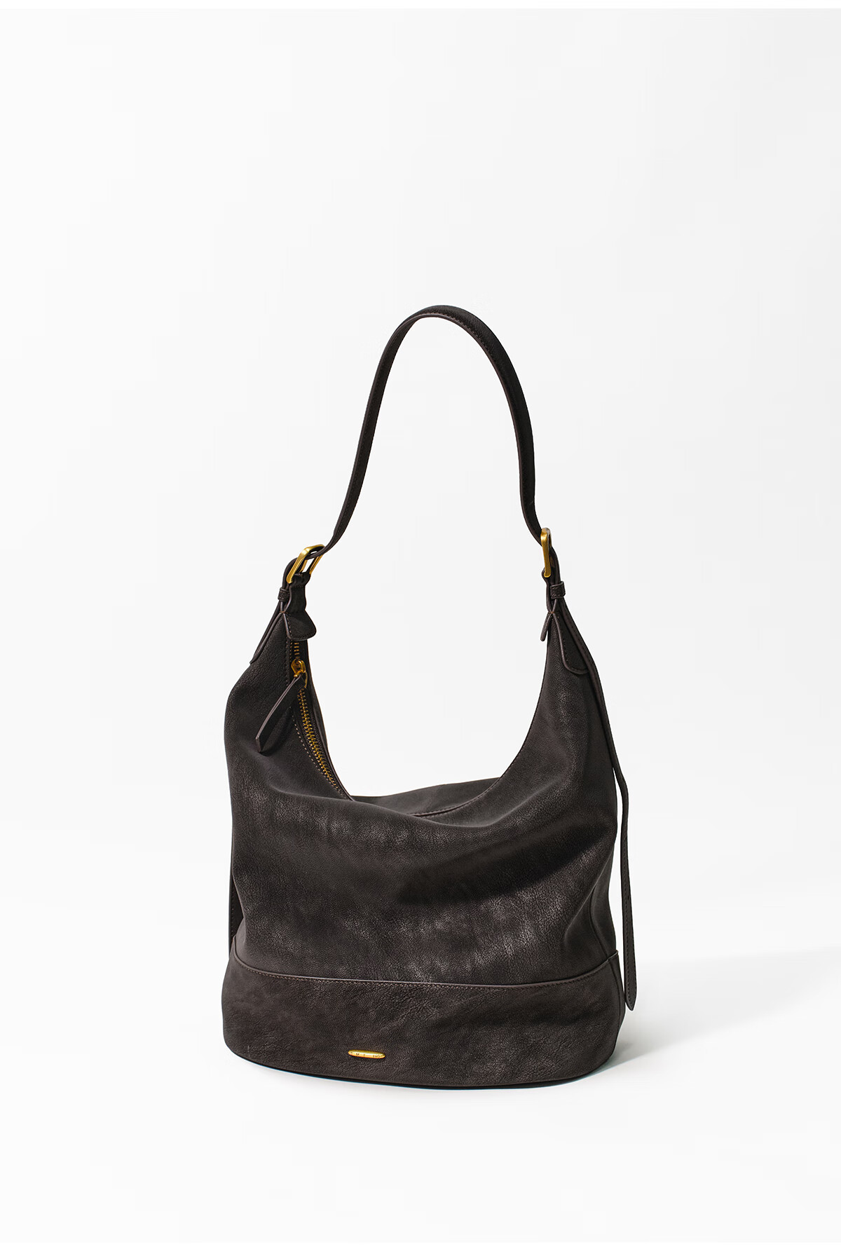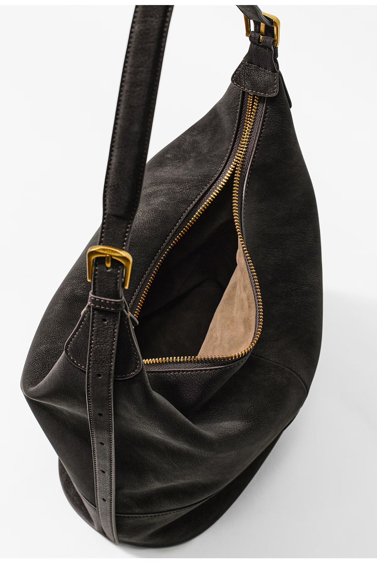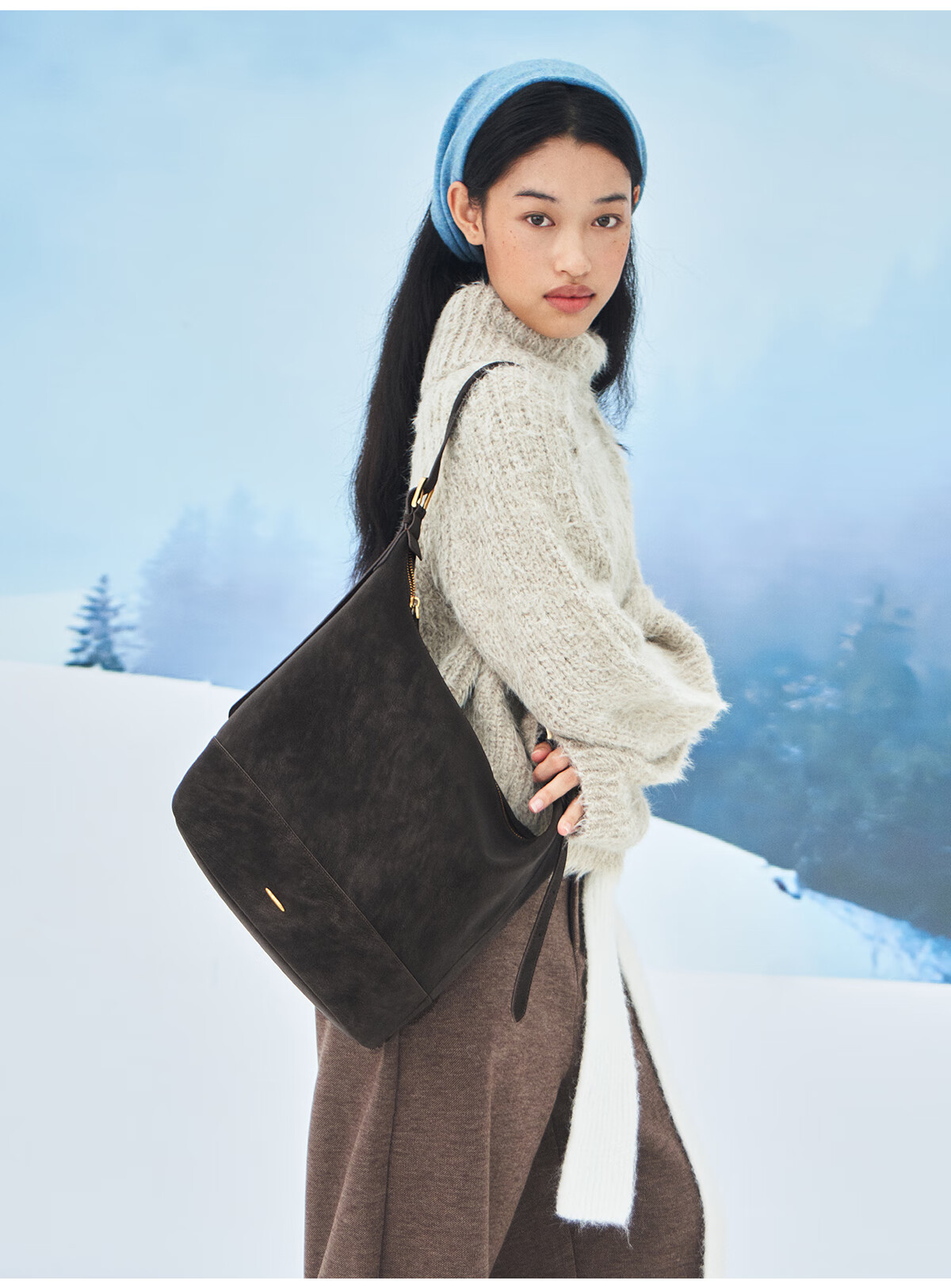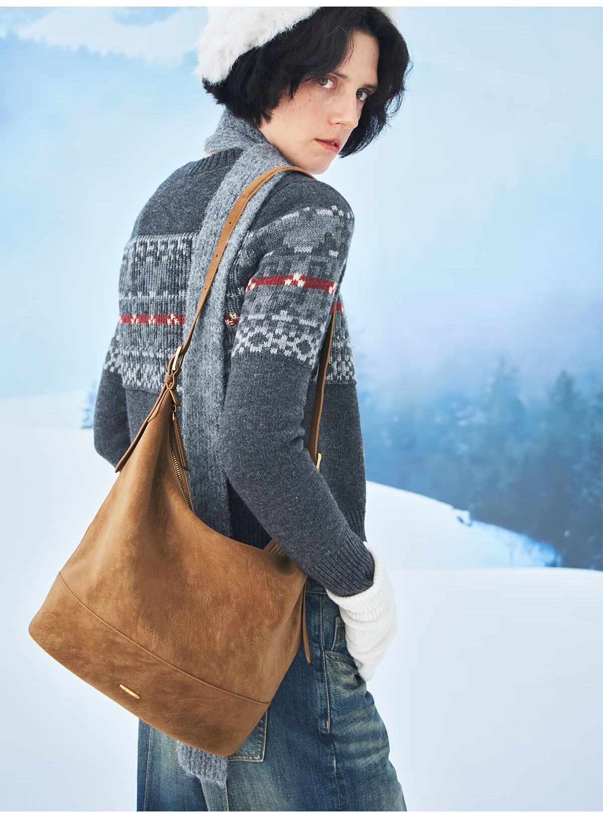 Ximuting luminous bucket bag texture women's bag 2025 new shoulder bag small commuting crossbody bag women's bag light luxury ebony color