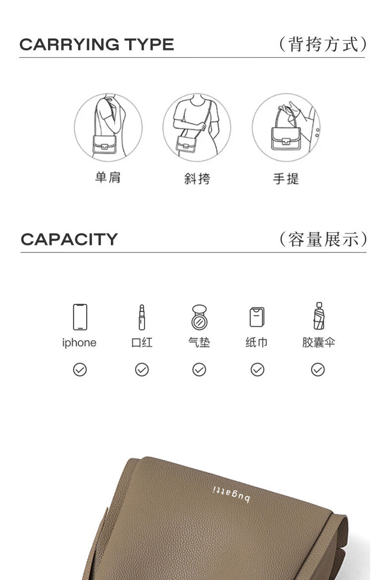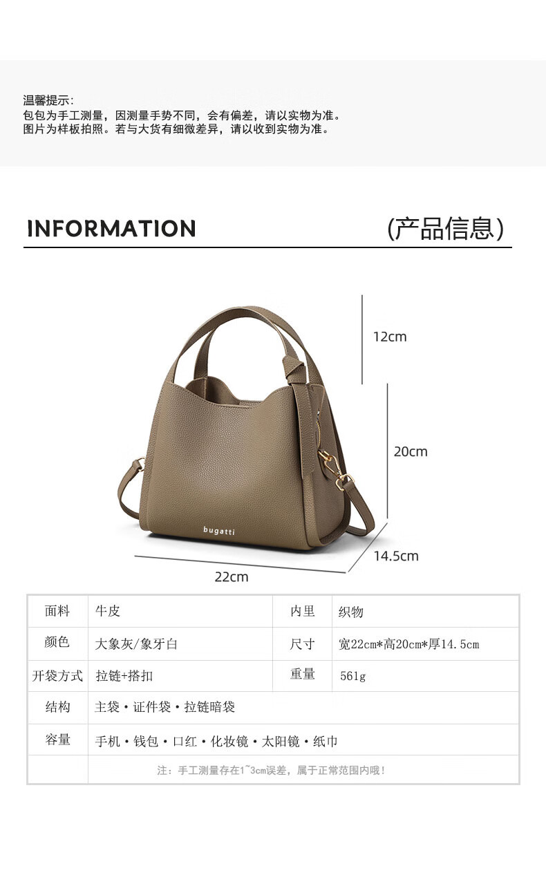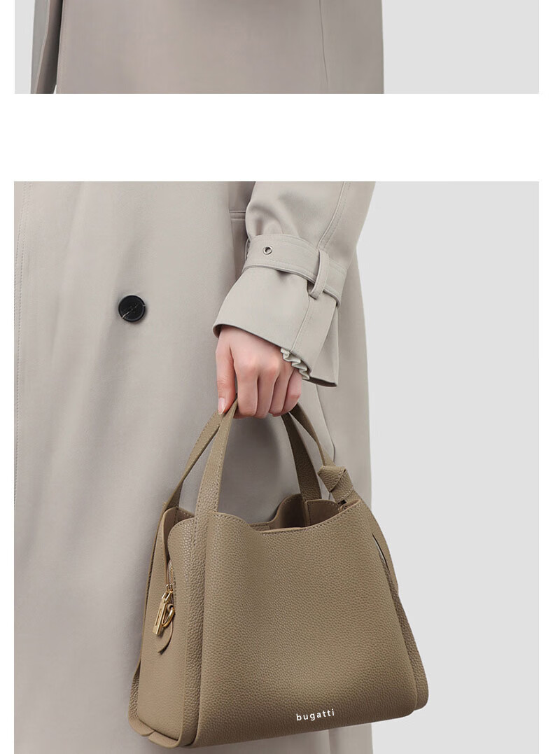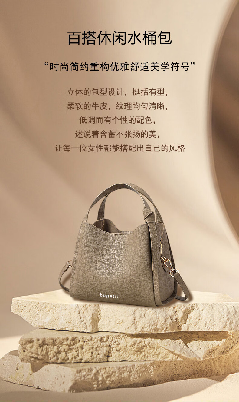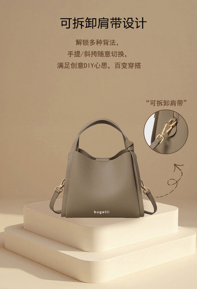 Bugatti (BUGATTI) Light Luxury Bags Women's Bags Ladies Bucket Bag 2025 New Single Shoulder Crossbody Bag for Girlfriend and Wife Birthday Gift Elephant Gray Gift Box