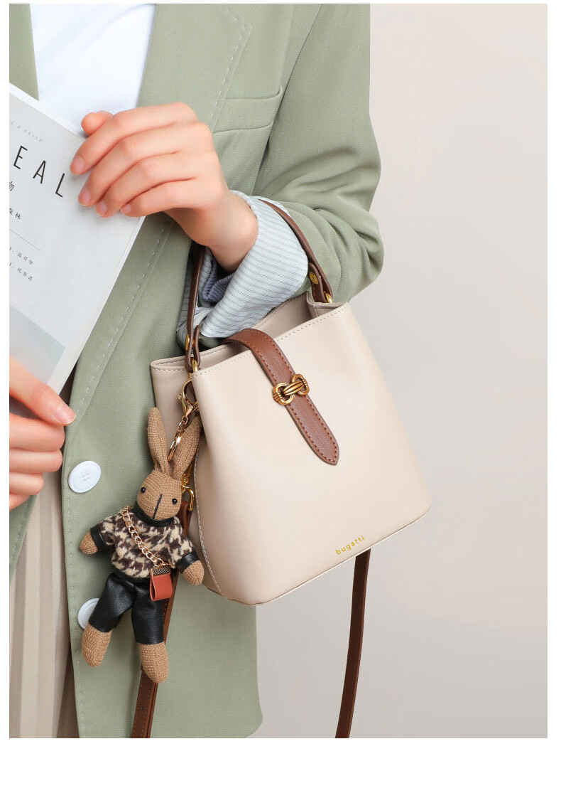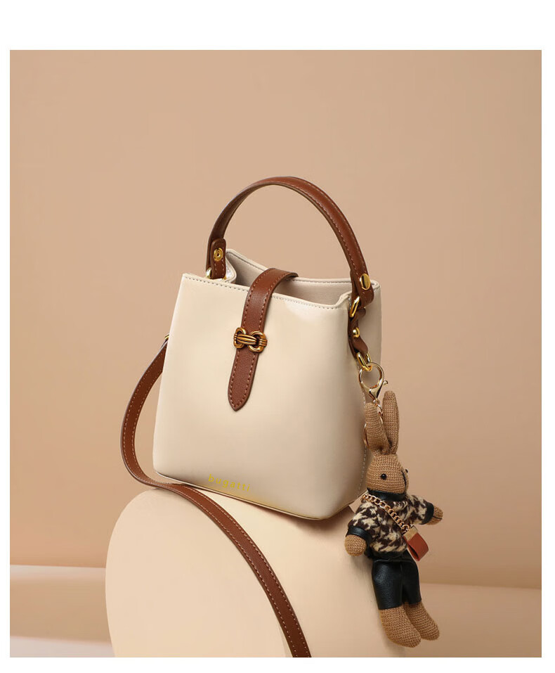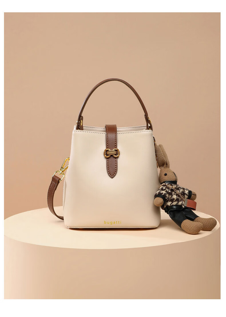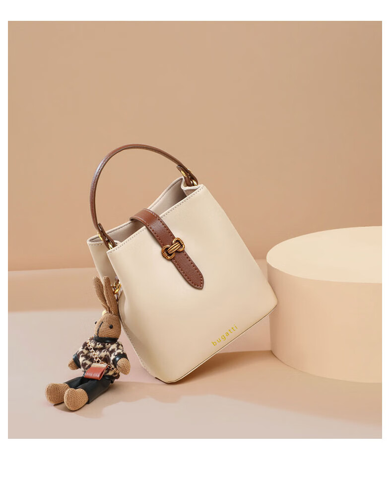 Bugatti (BUGATTI) Bags Women's Bags Women's Bucket Bags 2025 New Light Luxury Single Shoulder Crossbody Bags Birthday Gifts for Wife and Girlfriend Sea Salt White Gift Box