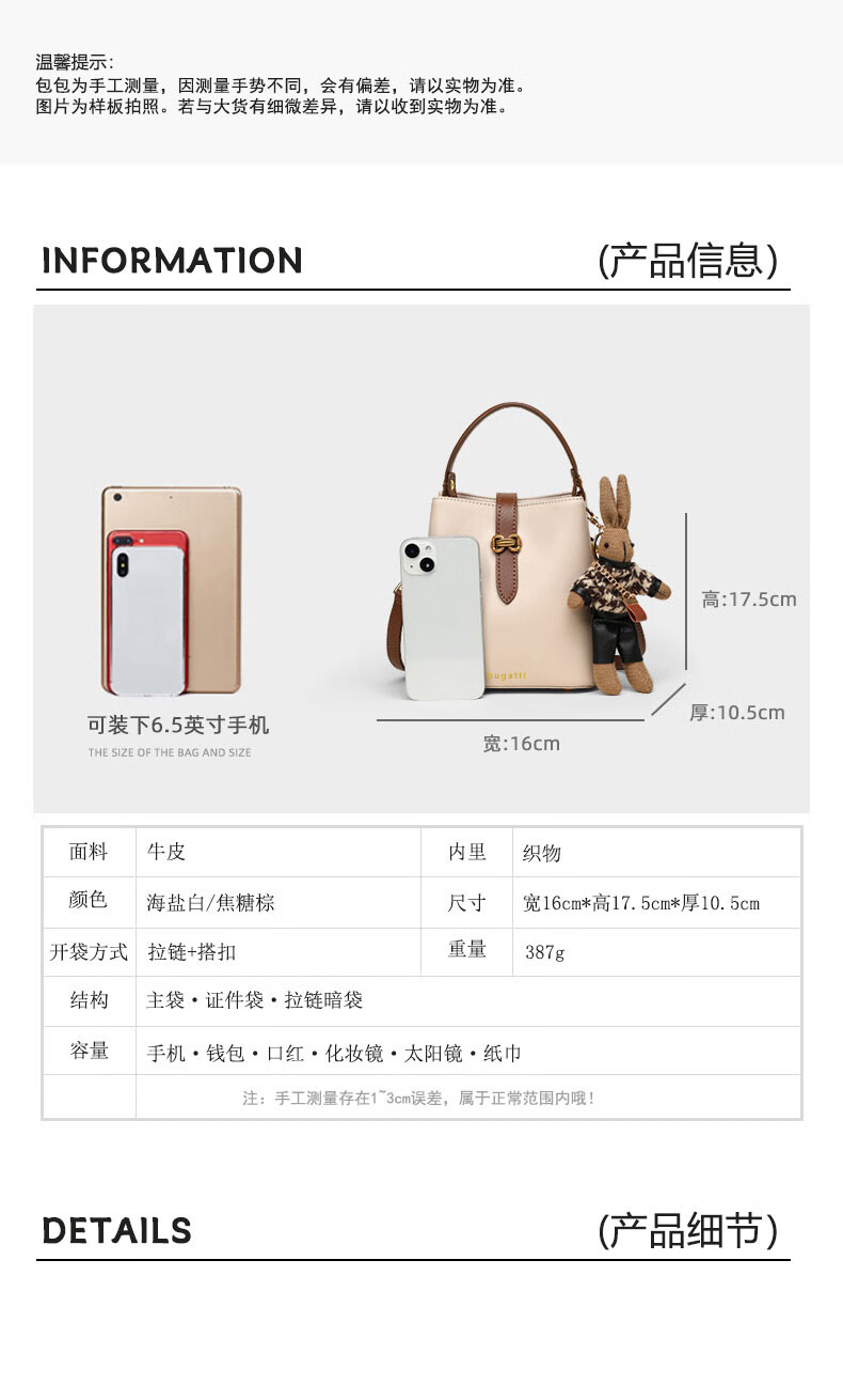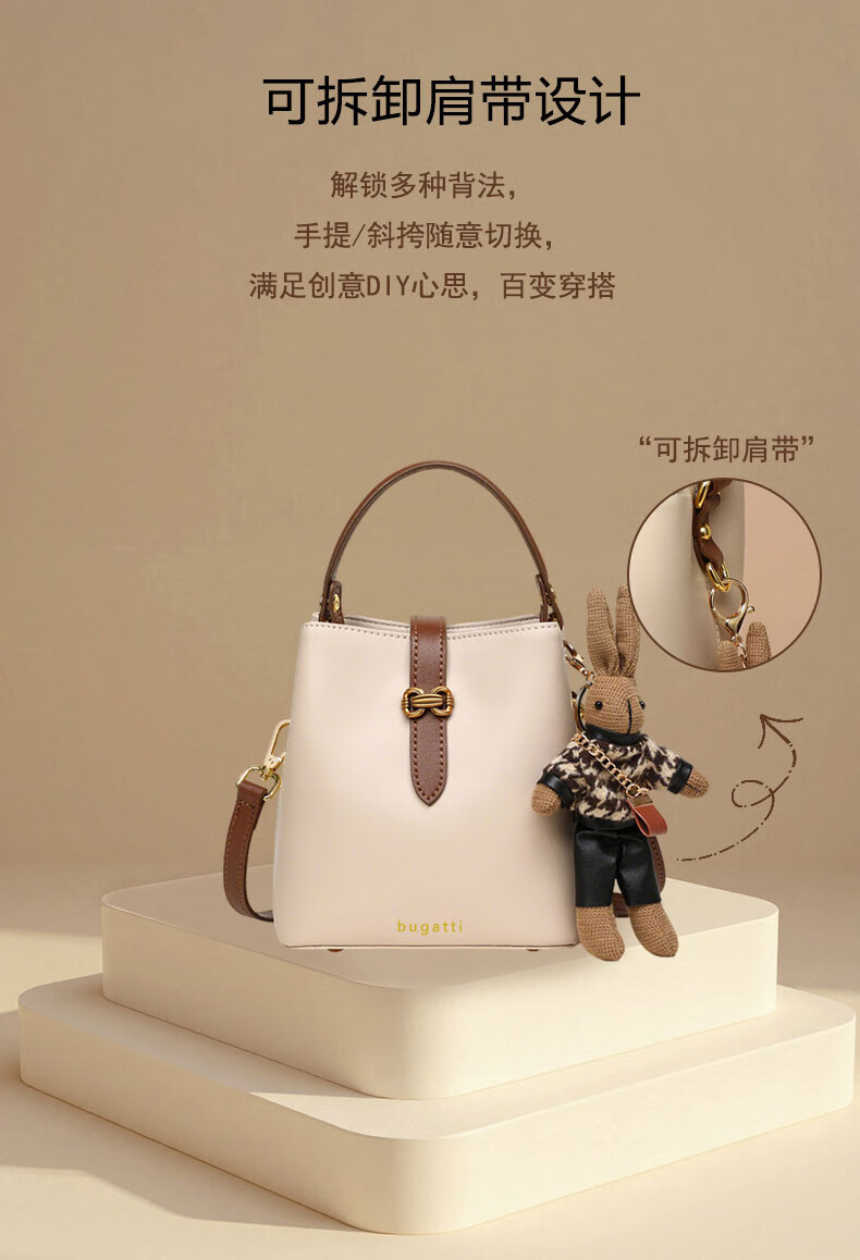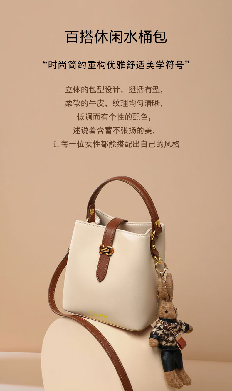 Bugatti (BUGATTI) Bags Women's Bags Women's Bucket Bags 2025 New Light Luxury Single Shoulder Crossbody Bags Birthday Gifts for Wife and Girlfriend Sea Salt White Gift Box