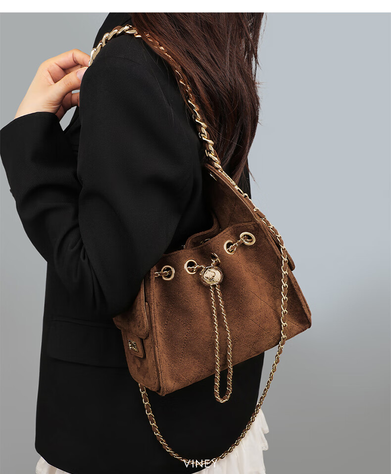 Viney new bag women's bag brand crossbody bag light luxury bucket bag birthday gift for girlfriend and wife coffee color high-end practical shoulder bag fashionable and versatile casual large capacity commuter armpit bag