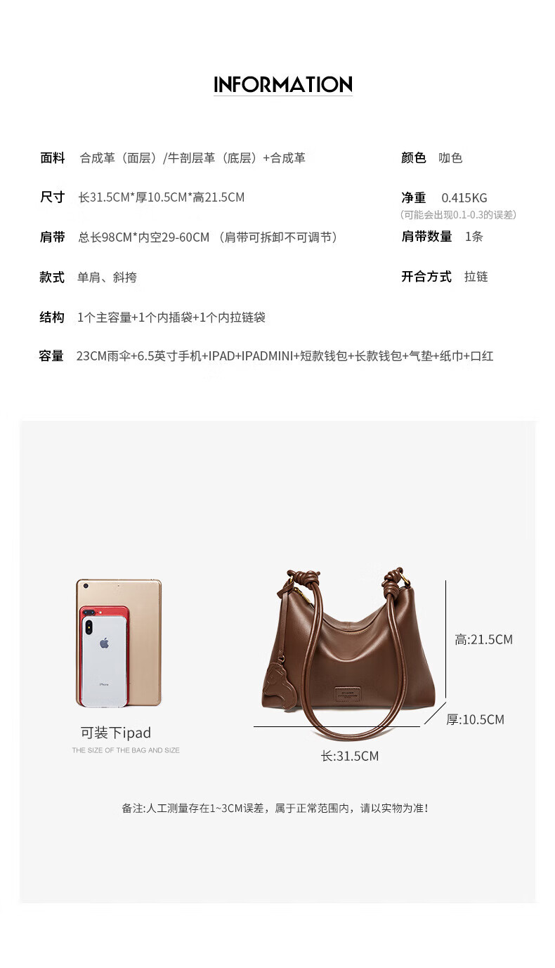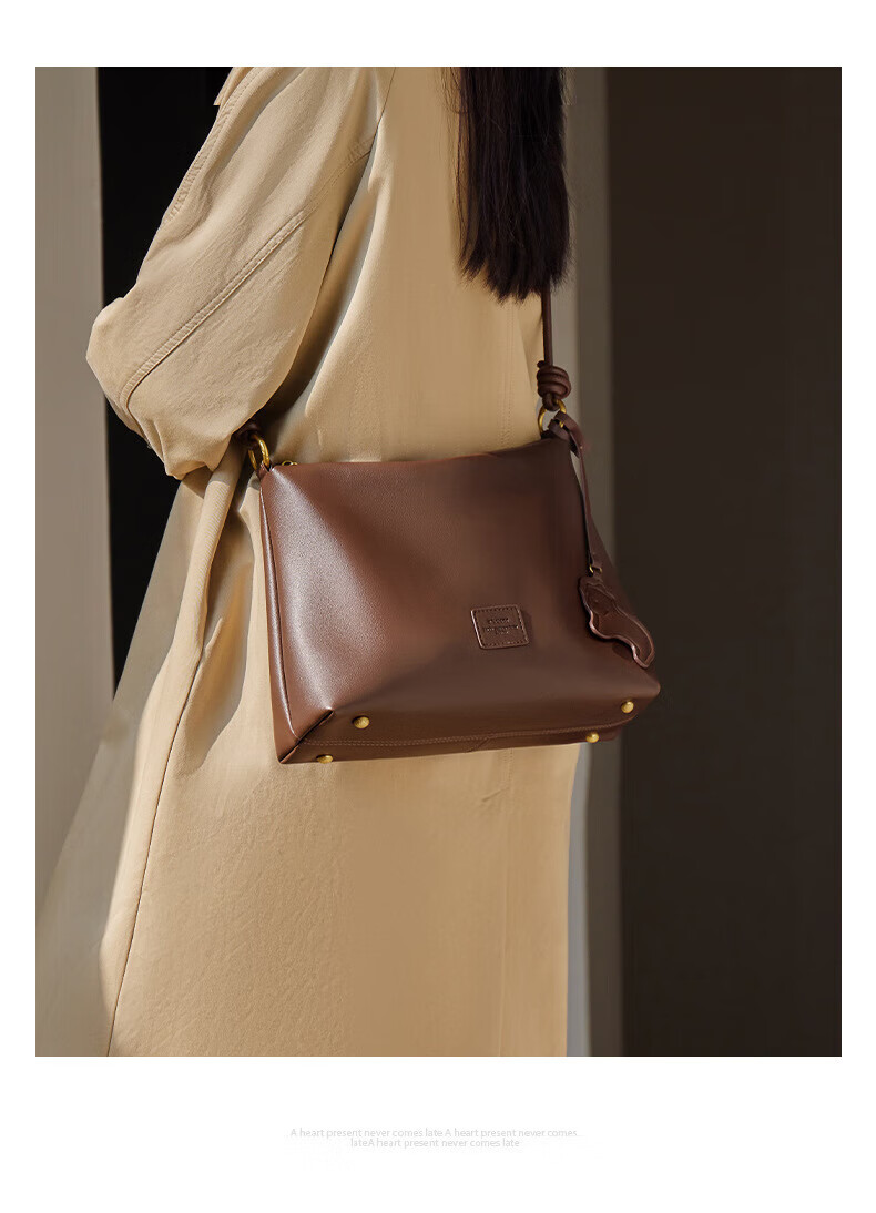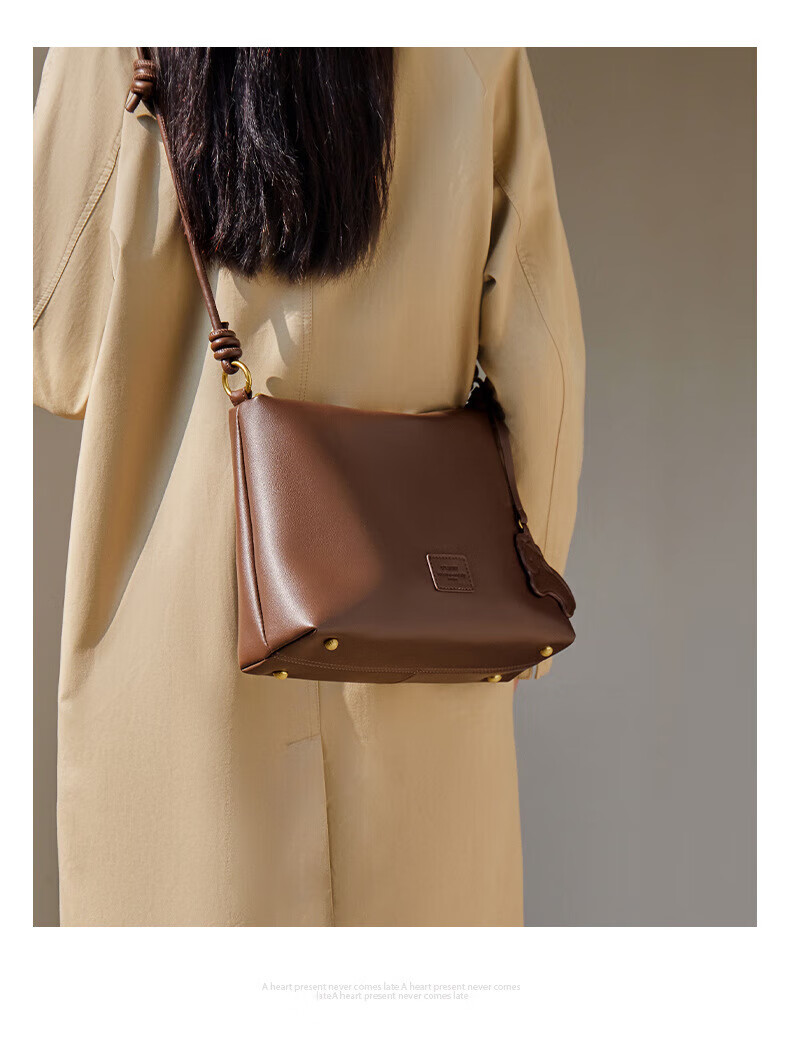 Nalandu 2025 Autumn and Winter New Bucket Bag Fashionable Shoulder Bag Design Crossbody Bag Large Capacity Commuting Bag for Women Coffee Color Length 31.5CM* Thickness 10.5CM* Height 21.5CM