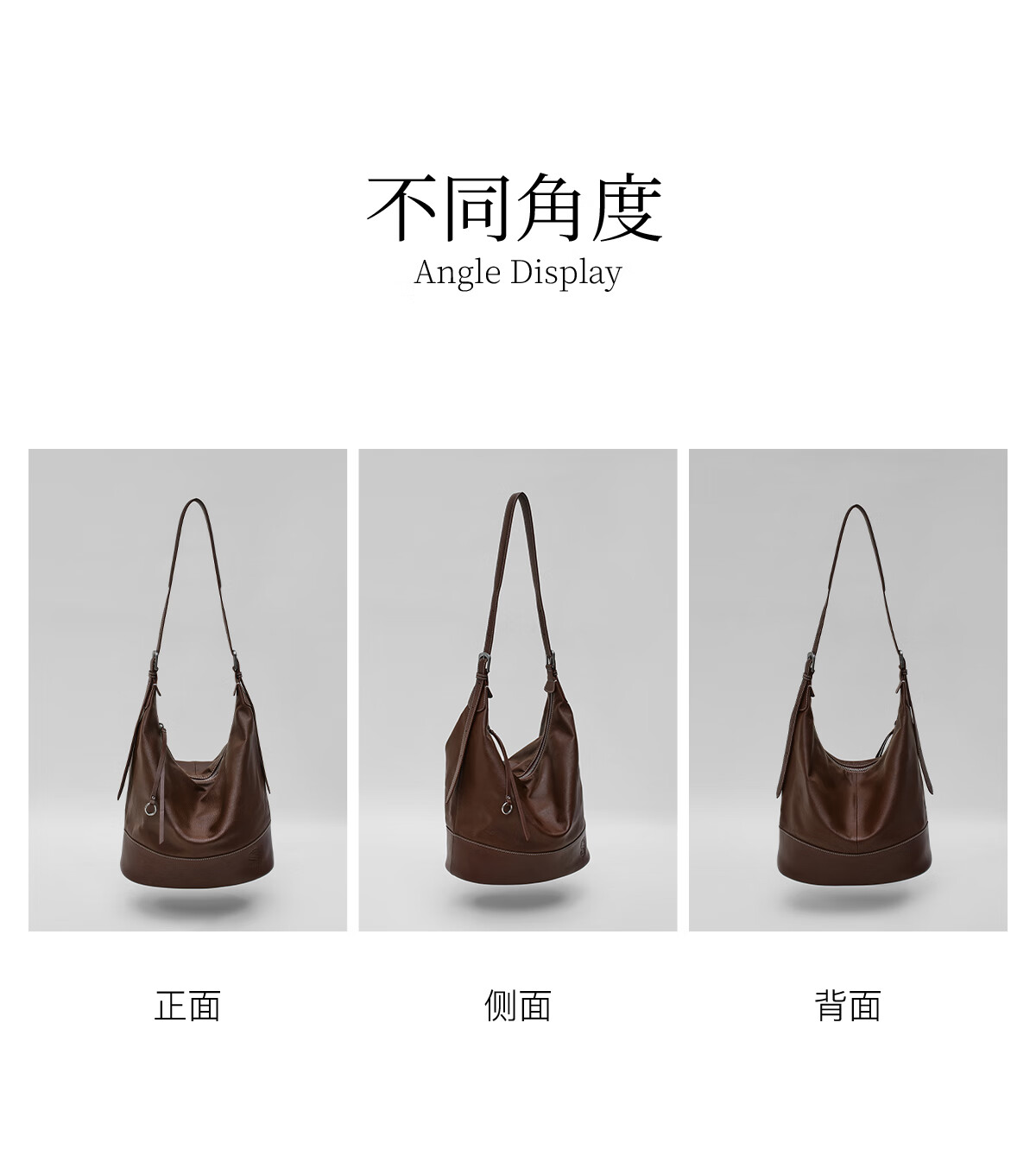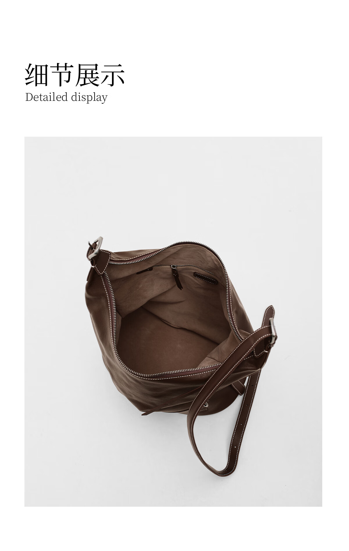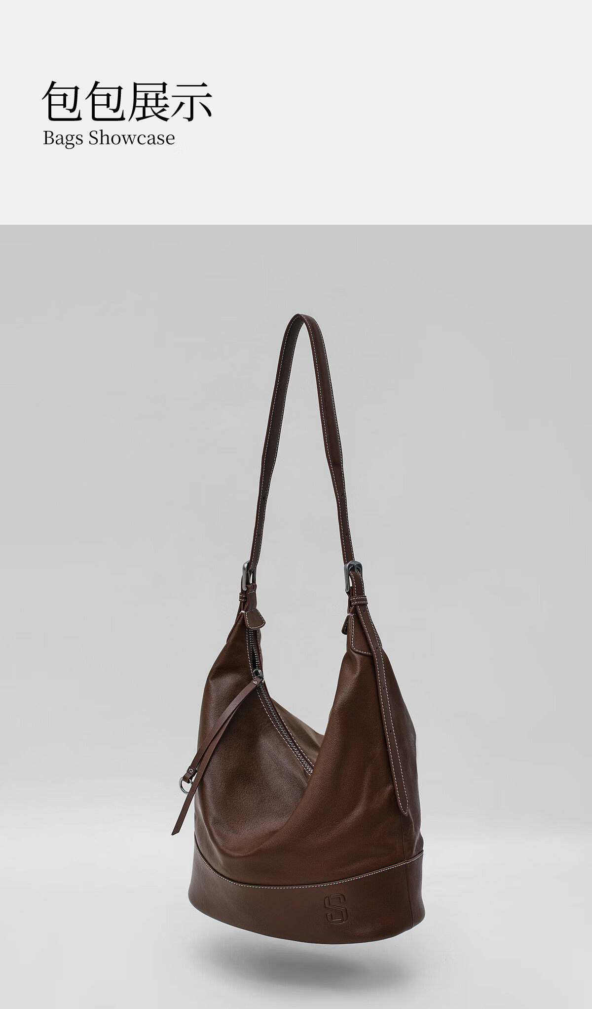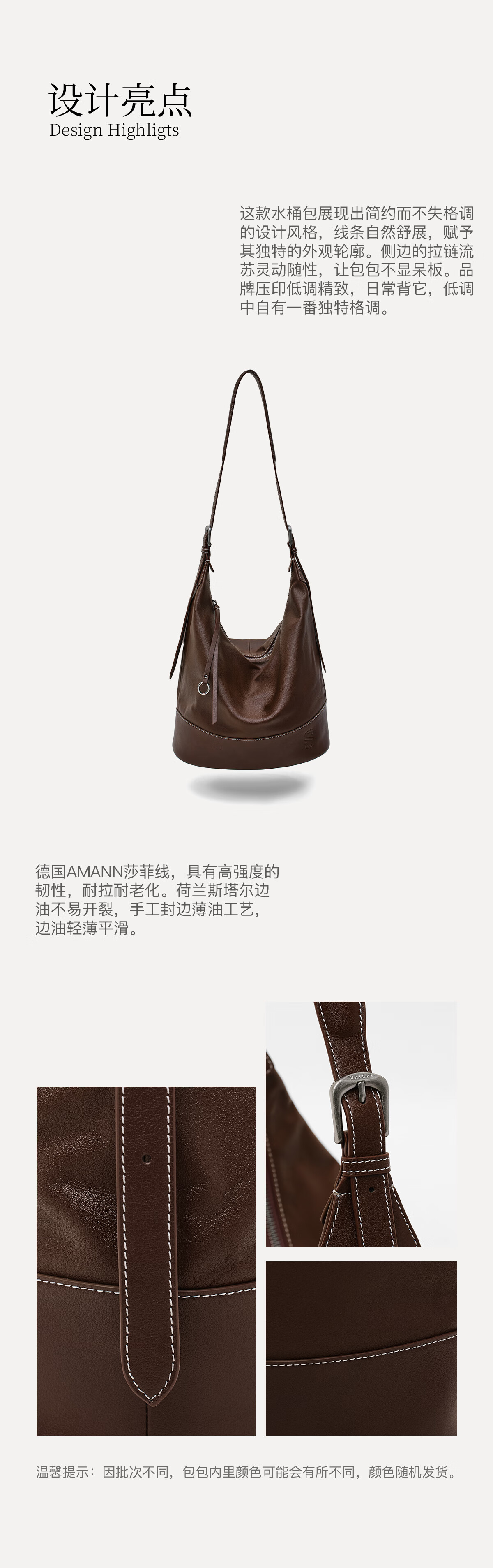 Ximuting first layer cowhide bucket bag 2025 new women's shoulder bag light luxury niche high-end bag light luxury gift hazelnut brown