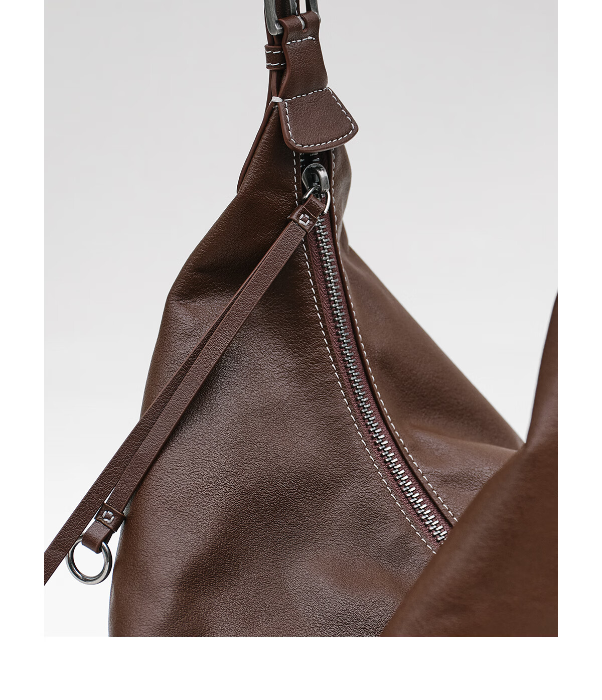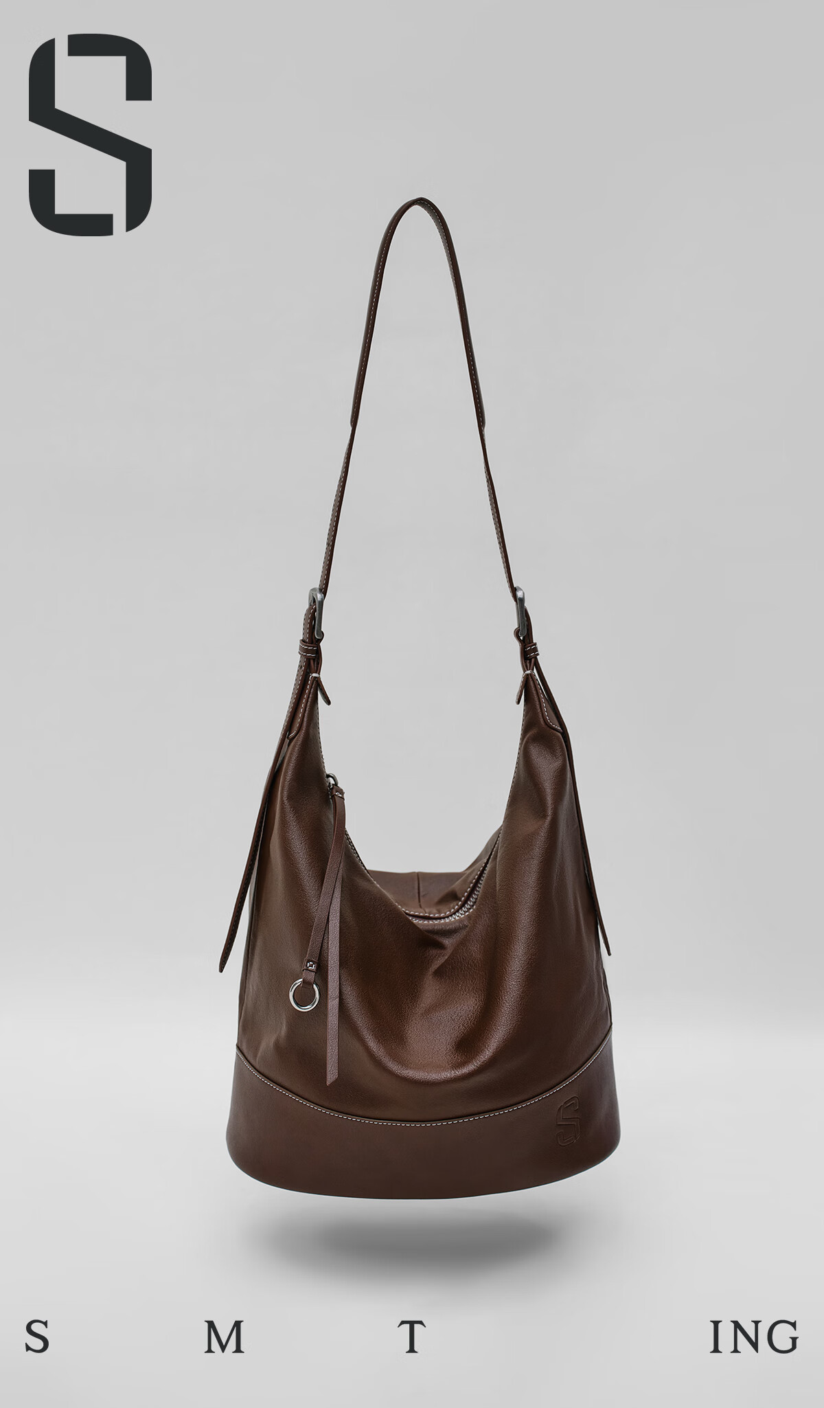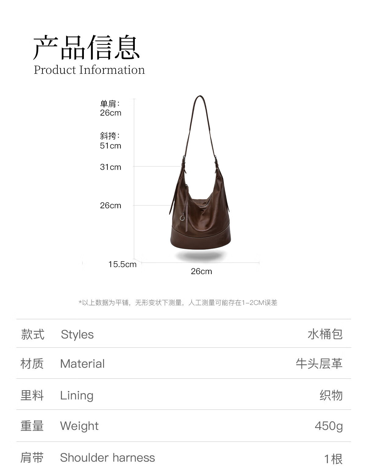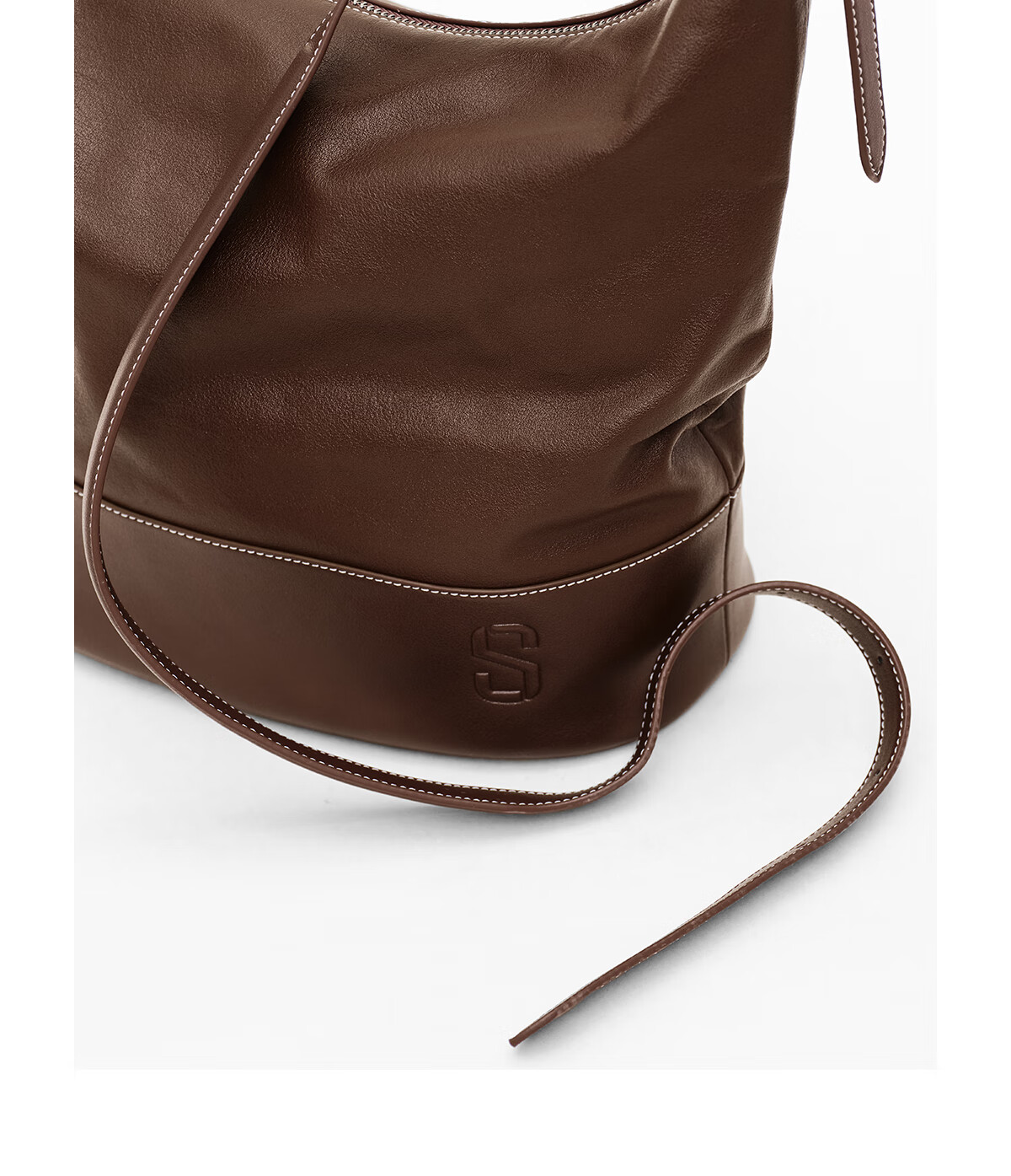 Ximuting first layer cowhide bucket bag 2025 new women's shoulder bag light luxury niche high-end bag light luxury gift hazelnut brown