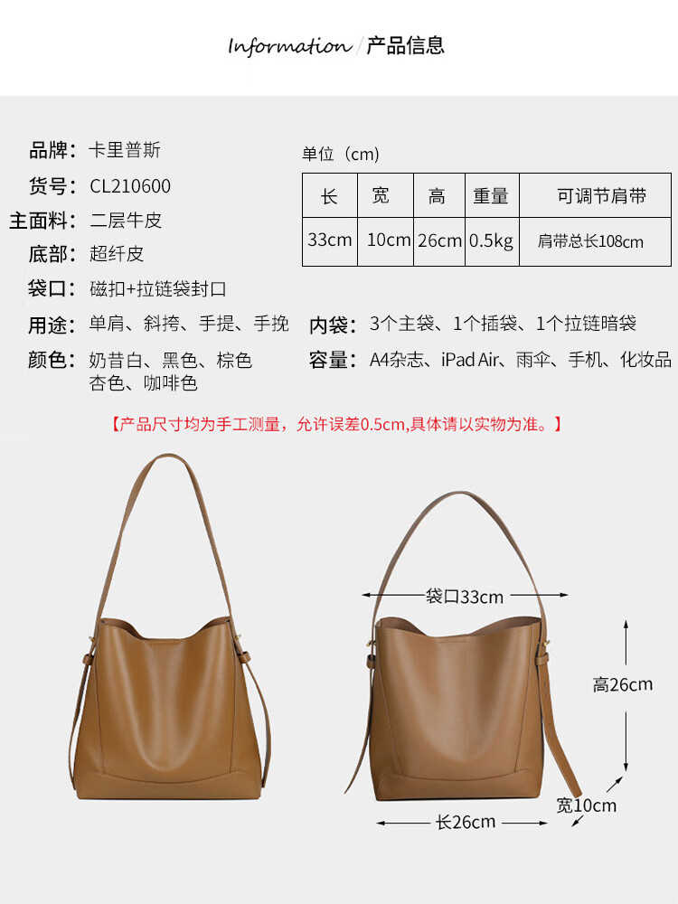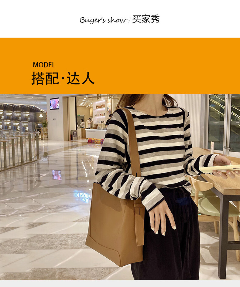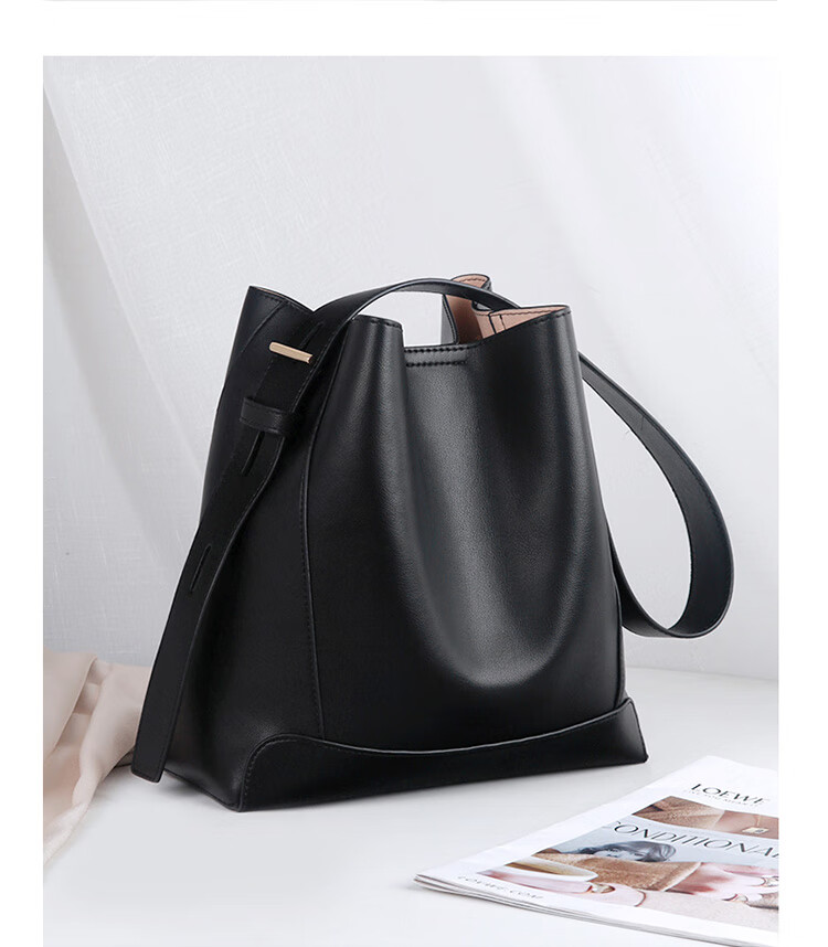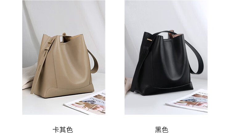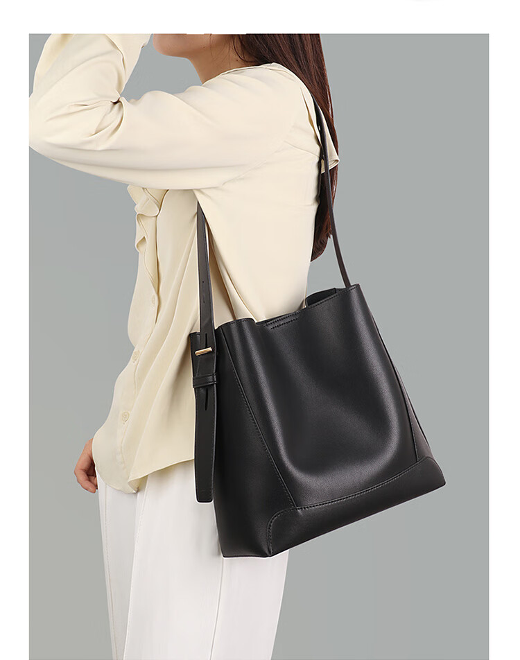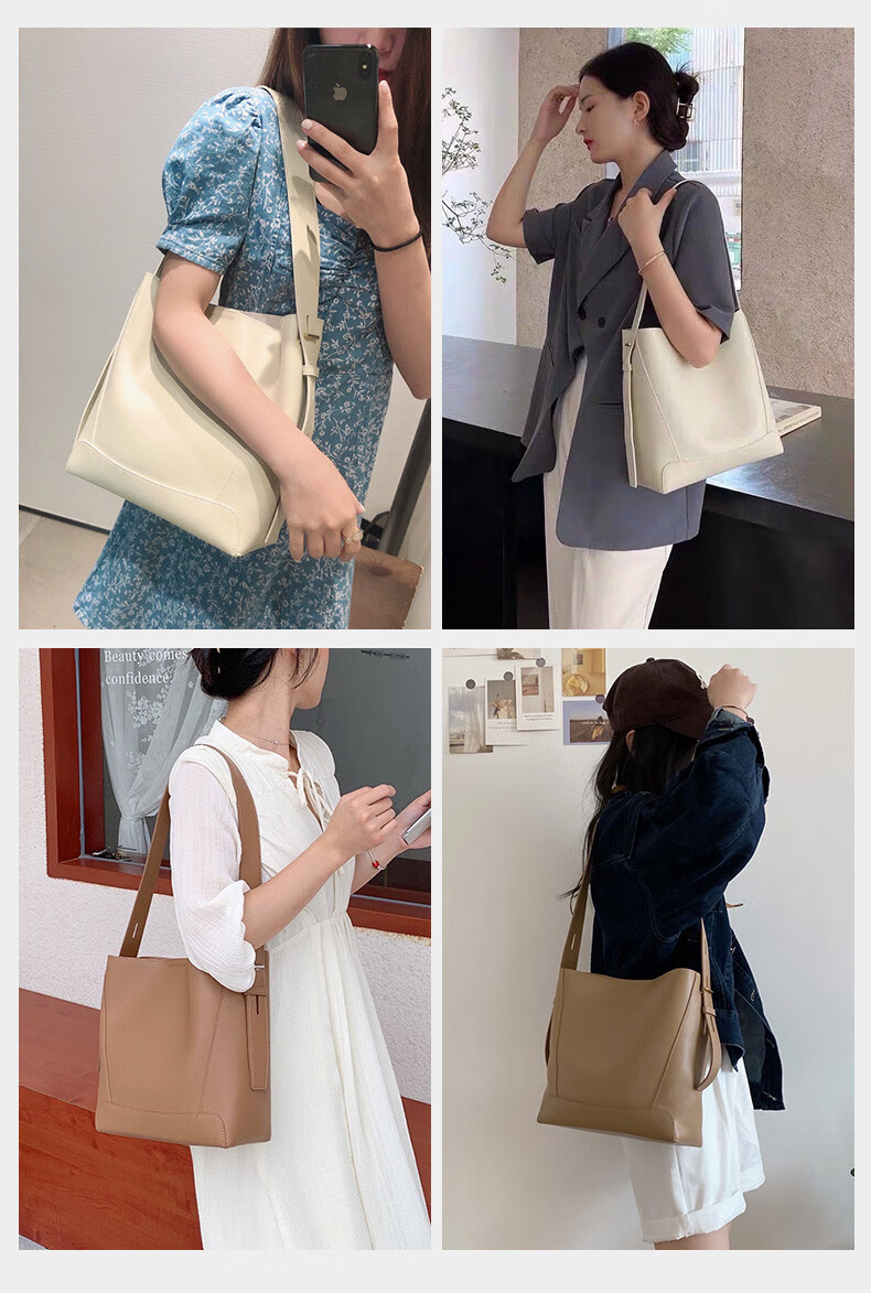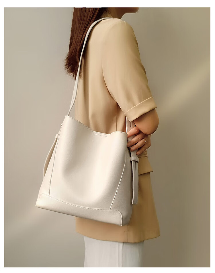 Bucket Bag Women's Large Capacity Lightweight Genuine Leather Bag 2025 New Single Shoulder Crossbody Bag Commuting Tote Senior Mom Milk Tea Brown (3 Hole Shoulder Strap)