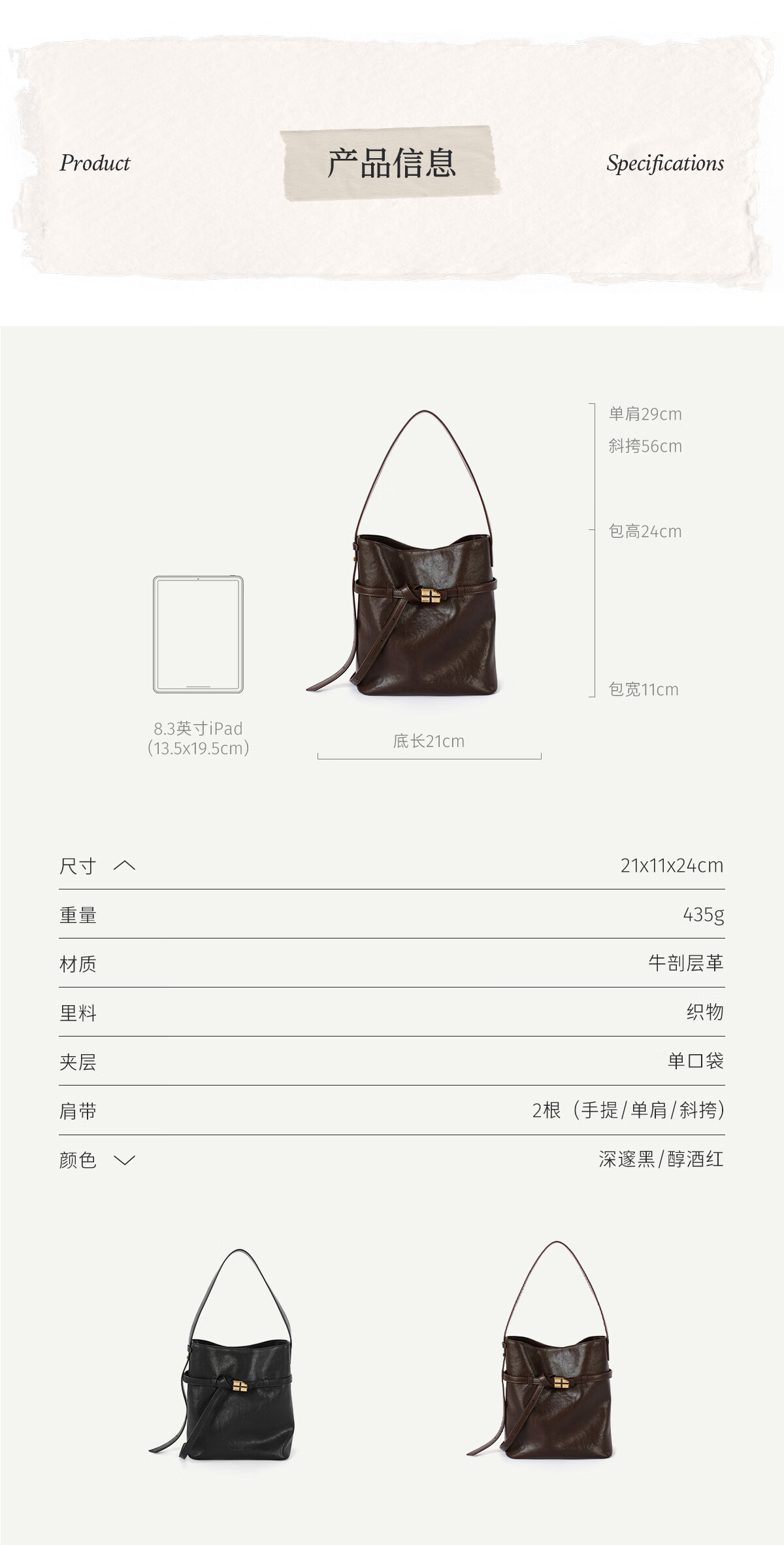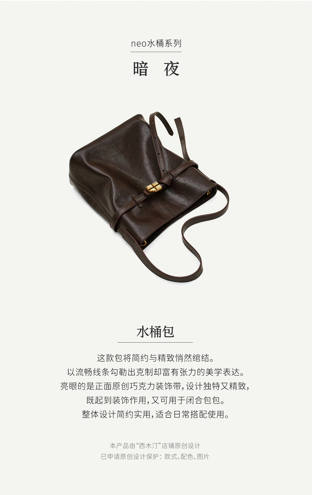 Ximuting Dark Night Small Bucket Bag Commuting Crossbody Bag Light Luxury Women's 2025 New Versatile Casual Shoulder Bag Gift Deep Black Small