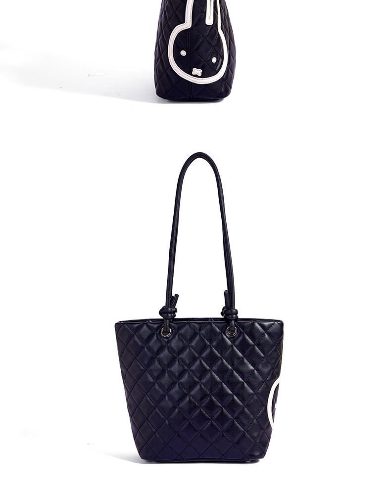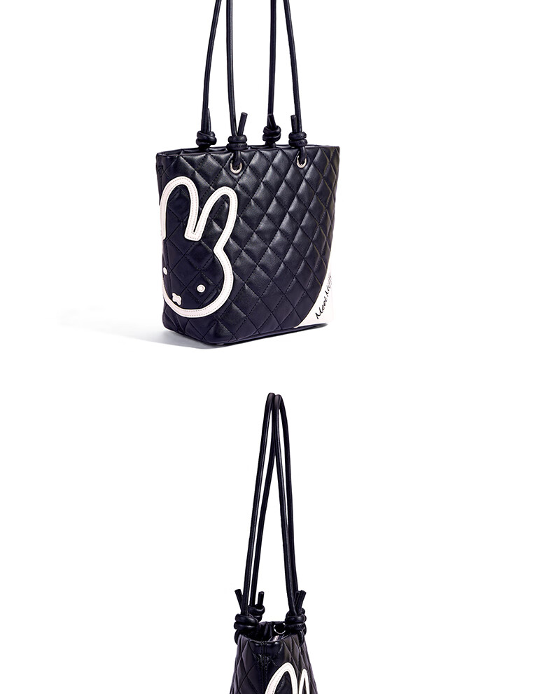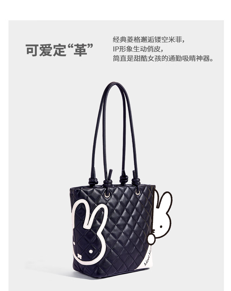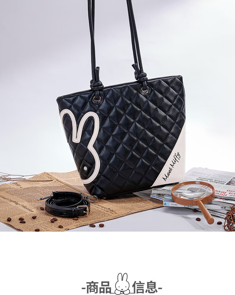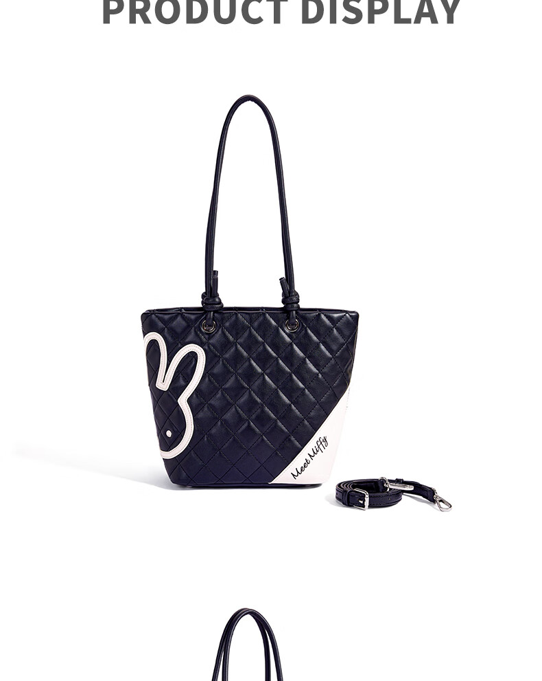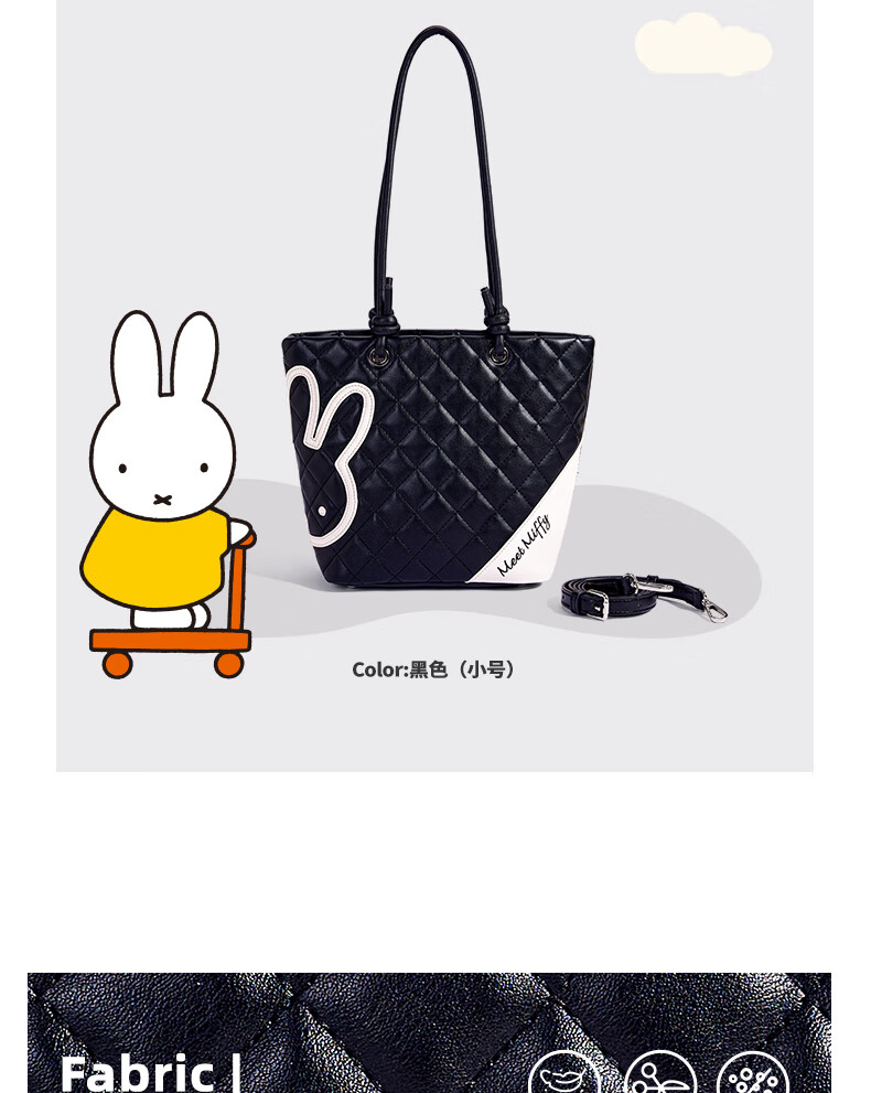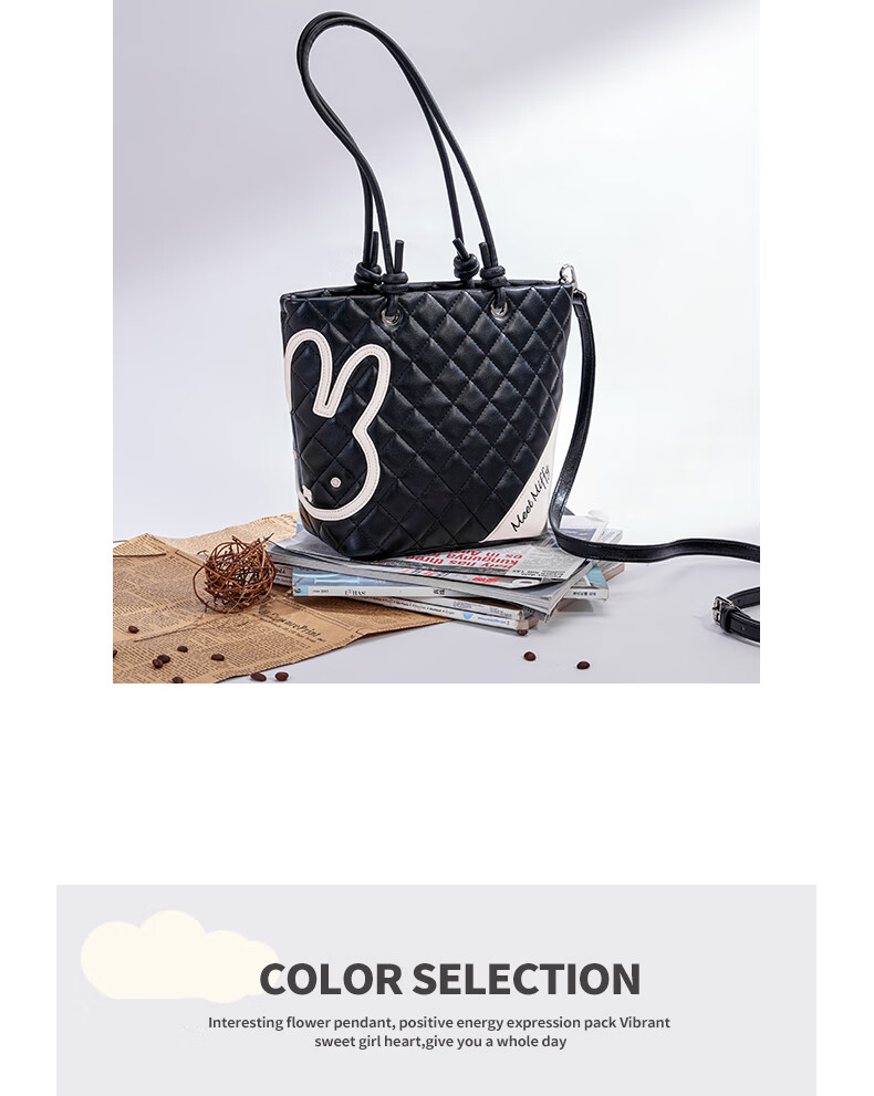 Miffy ring tote bag, fashionable and versatile handbag, high-end bucket bag, birthday gift with zipper, black with white small size