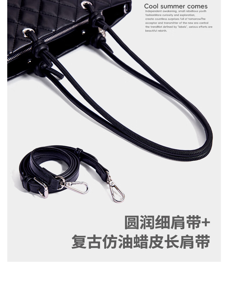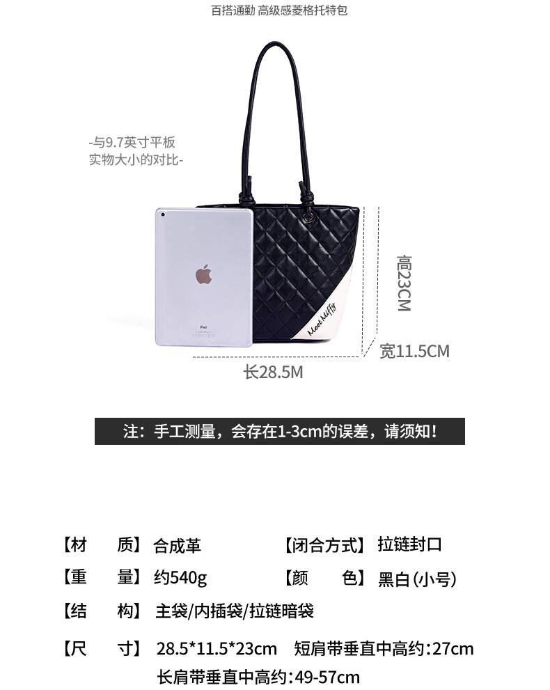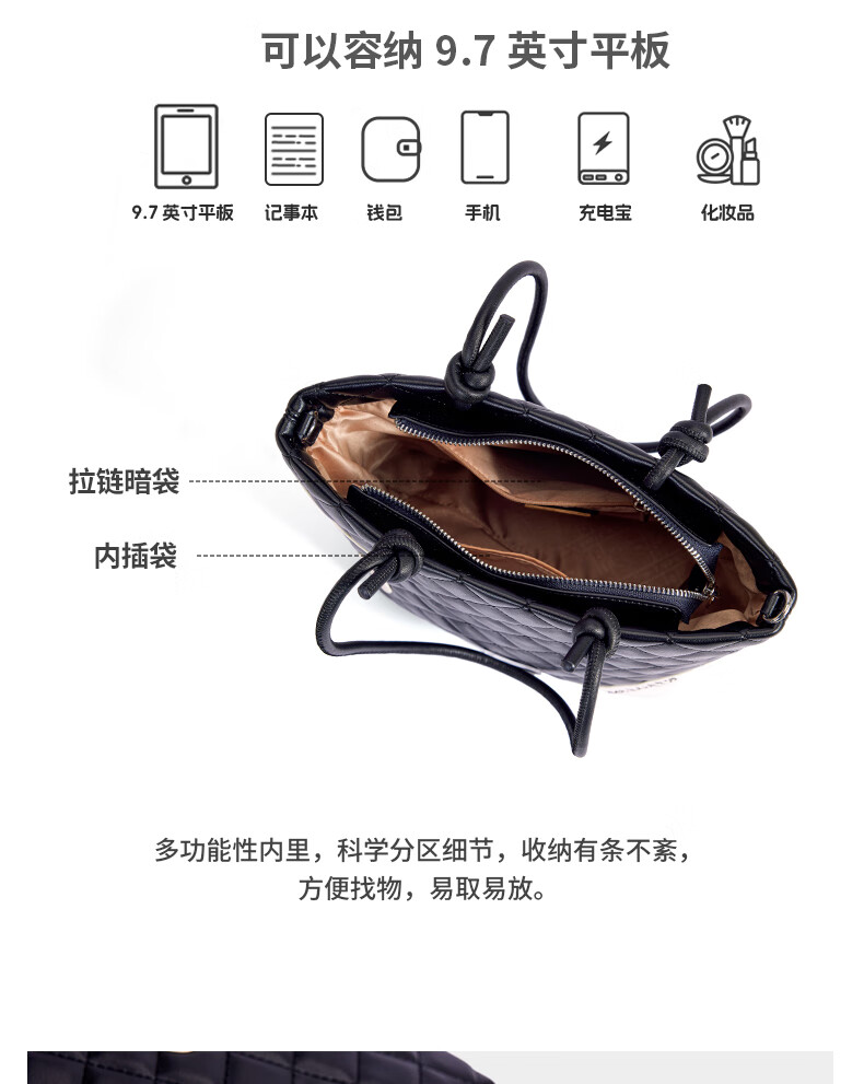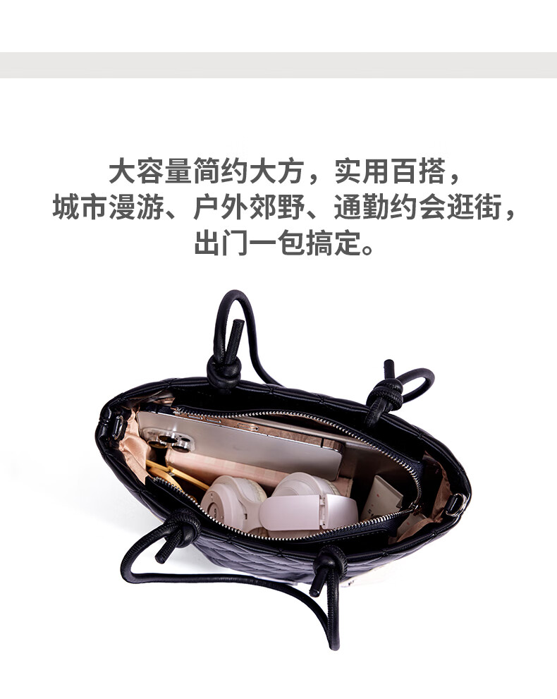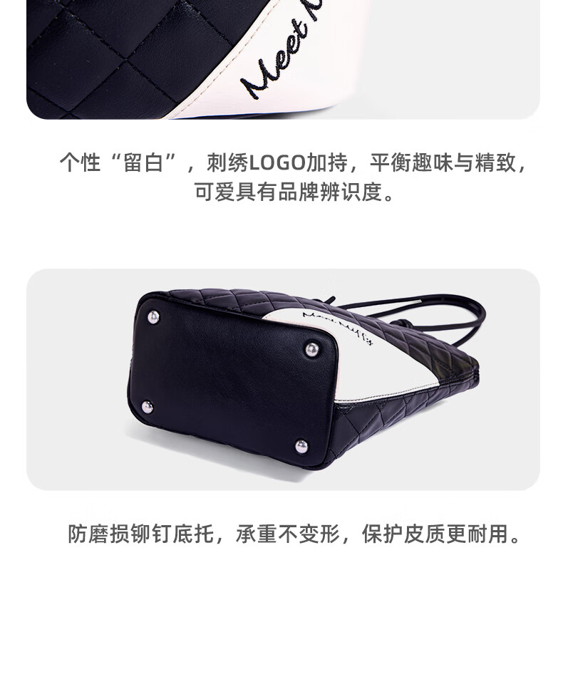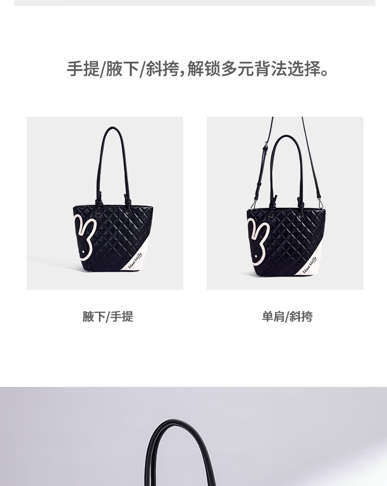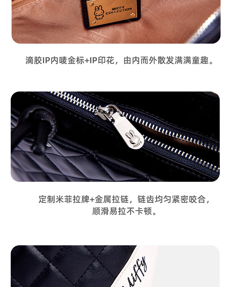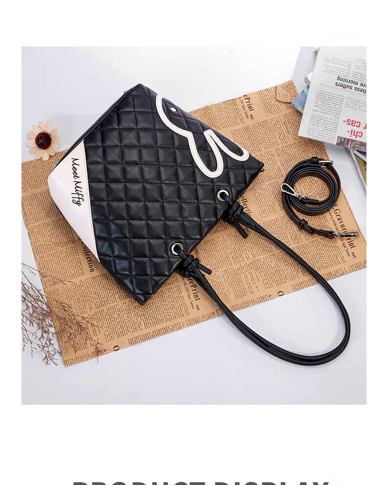 Miffy ring tote bag, fashionable and versatile handbag, high-end bucket bag, birthday gift with zipper, black with white small size