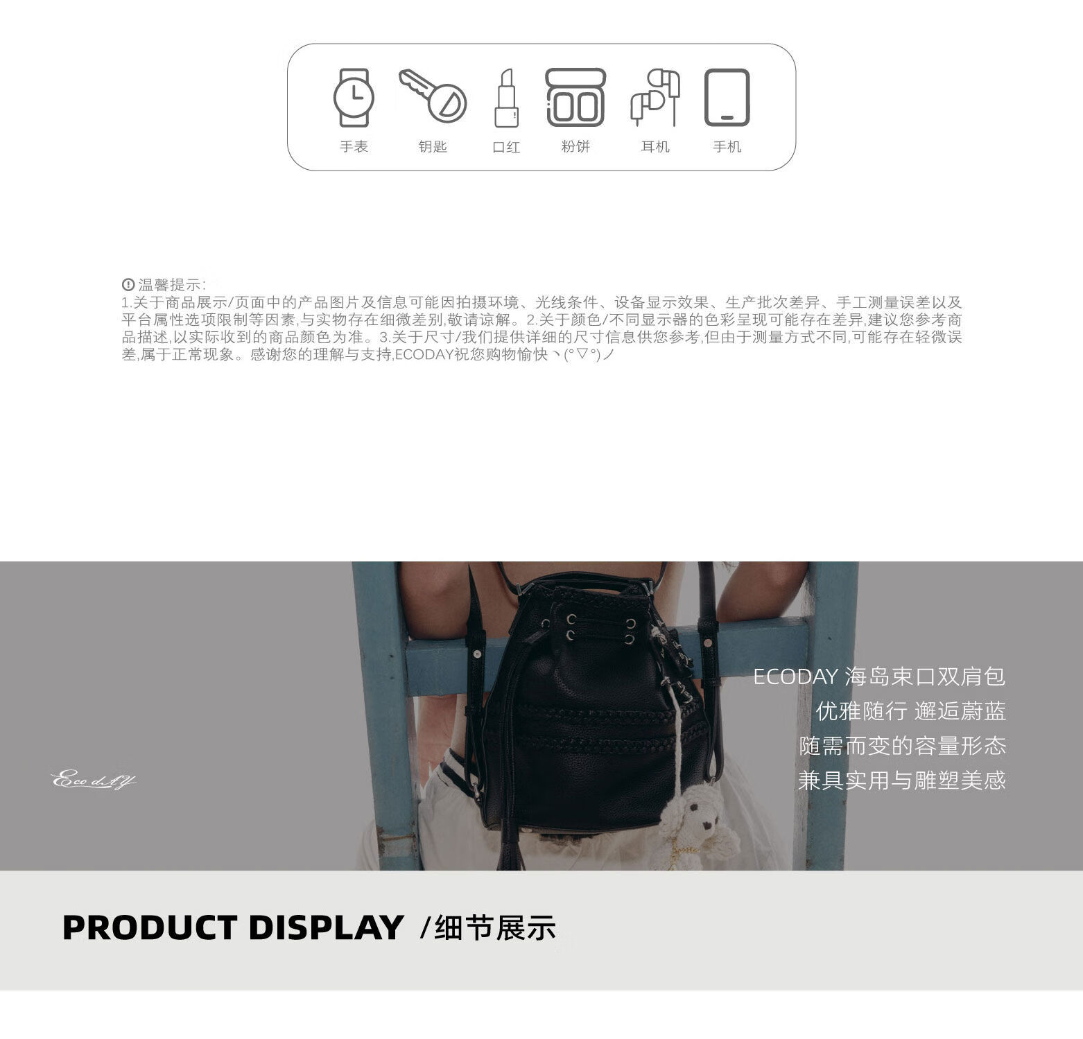 ECODAY2025 New Summer Bucket Bag Backpack Small Bag Commuting Travel Fashion Single Shoulder Messenger Bag Women Black