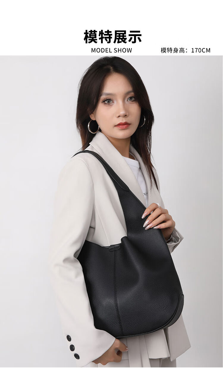 Hong Kong bag shopping for women 2024 autumn and winter new bucket bag large capacity tote bag feeling armpit shoulder bag black counter