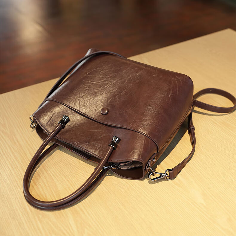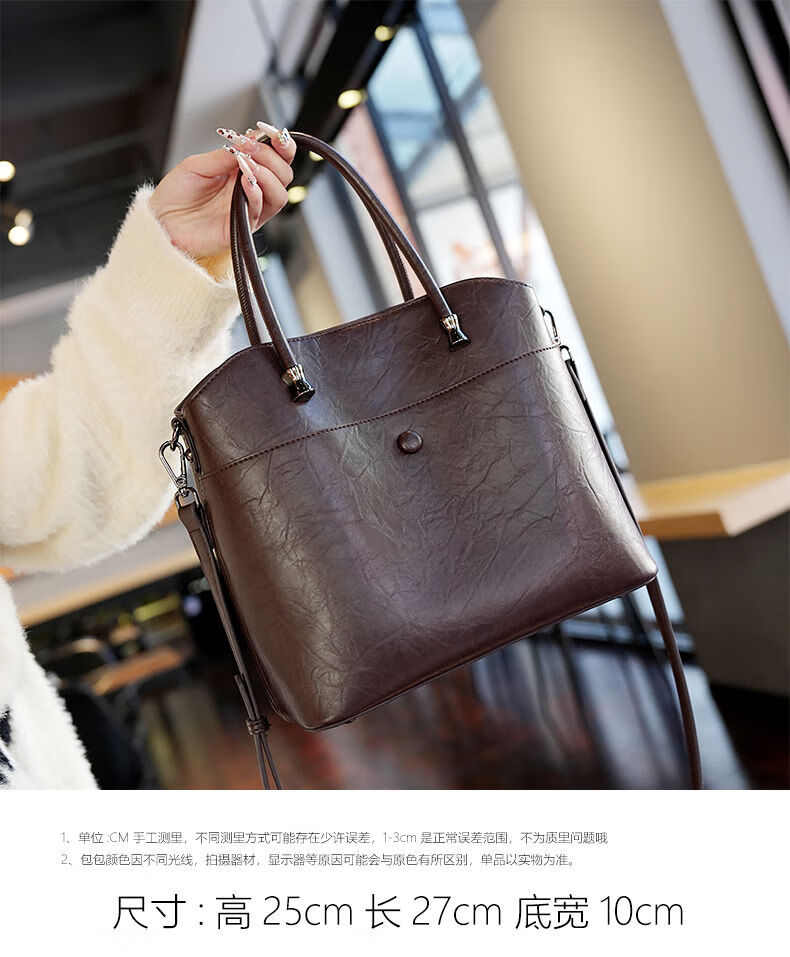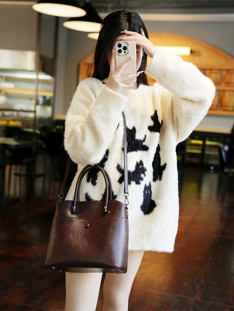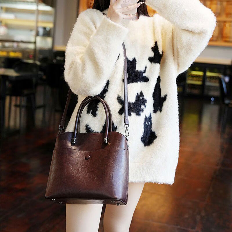 Brand bag for women 2025 new retro genuine leather bucket bag large capacity handbag commuter shoulder crossbody bag for women black