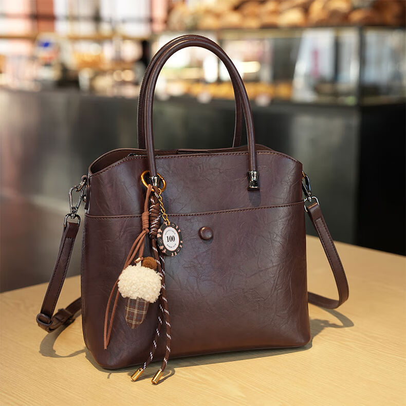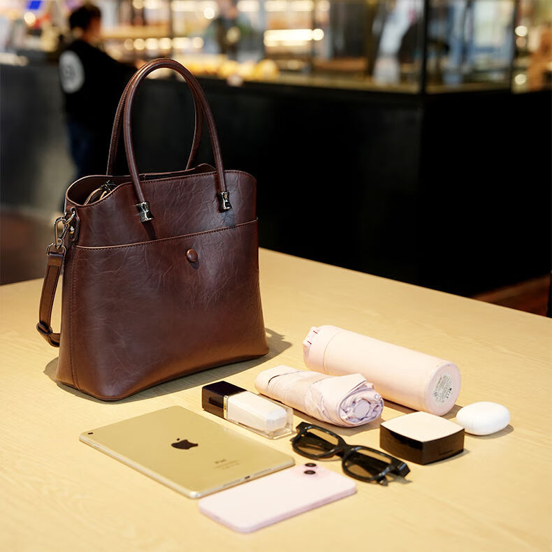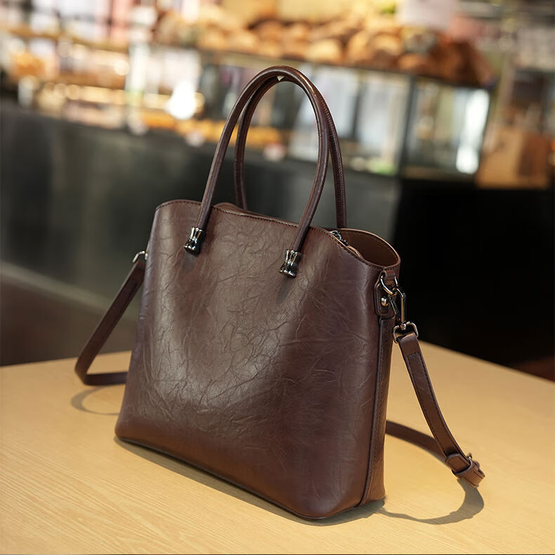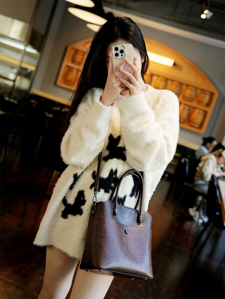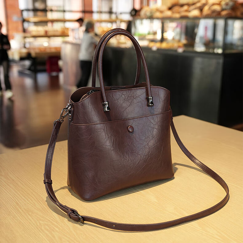 Brand bag for women 2025 new retro genuine leather bucket bag large capacity handbag commuter shoulder crossbody bag for women black