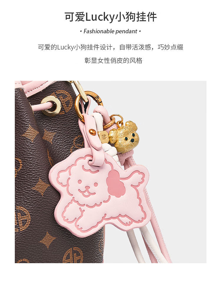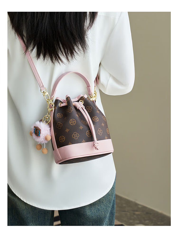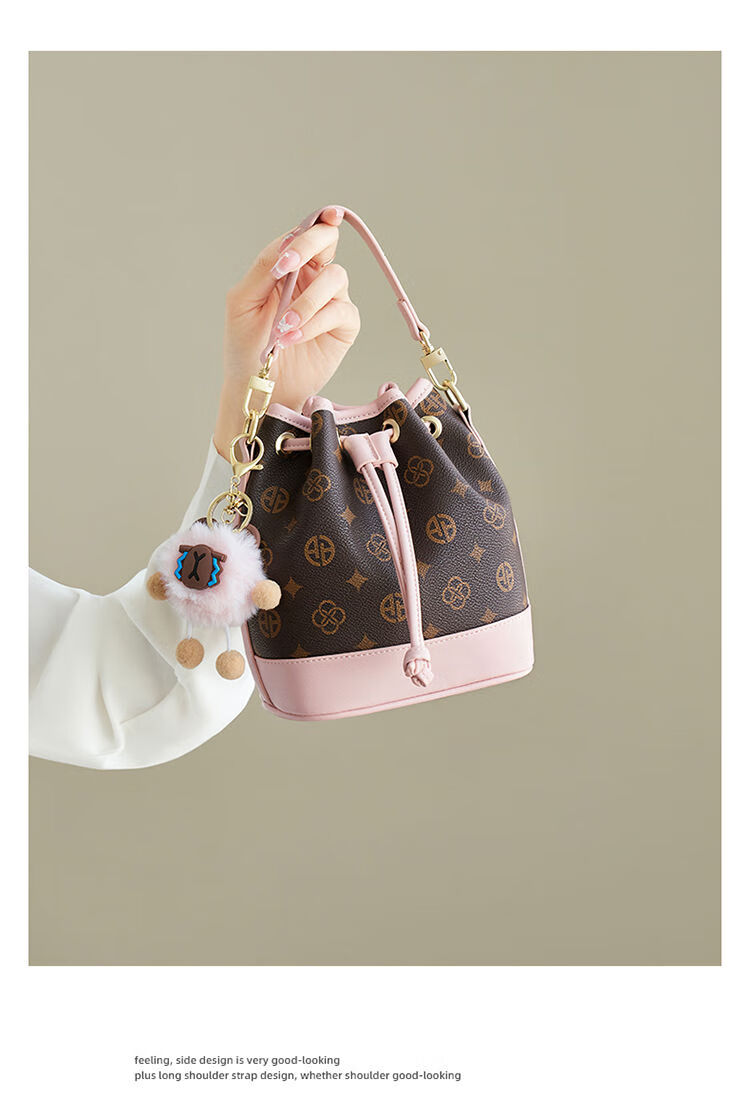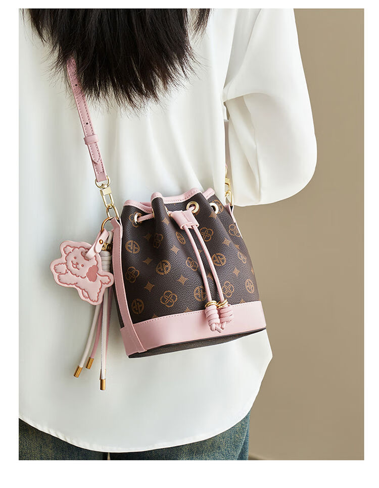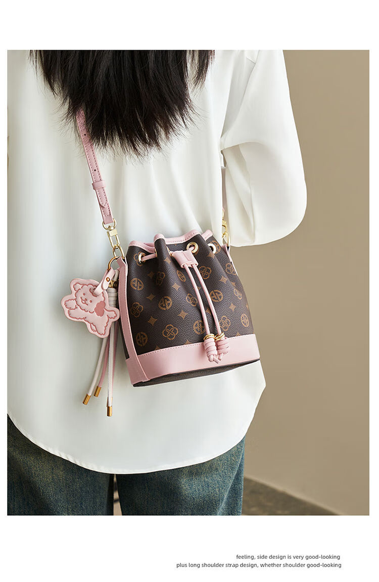 Bucket Bag 2025 New Presbyopia Commuting Bag Hand-held Small Bag Large Capacity Shoulder Bag Crossbody Bag for Women Pink Pinka Lucky Puppy Pendant