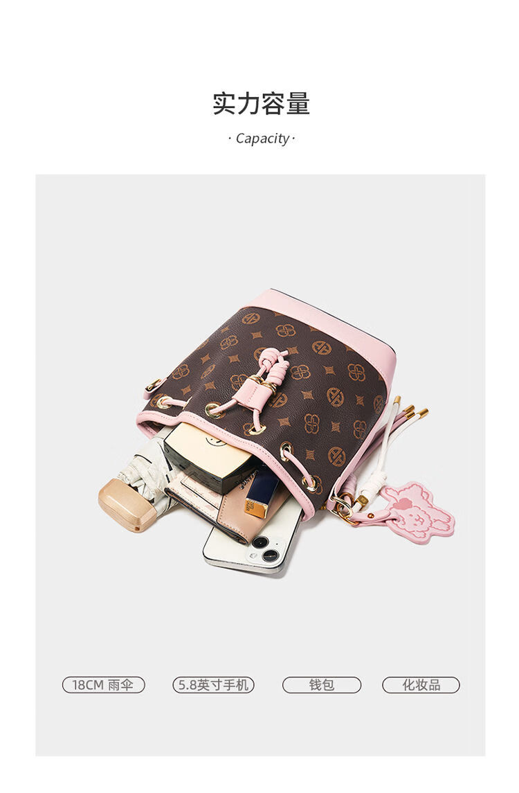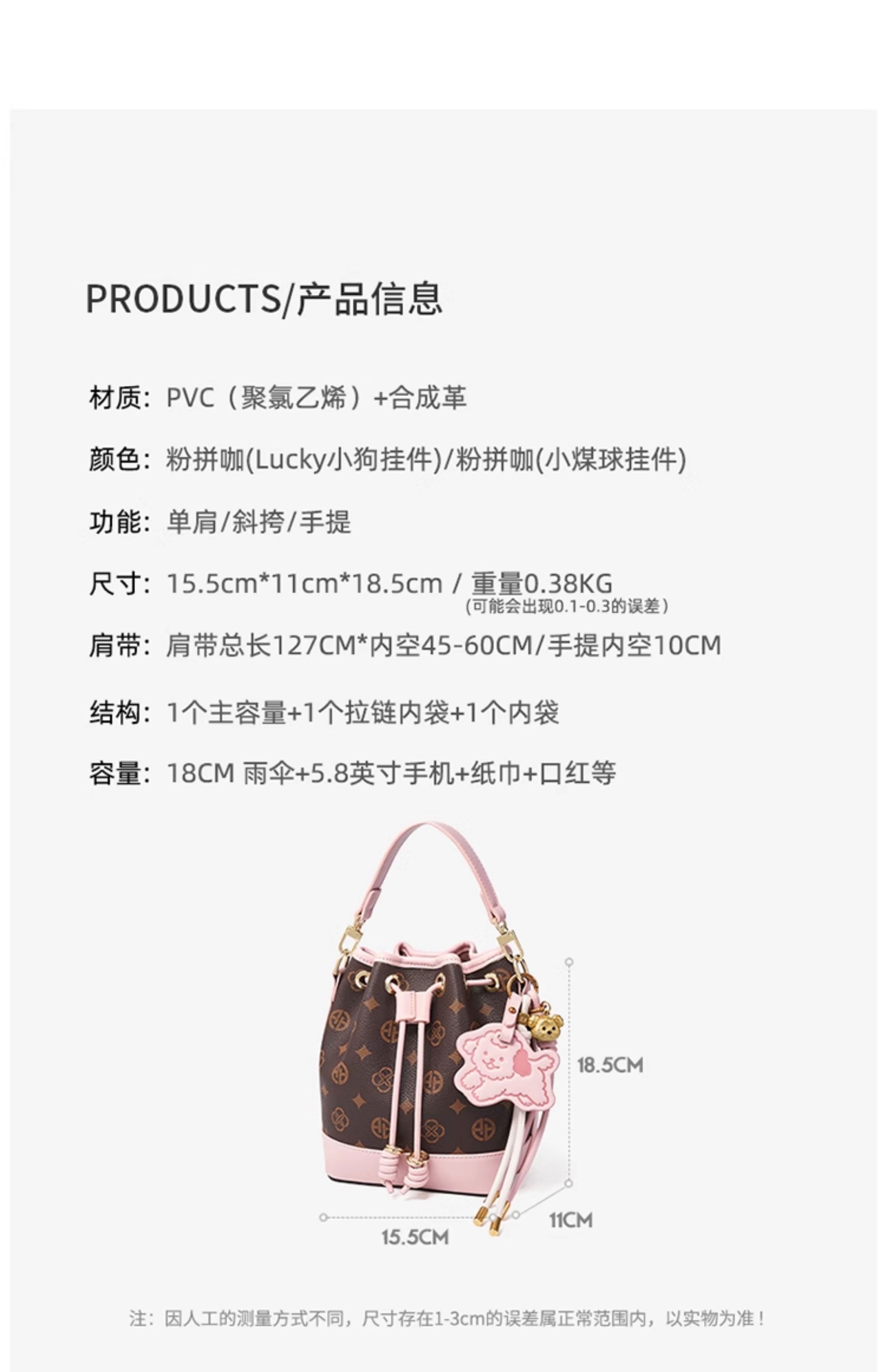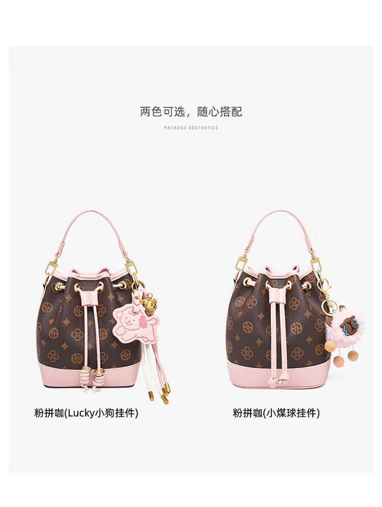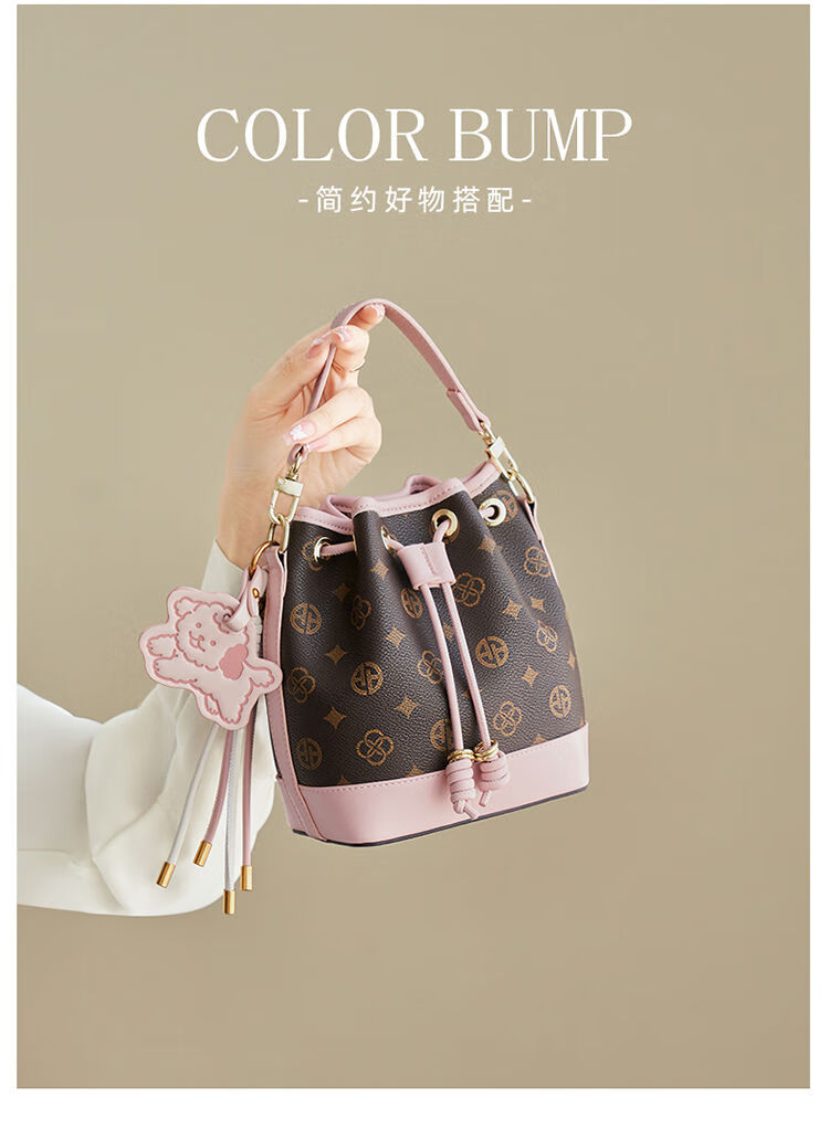 Bucket Bag 2025 New Presbyopia Commuting Bag Hand-held Small Bag Large Capacity Shoulder Bag Crossbody Bag for Women Pink Pinka Lucky Puppy Pendant