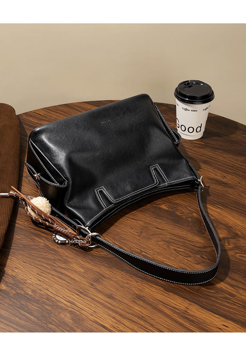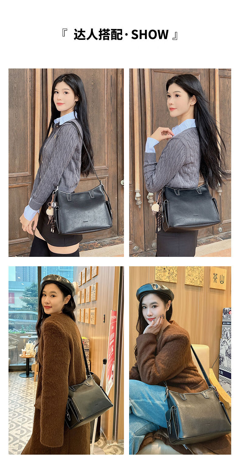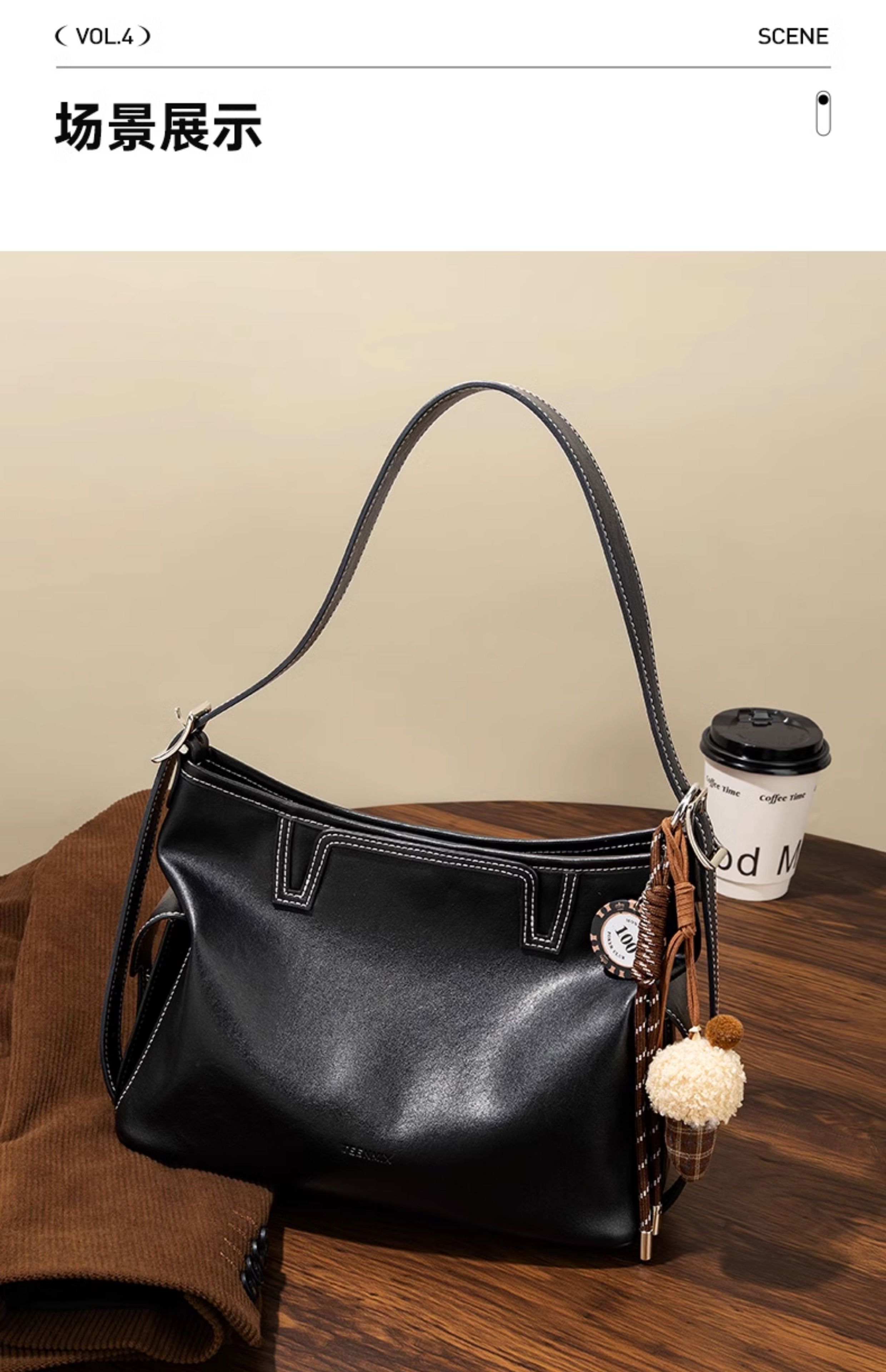 Cowhide Tote Bag for Women 2025 New Versatile Shoulder Crossbody Bag Commuting Soft Leather Large Capacity Bucket Bag Black Large 34*11*26 Points 5cm