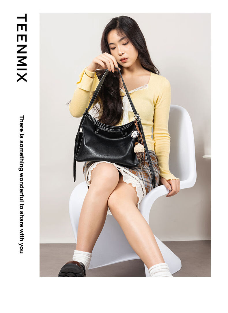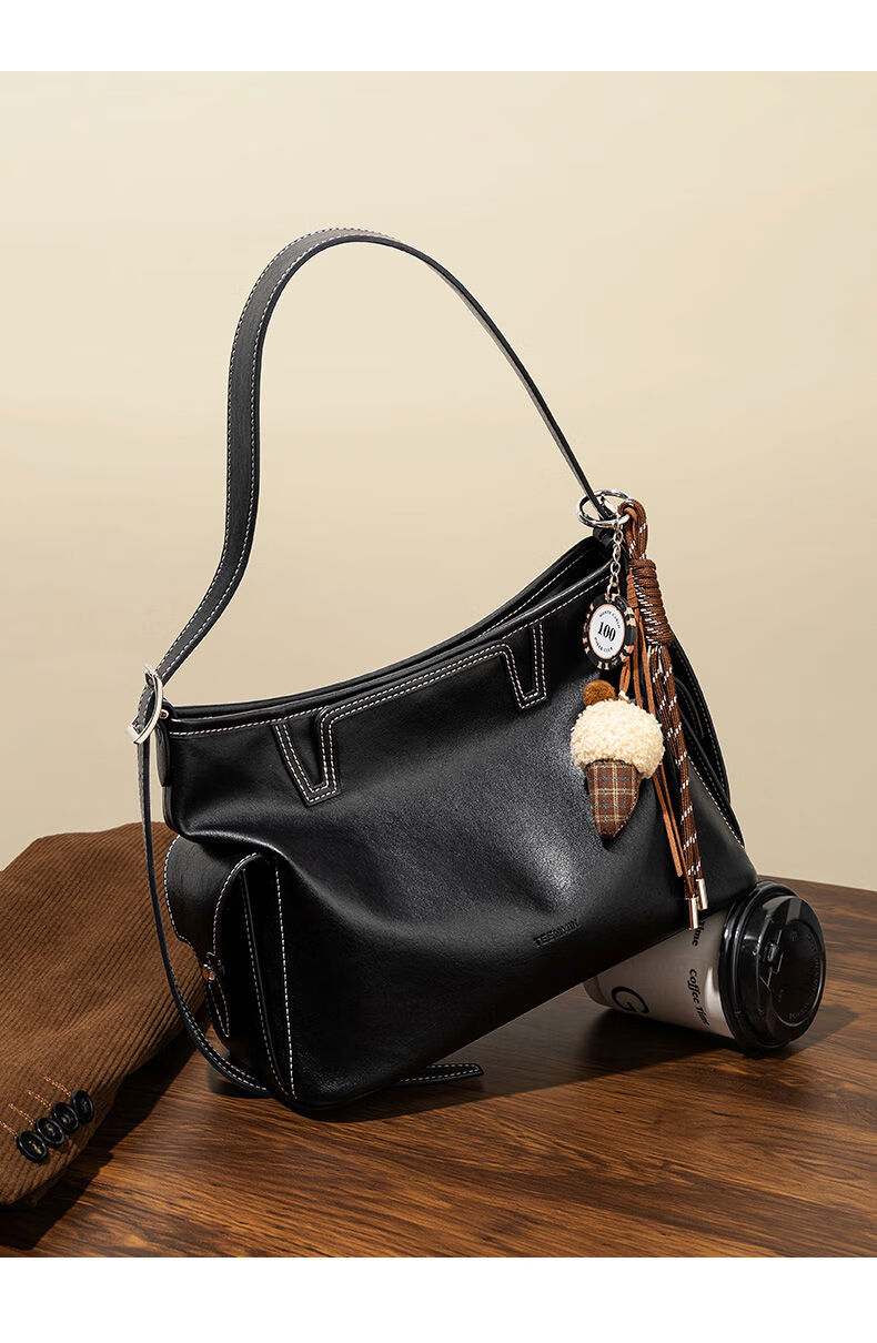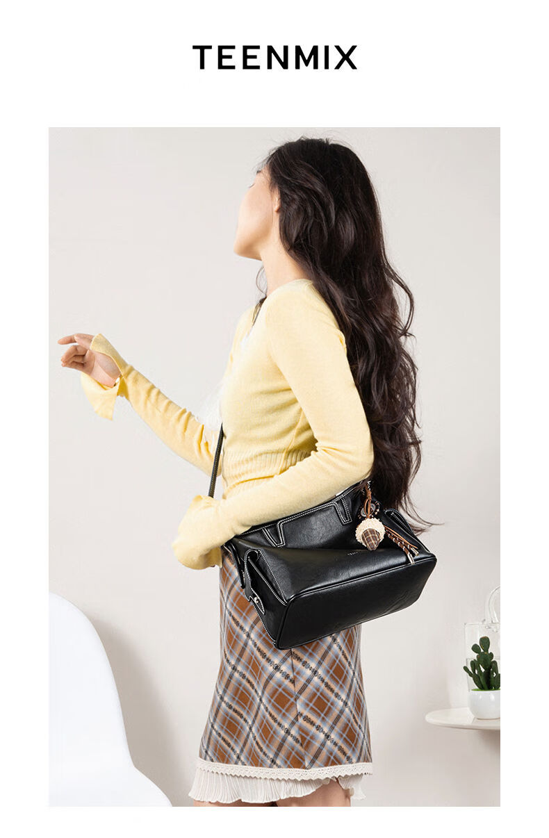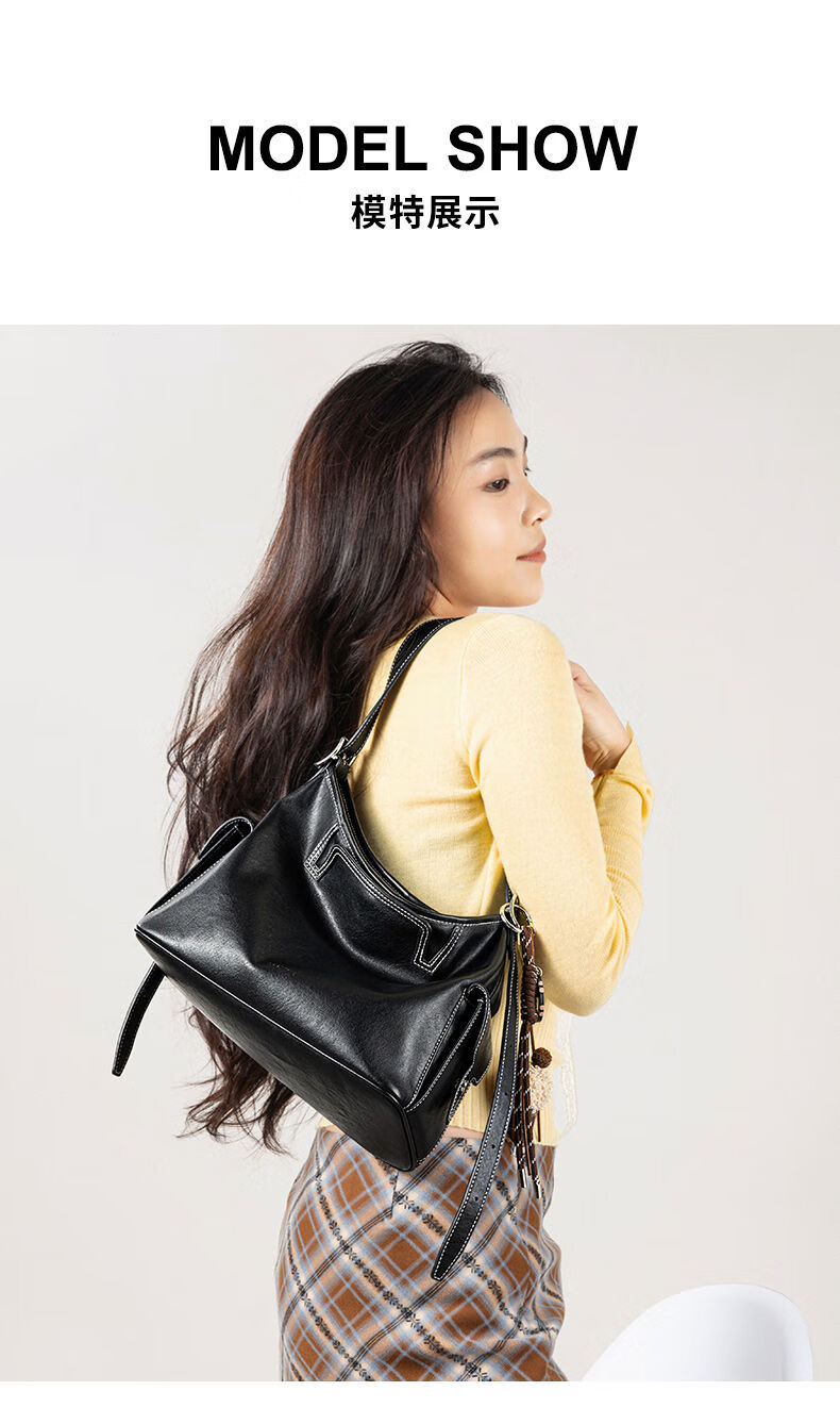 Cowhide Tote Bag for Women 2025 New Versatile Shoulder Crossbody Bag Commuting Soft Leather Large Capacity Bucket Bag Black Large 34*11*26 Points 5cm