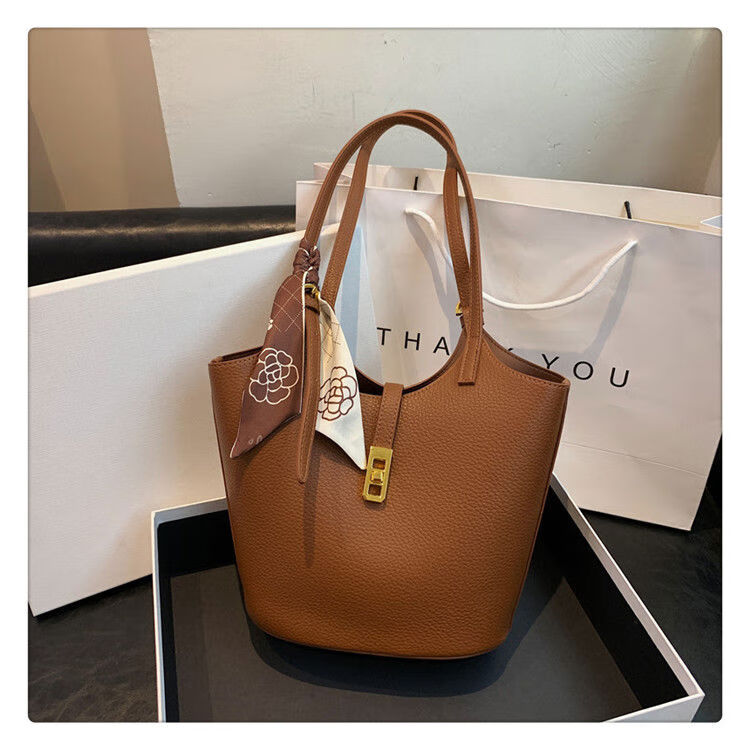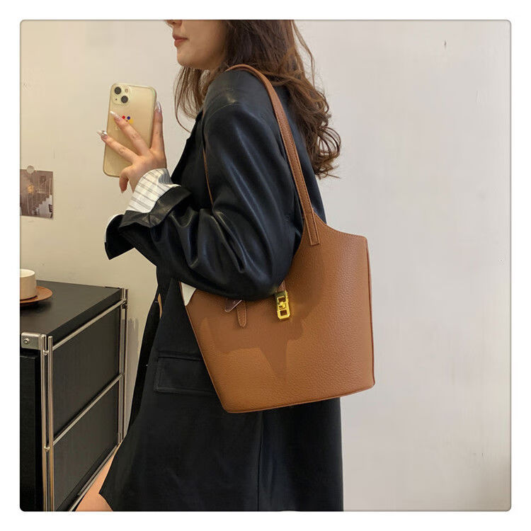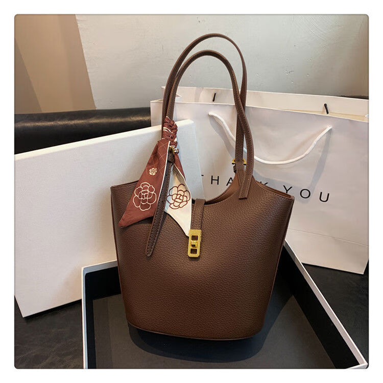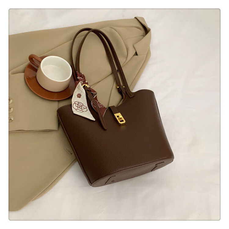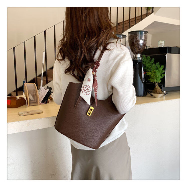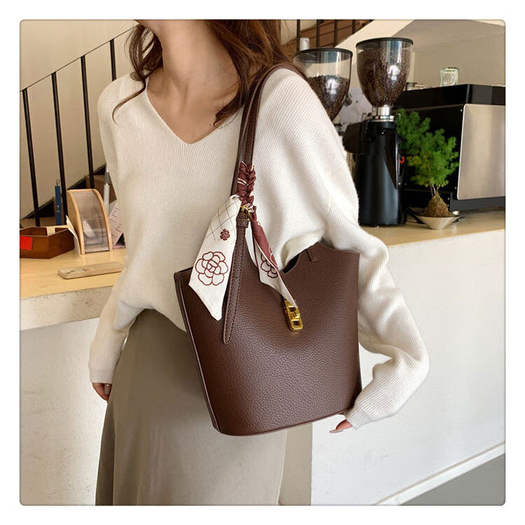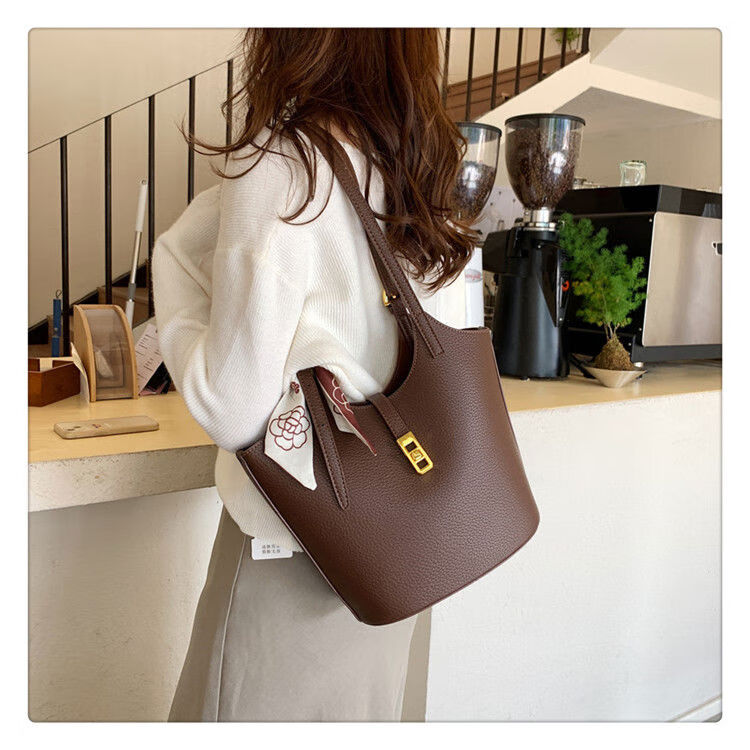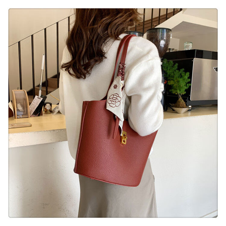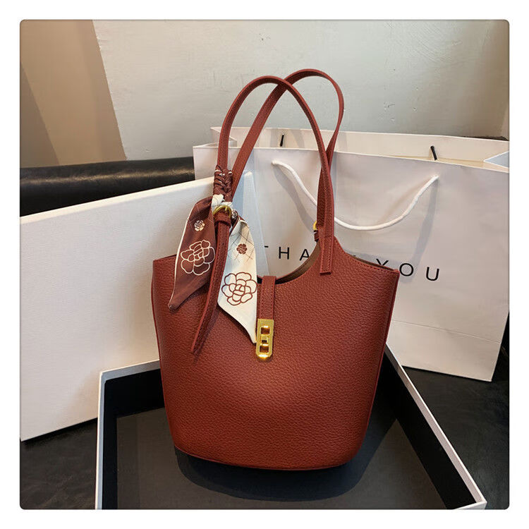 Red wedding bag for women 2024 new style single shoulder underarm bucket bag, fashionable wedding bridal bag, daily use, coffee color