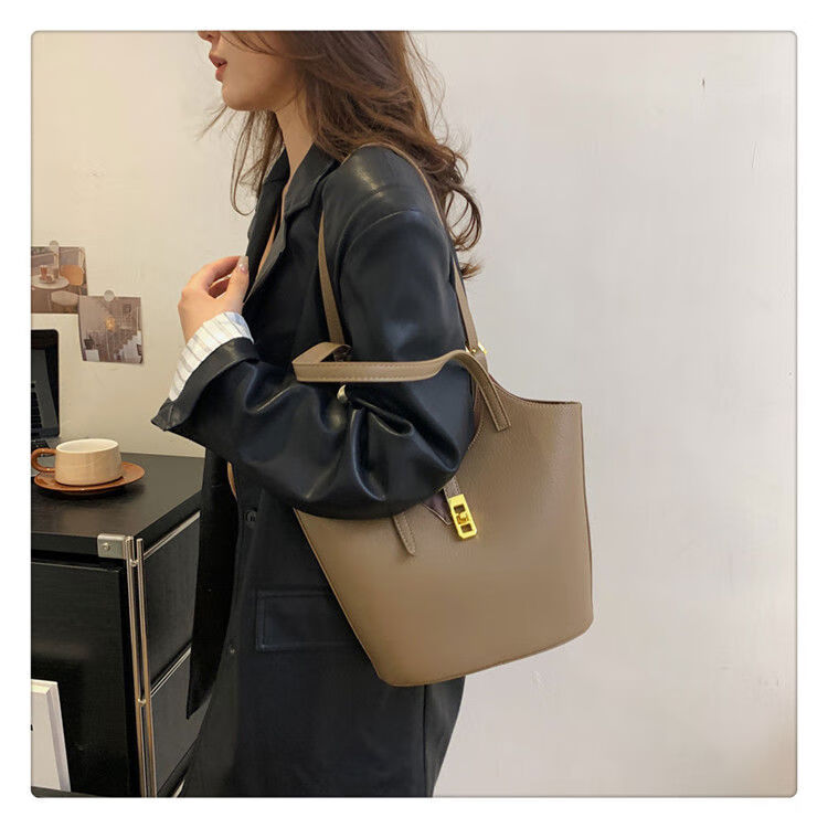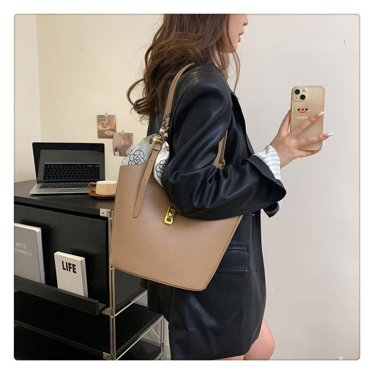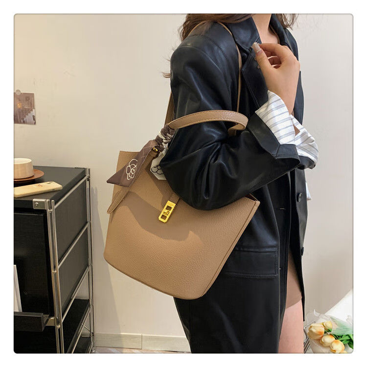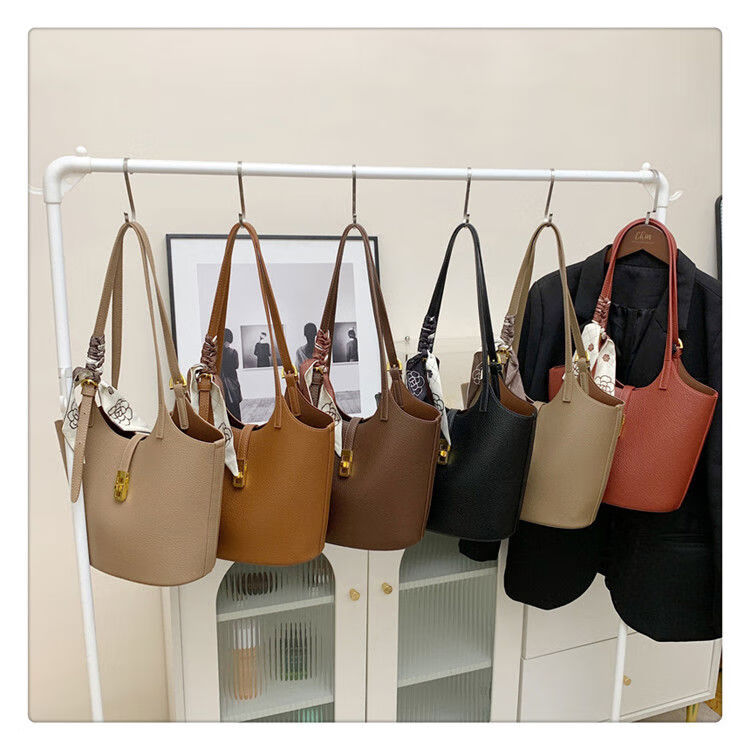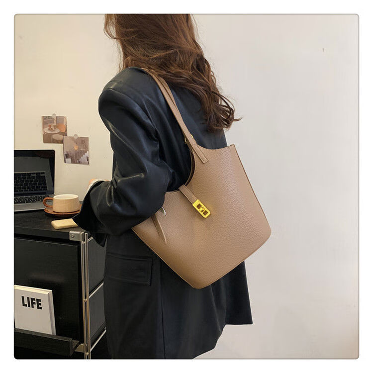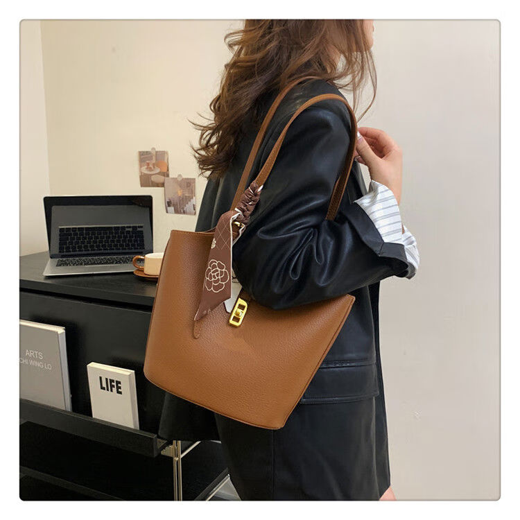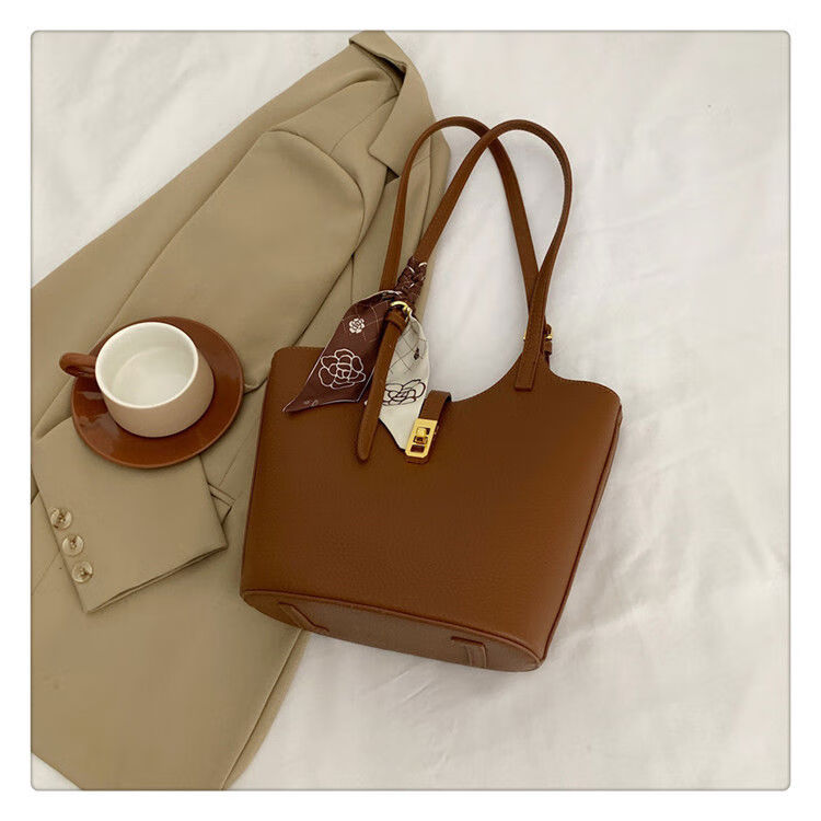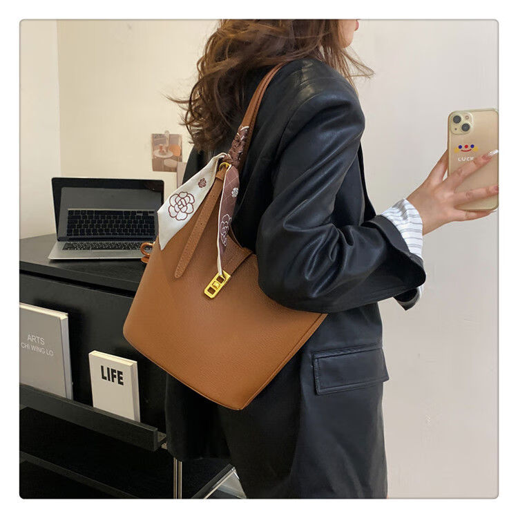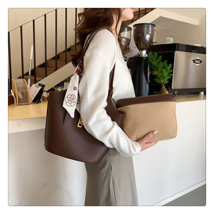 Red wedding bag for women 2024 new style single shoulder underarm bucket bag, fashionable wedding bridal bag, daily use, coffee color
