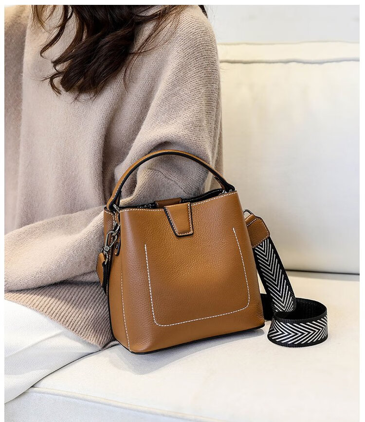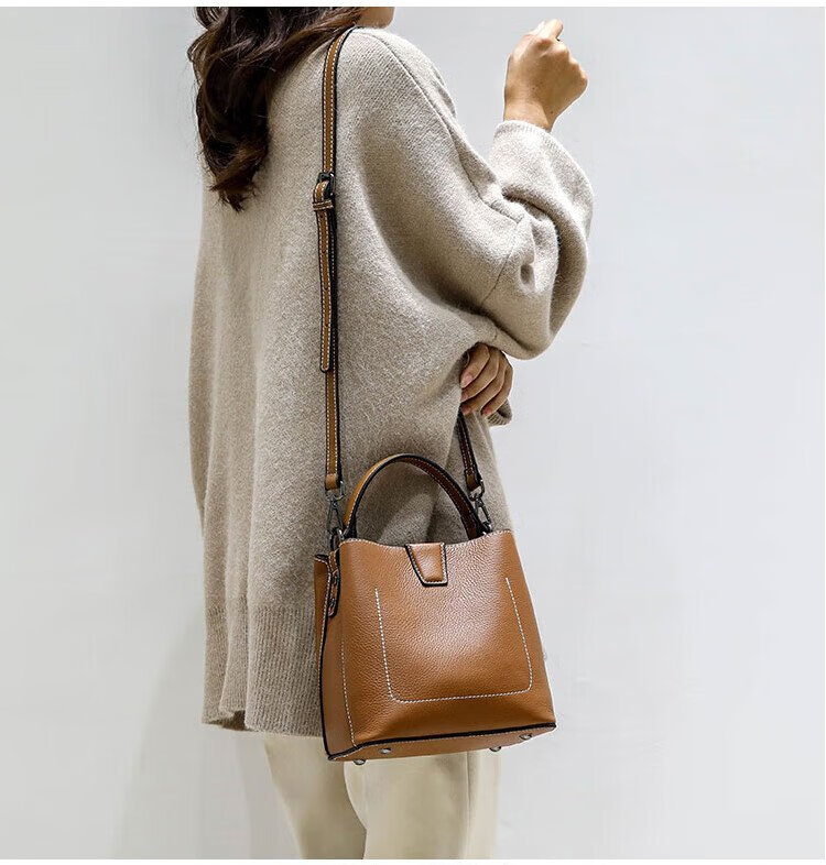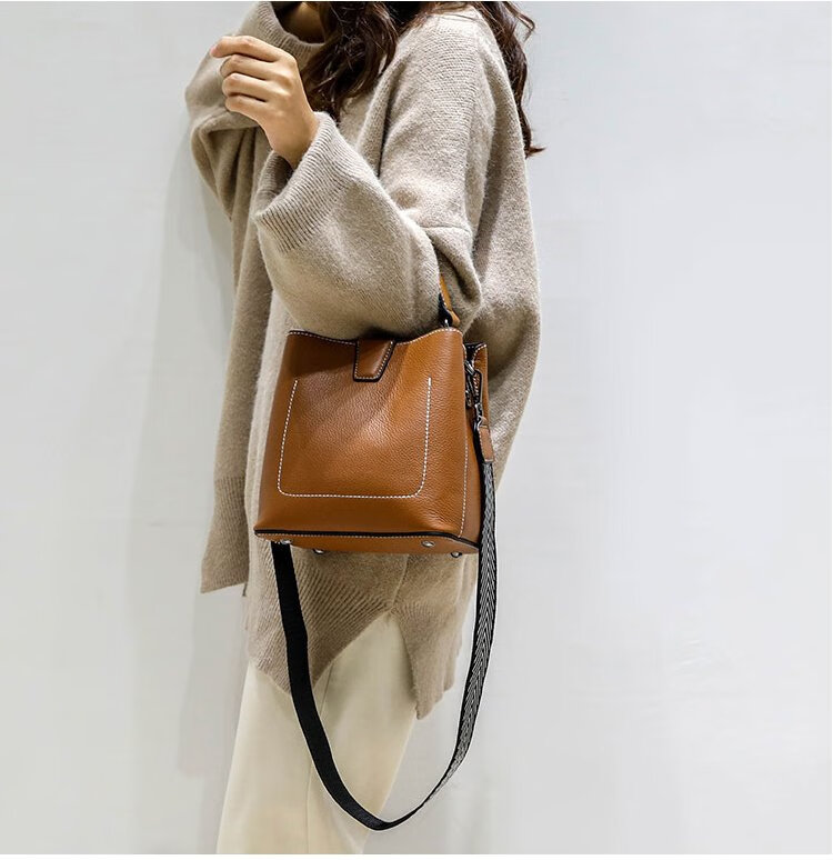 Viney bag women's bag cowhide bucket bag light luxury crossbody shoulder handbag birthday gift high-end gift to girlfriend and wife