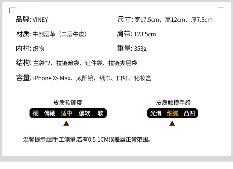 Viney bag women's leather crossbody bag brand western style shoulder mobile phone bag birthday gift high-end gift to girlfriend and wife