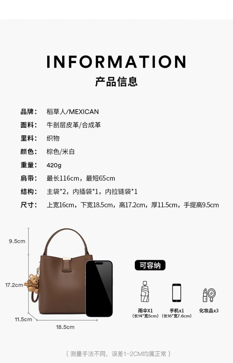 Scarecrow bag for women 2025 new cowhide leather shoulder crossbody bucket bag light luxury high-end birthday gift for girlfriend and wife