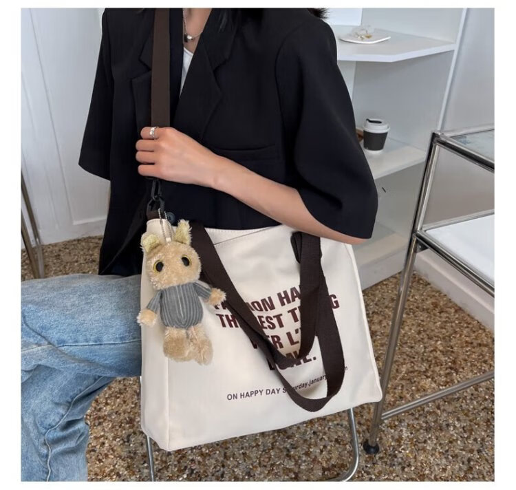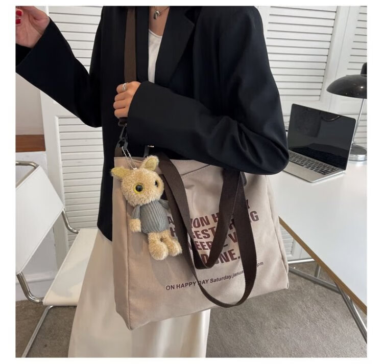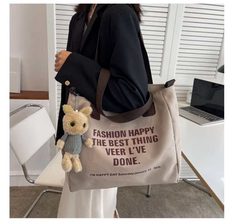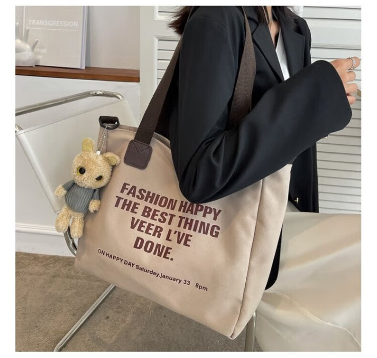Pull back tote bag, women's large-capacity college student shoulder bag, new crossbody bag, versatile handbag, class travel shoulder bag