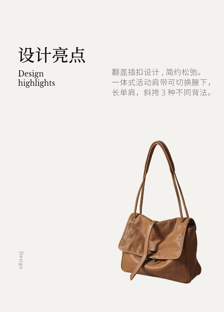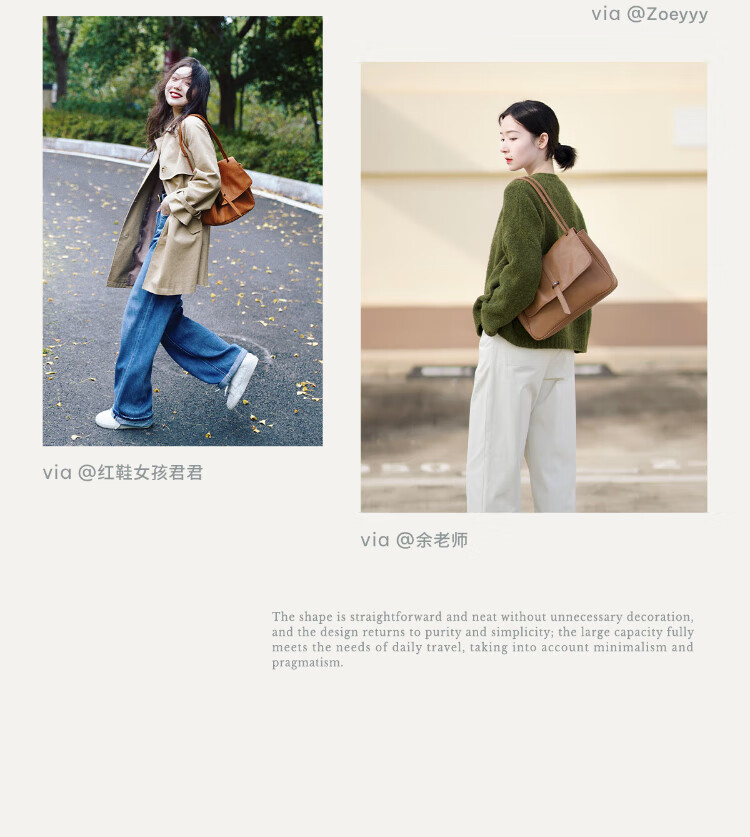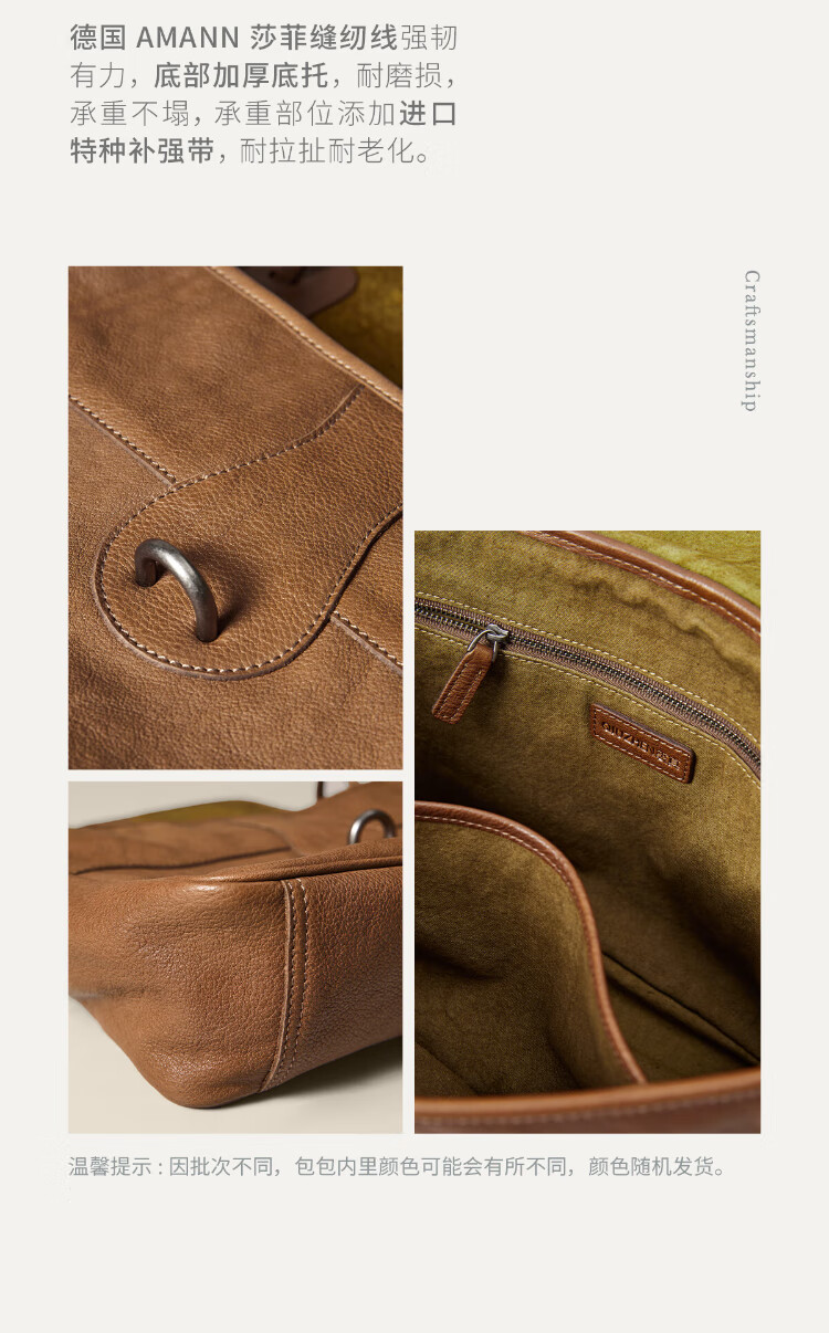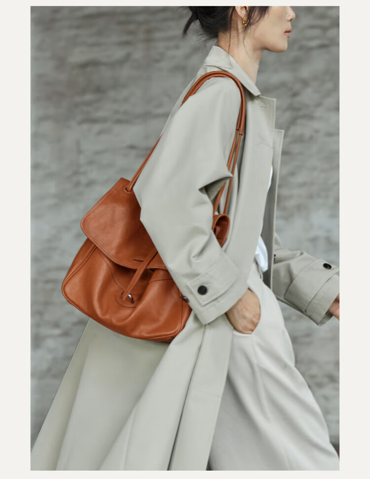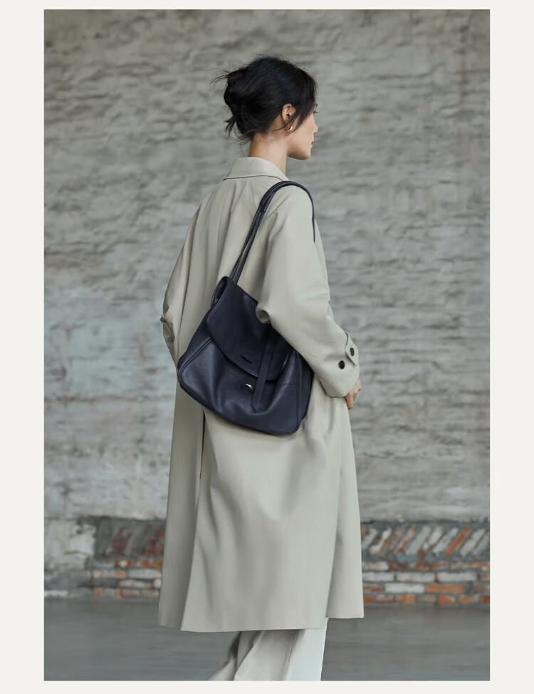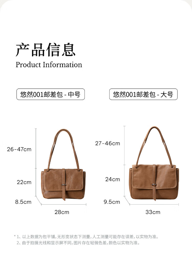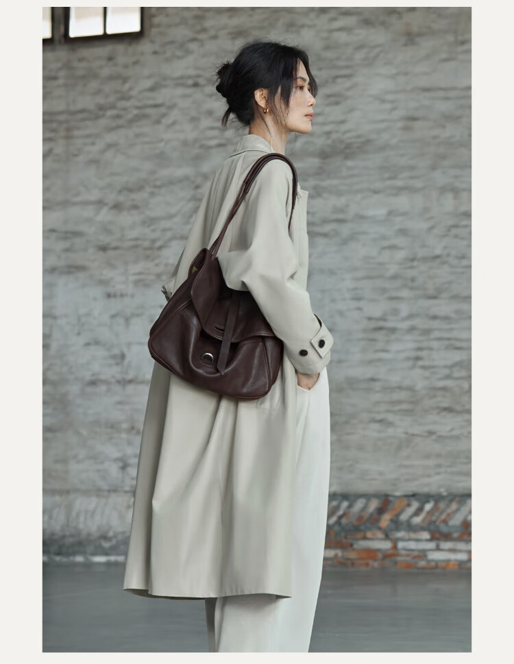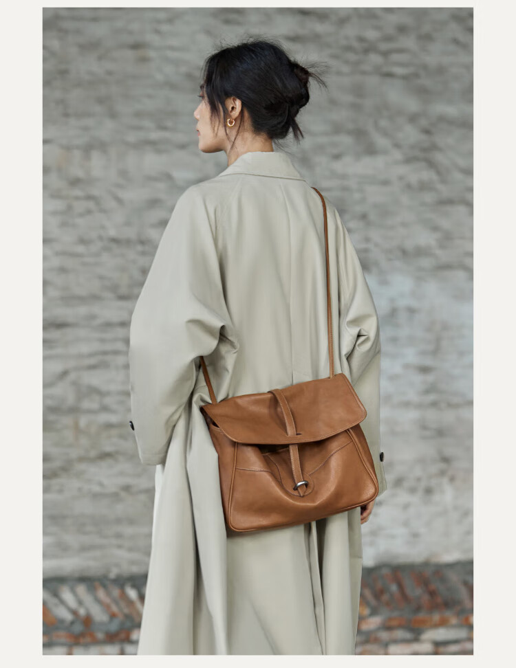 Qiu Zhen Retro 001 Messenger Bag Women's Shoulder Commuting Large Capacity Crossbody Bag Vegetable Tanned First Layer Cowhide Bag Elephant Gray-Medium
