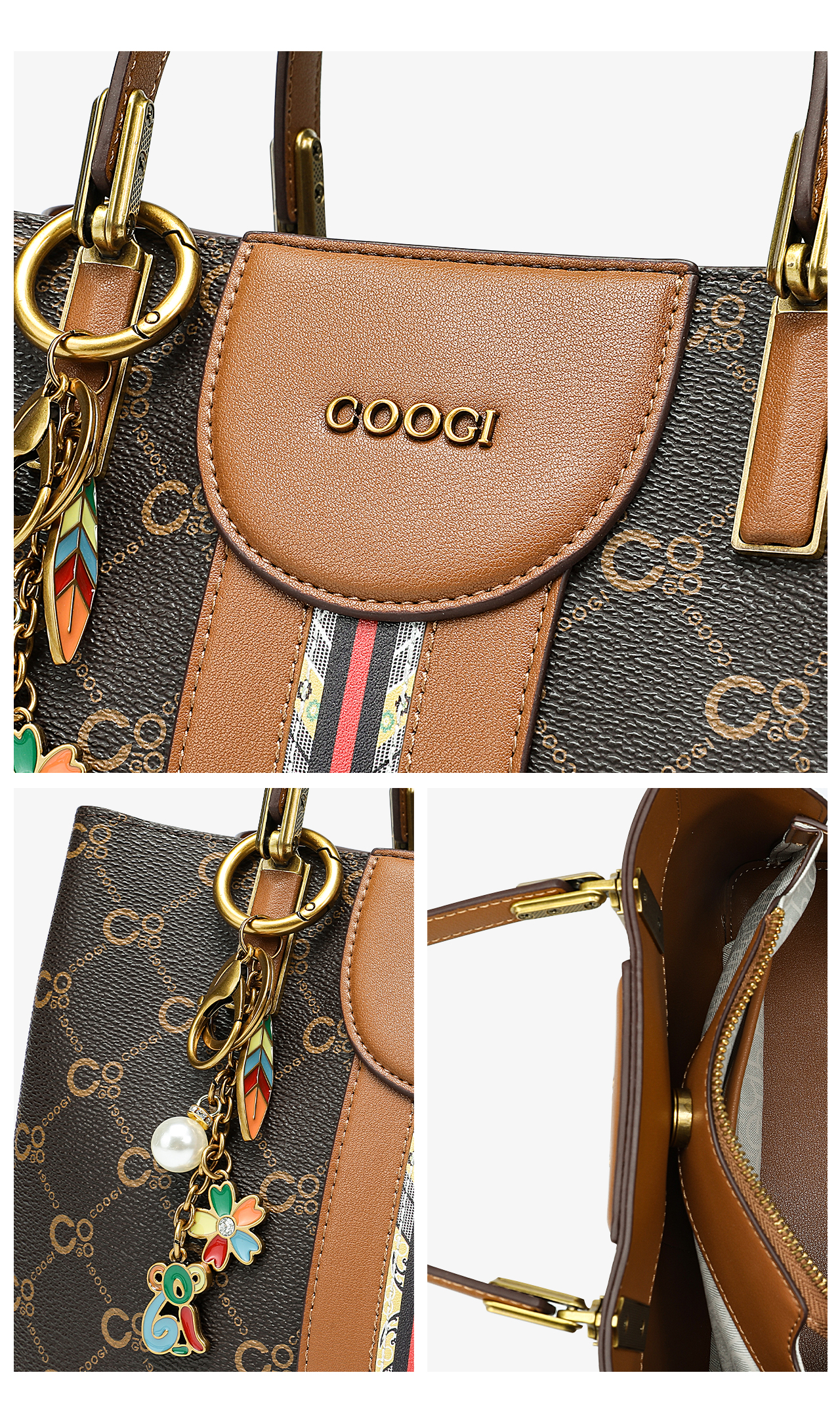 COOGI bag women's bag light luxury brand portable tote bag women's crossbody bag Valentine's Day birthday gift for girlfriend and wife brown