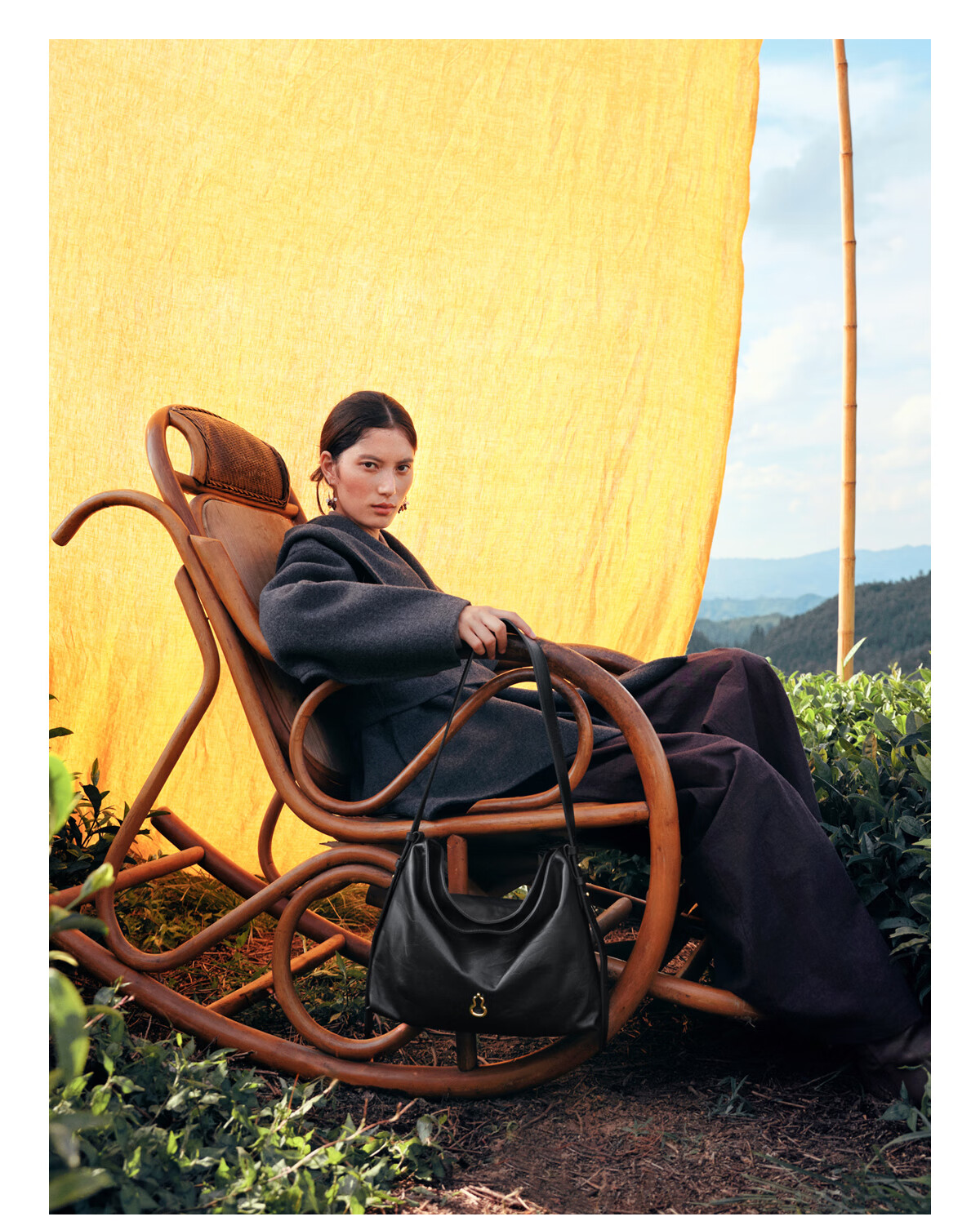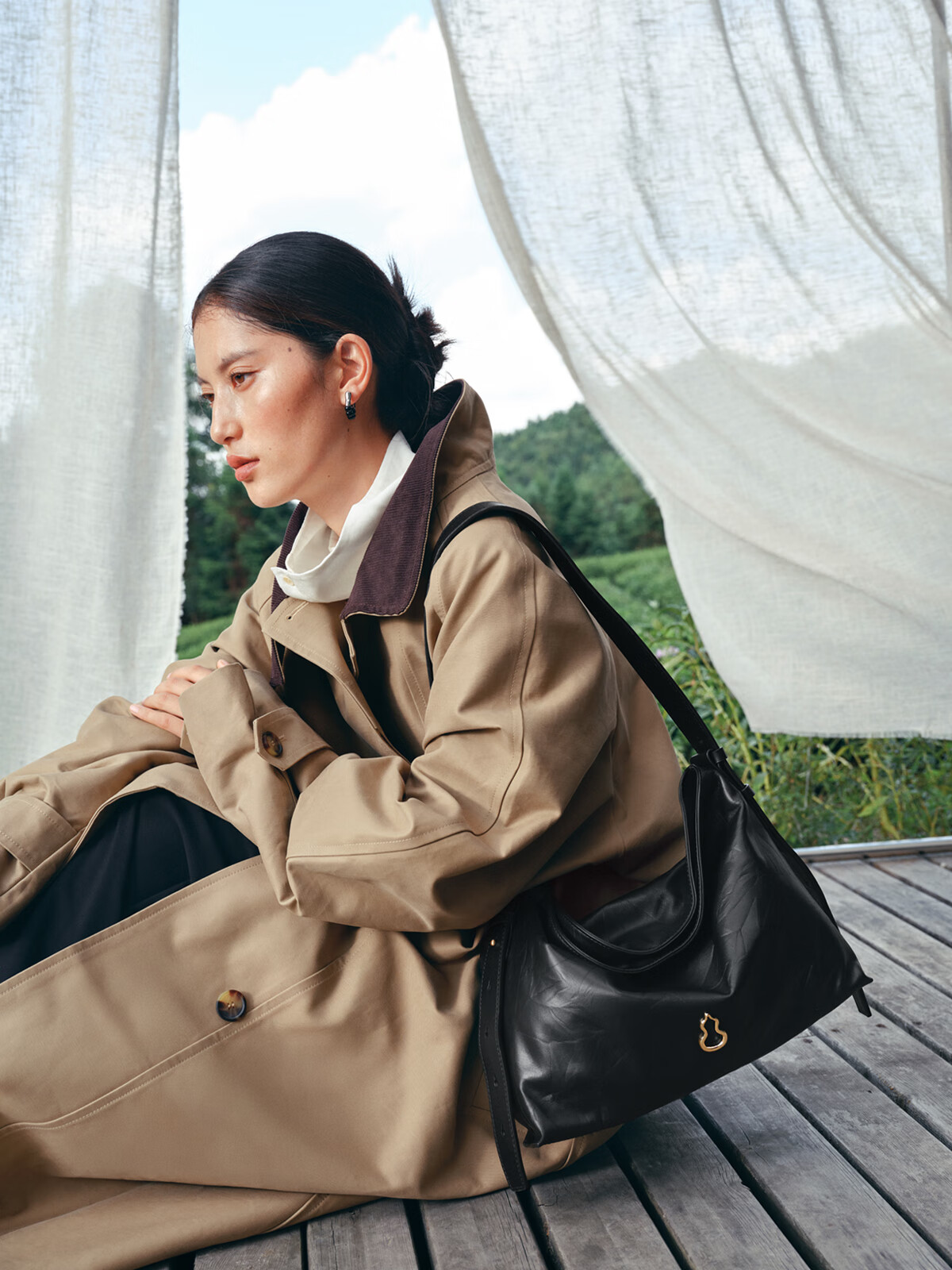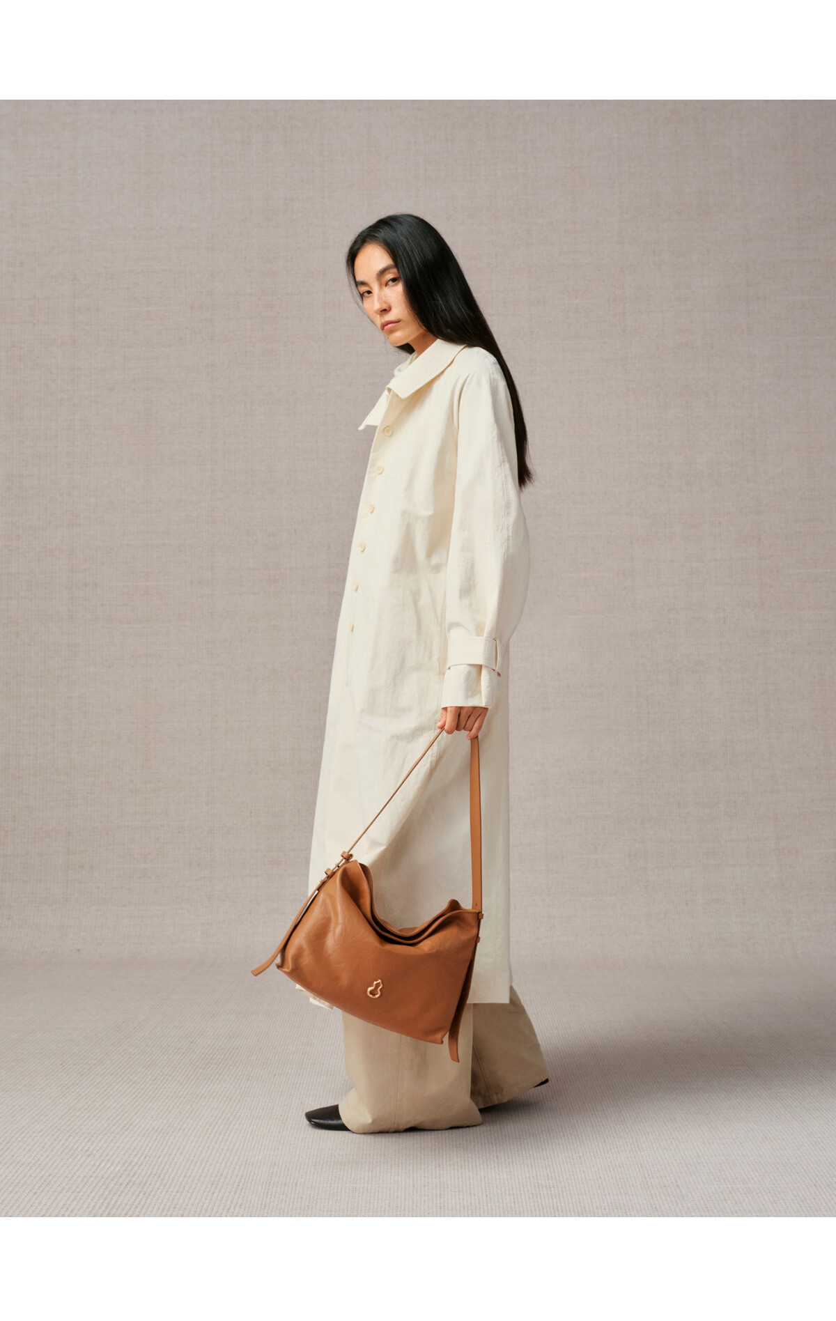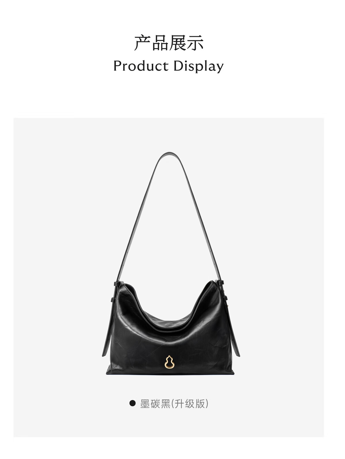 Banpo Decoration Family (bampo) medium cotton bag hobo tote bag first layer cowhide large capacity shoulder crossbody bag soft bag gift girlfriend ink black (medium upgraded zipper version)