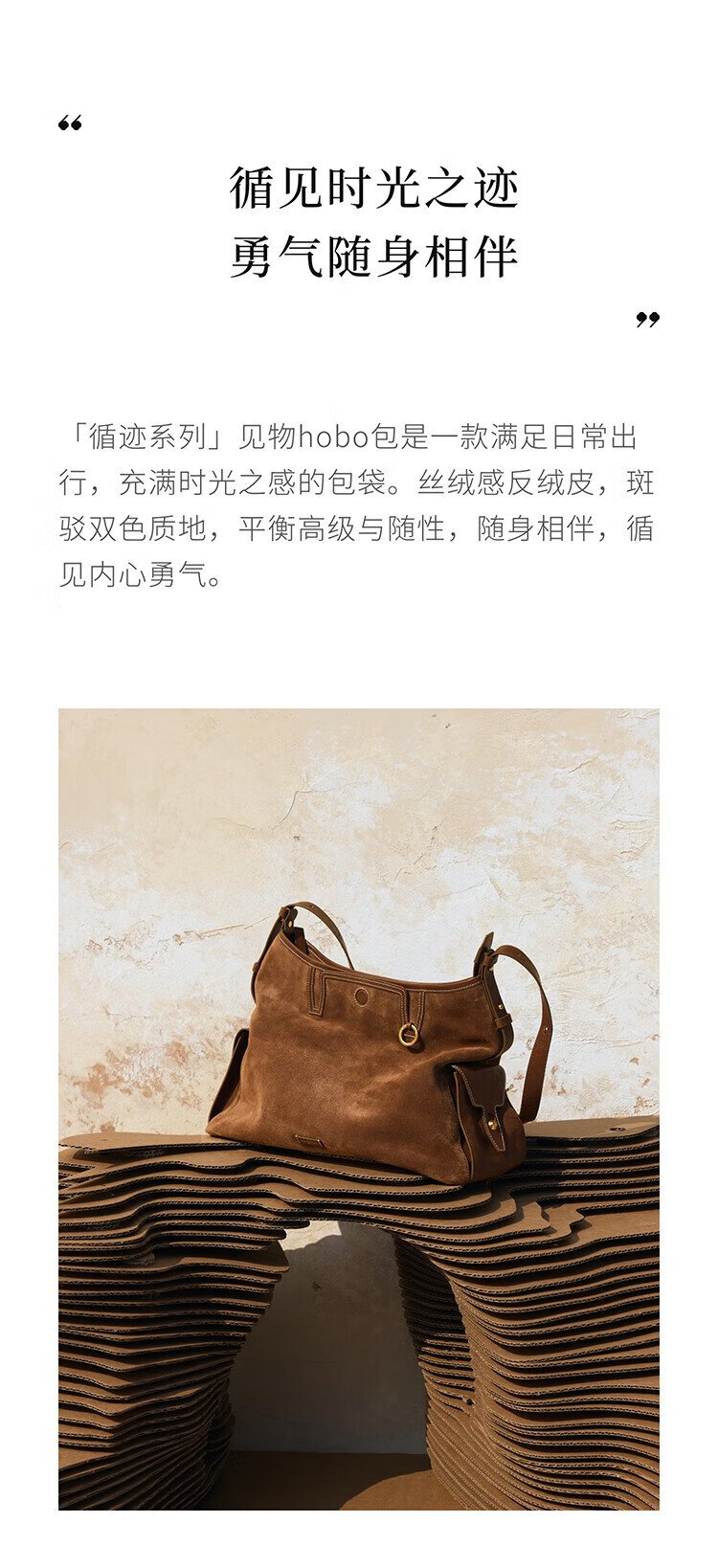 Songmont Yamashita Arimatsu Trace Series Hobo Bag Suede Shoulder Crossbody Large Capacity Commuting Women's Bag Tan Brown Medium Size Pre-sale 15 Days