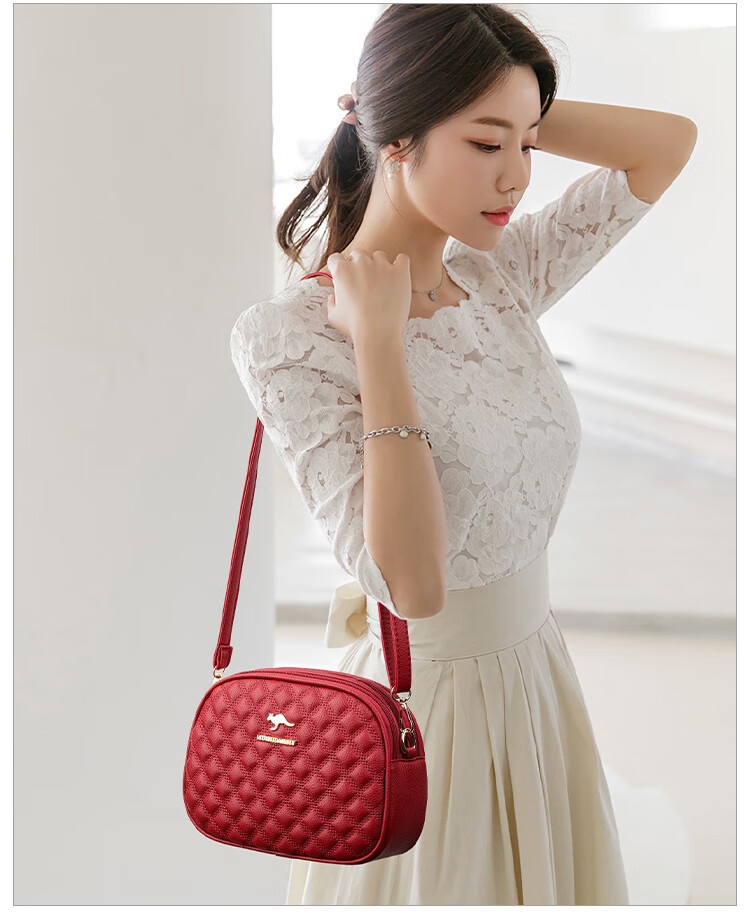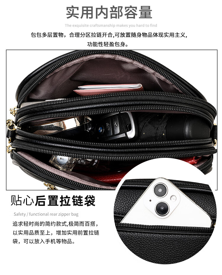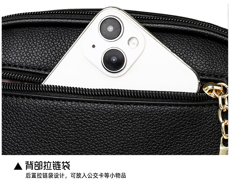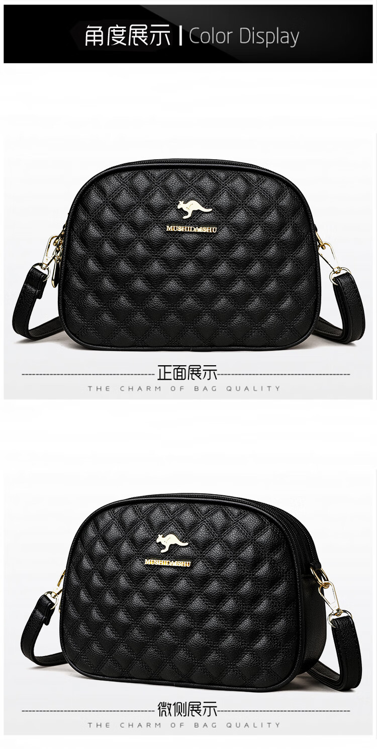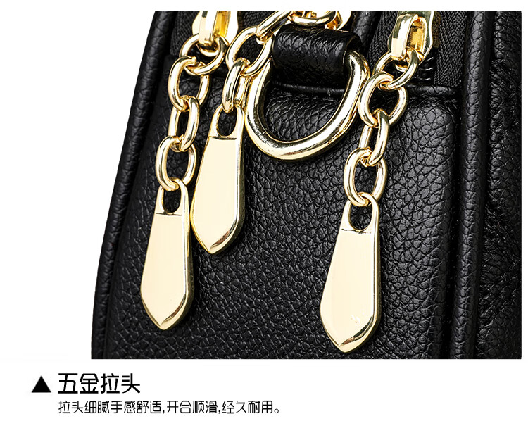 Soft leather three-layer middle-aged mother embroidery small round bag for women 2025 new fashion versatile diamond shoulder crossbody bag black