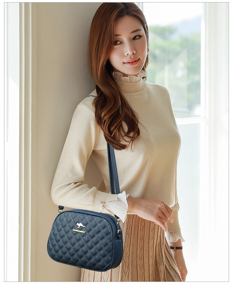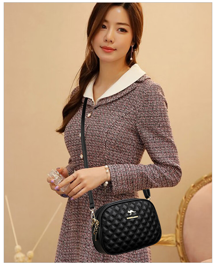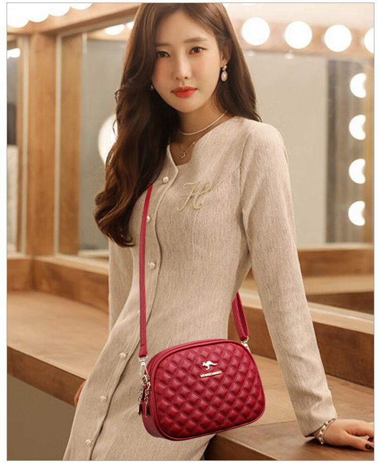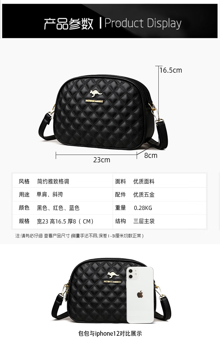 Soft leather three-layer middle-aged mother embroidery small round bag for women 2025 new fashion versatile diamond shoulder crossbody bag black