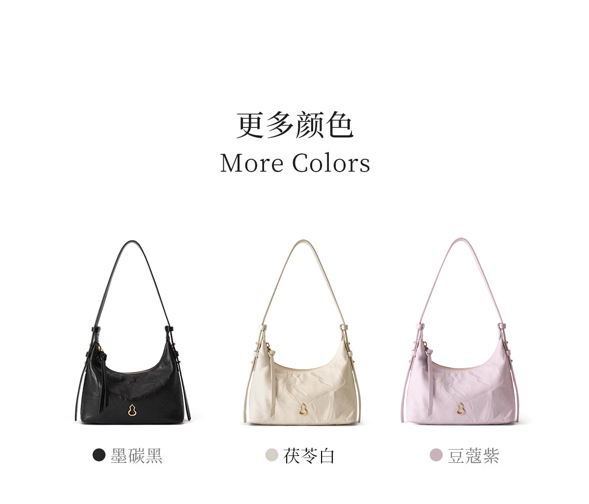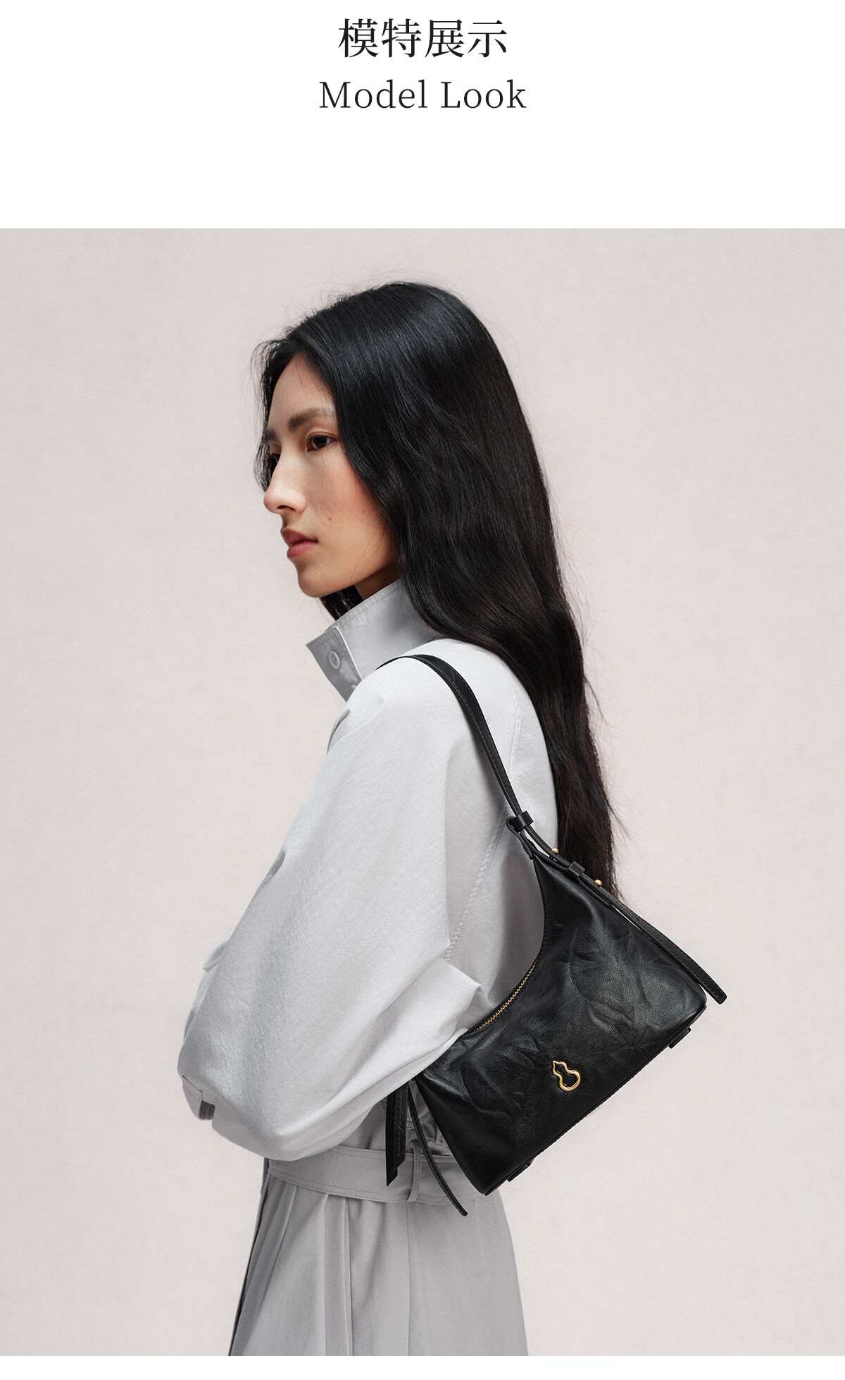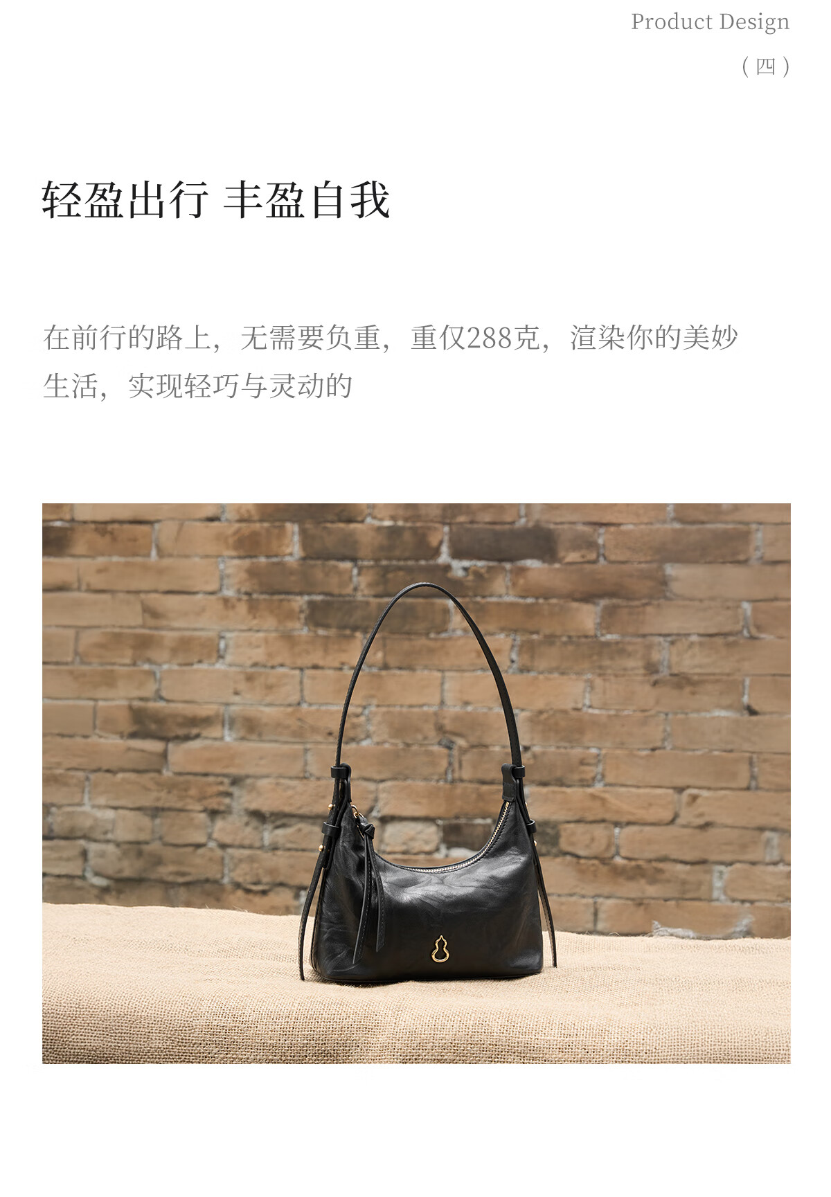 Bampo Jinyuan bag, first-layer cowhide HOBO bag, 2025 new textured soft leather cross-body armpit bag, shoulder bag, black carbon 930
