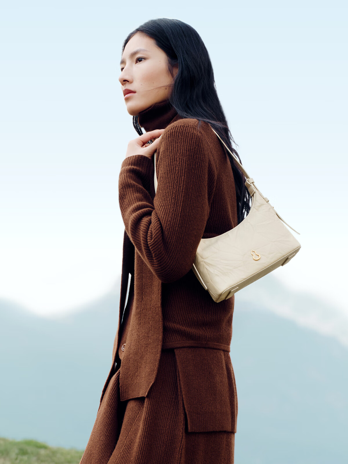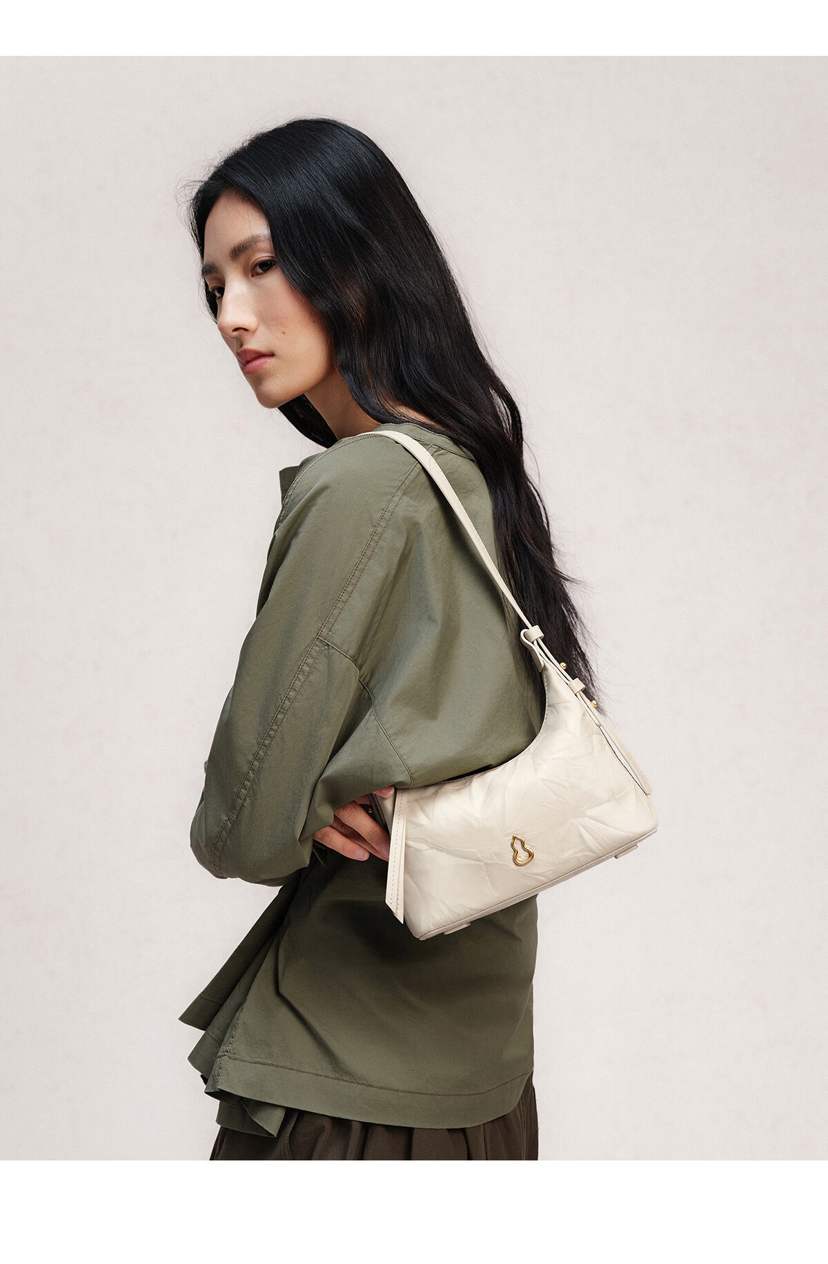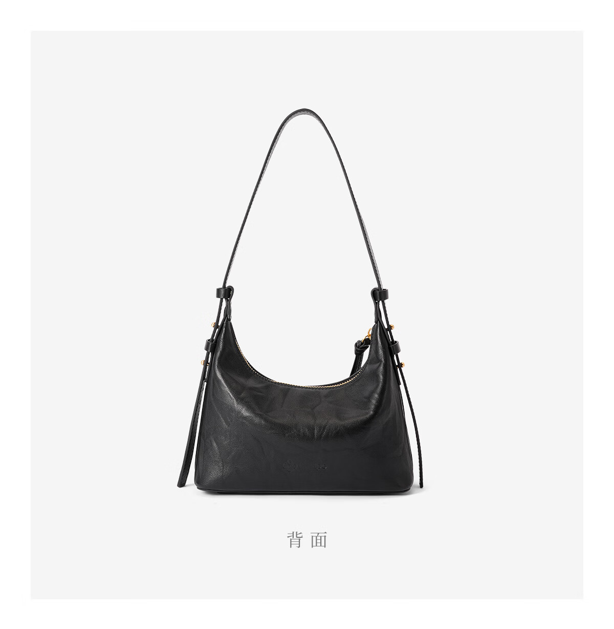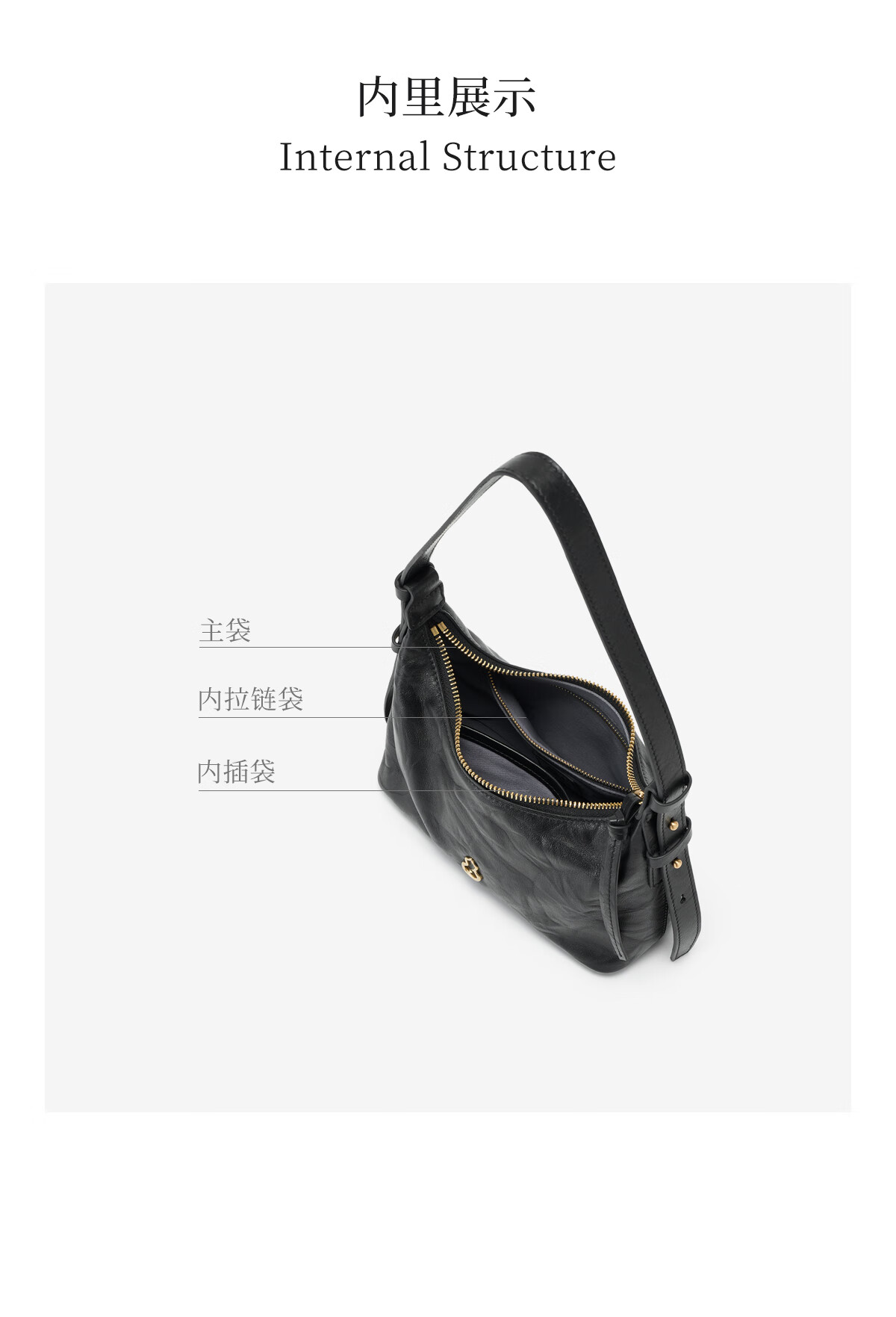 Bampo Jinyuan bag, first-layer cowhide HOBO bag, 2025 new textured soft leather cross-body armpit bag, shoulder bag, black carbon 930