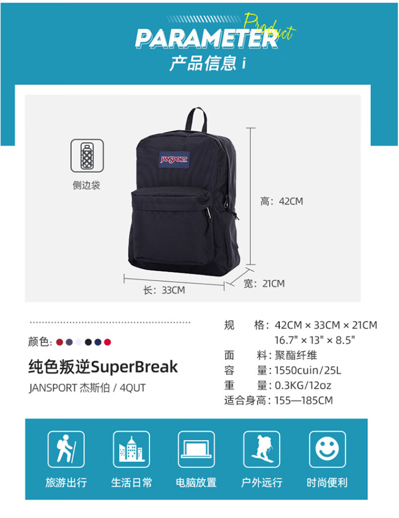 JANSPORT Jasper Backpack Women's Middle School and High School School Bag Men's Mint Butterfly Backpack Trendy Star Style