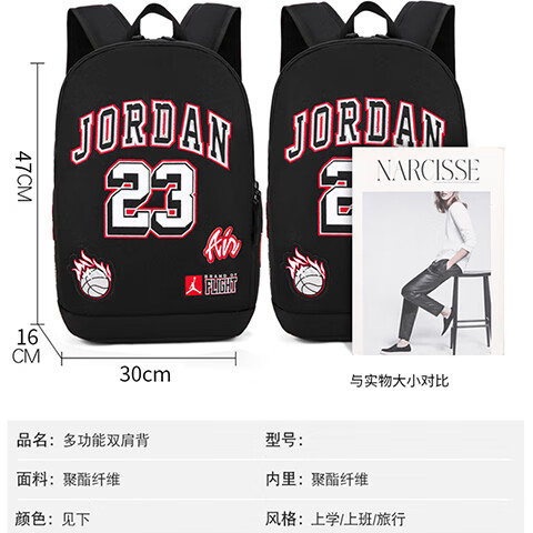 NBA VIBE Flyers Classic No. 23 Embroidery Student Middle and High School College Bag Sports AJ Backpack Large Capacity American Basket Camouflage Gray