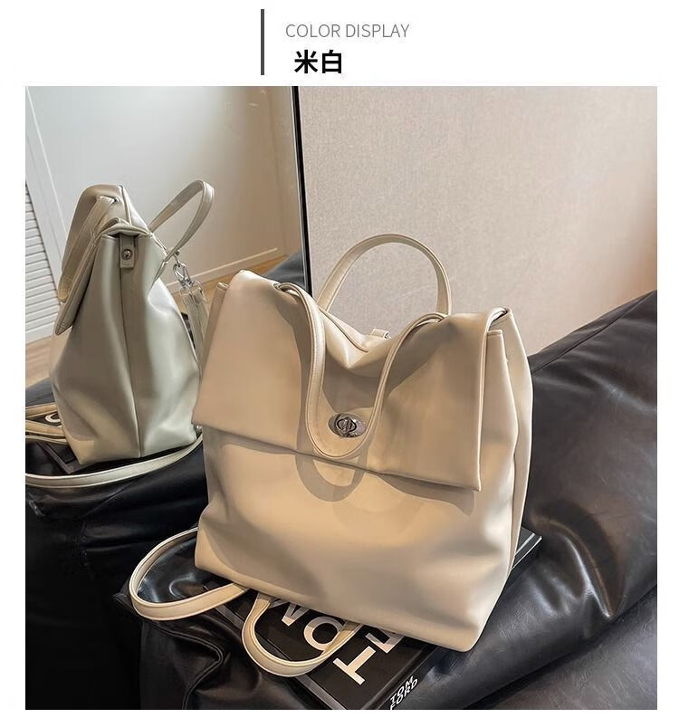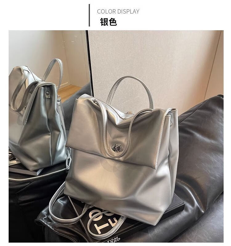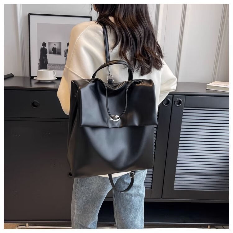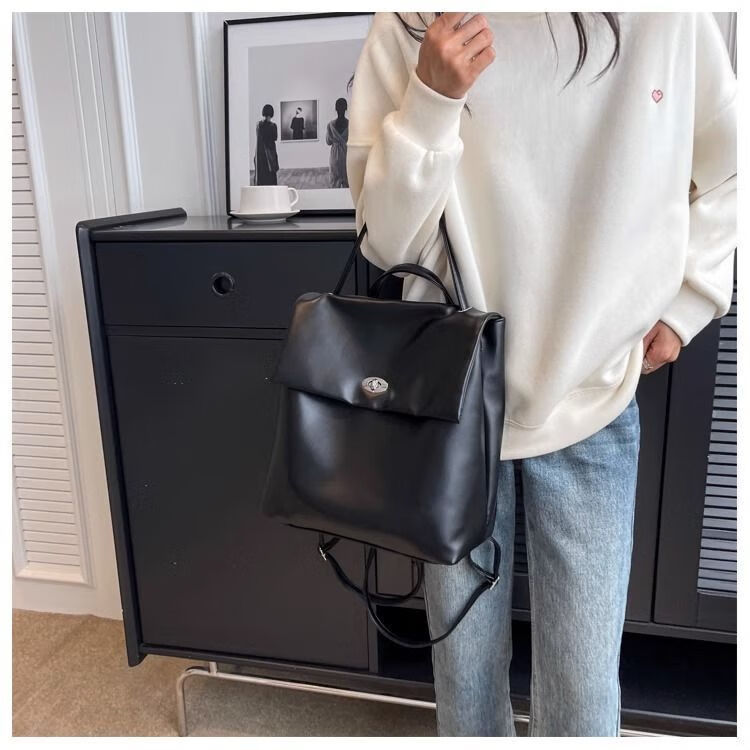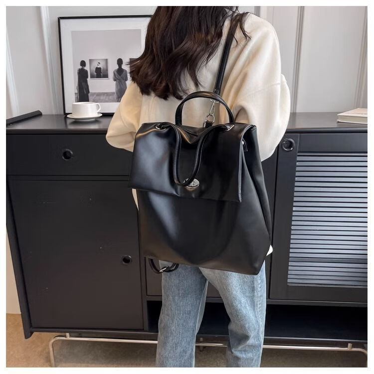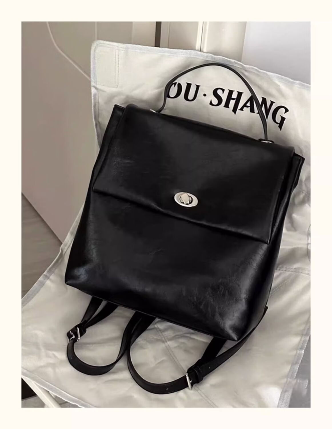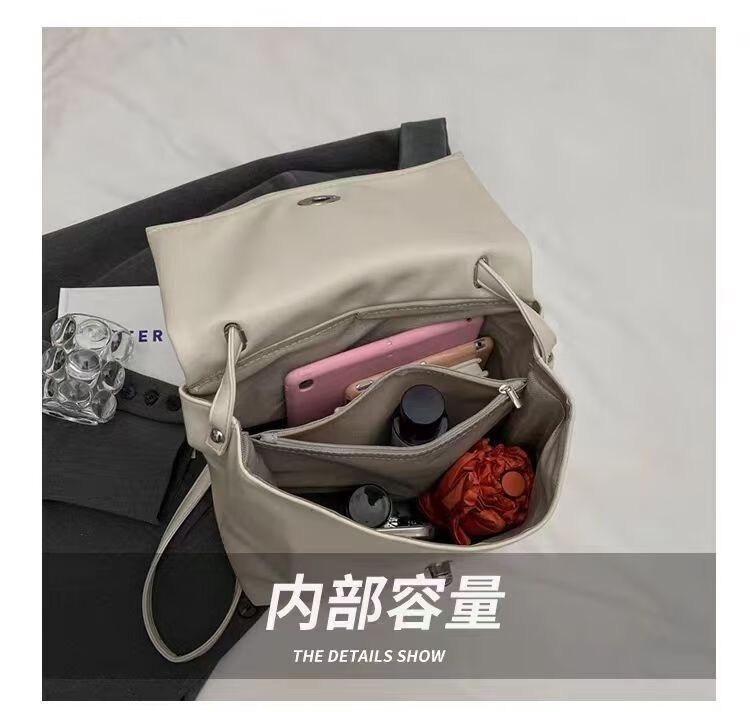 Korean niche silver waxed leather backpack for women, versatile large capacity student commuter school bag, travel backpack, white