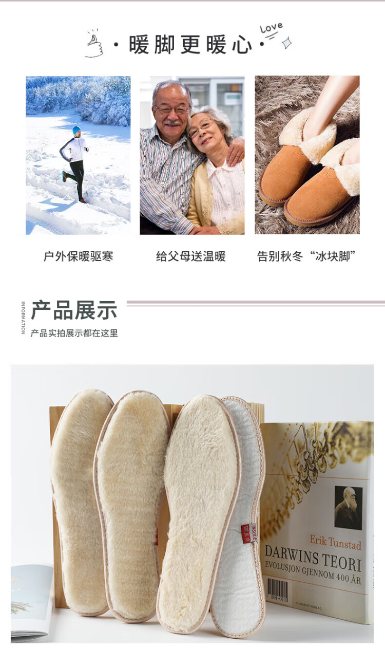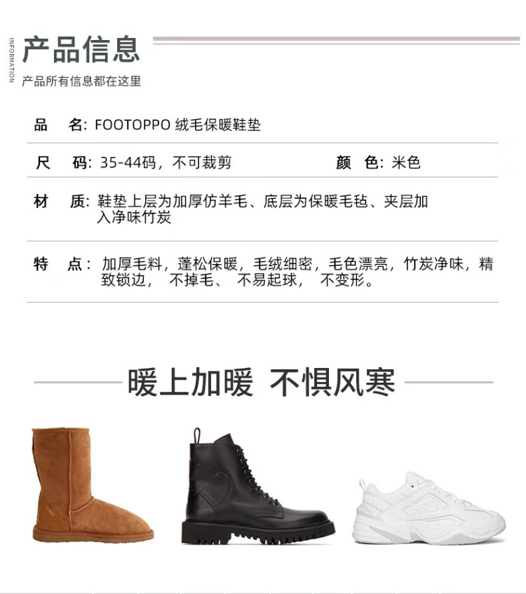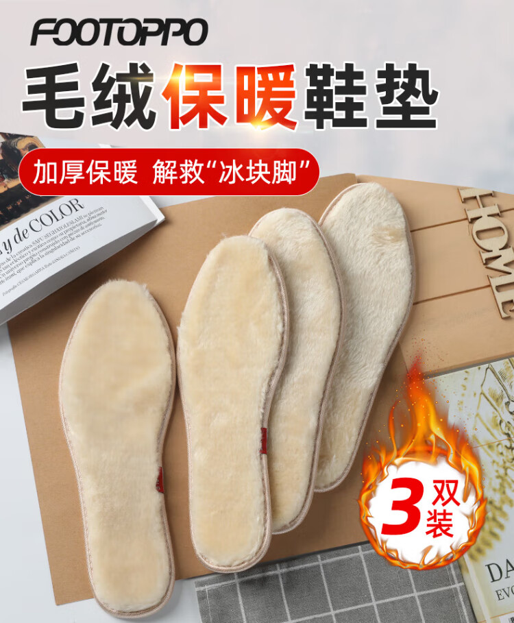 FOOTOPPO warm insole for women in winter wool plus plush soft plush super soft sweat-absorbent winter wool insole for men in winter