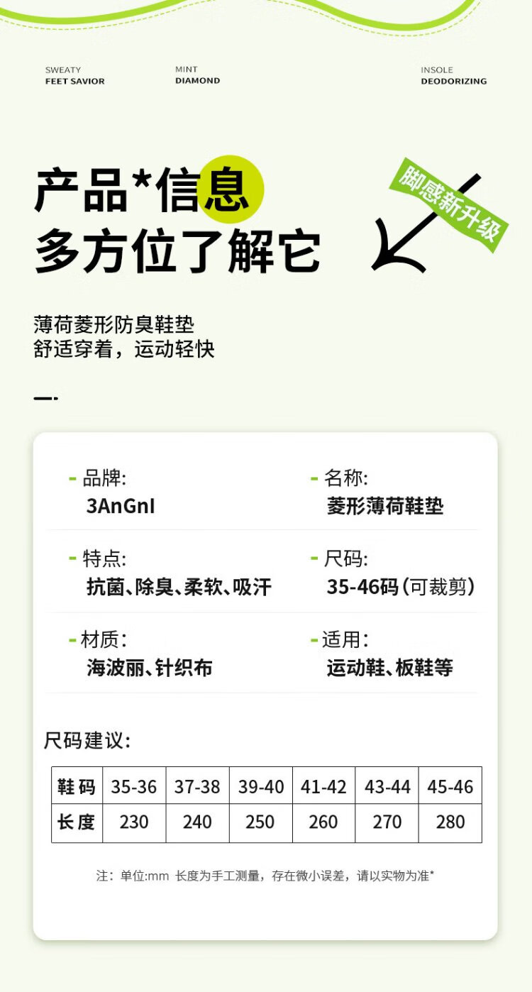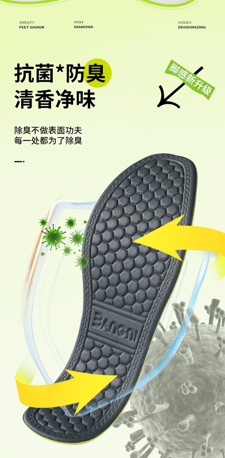 3AnGnI antibacterial and deodorant insoles for men, deodorant and lightweight sports leather shoe insoles for women, breathable, sweat-absorbent and odor-free, 5 pairs, size 41-42